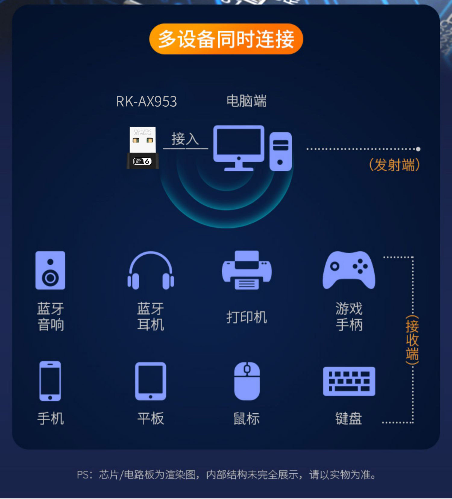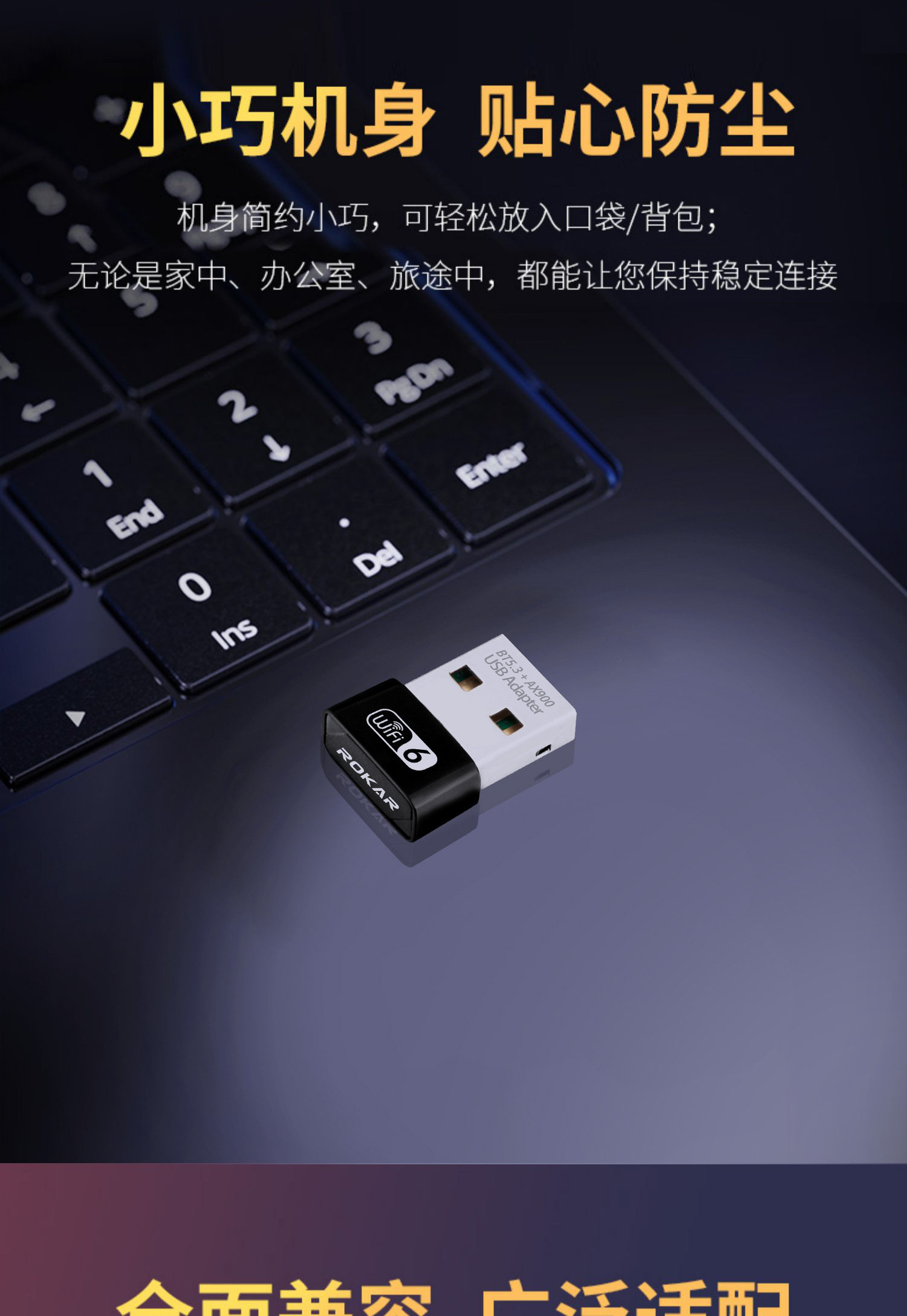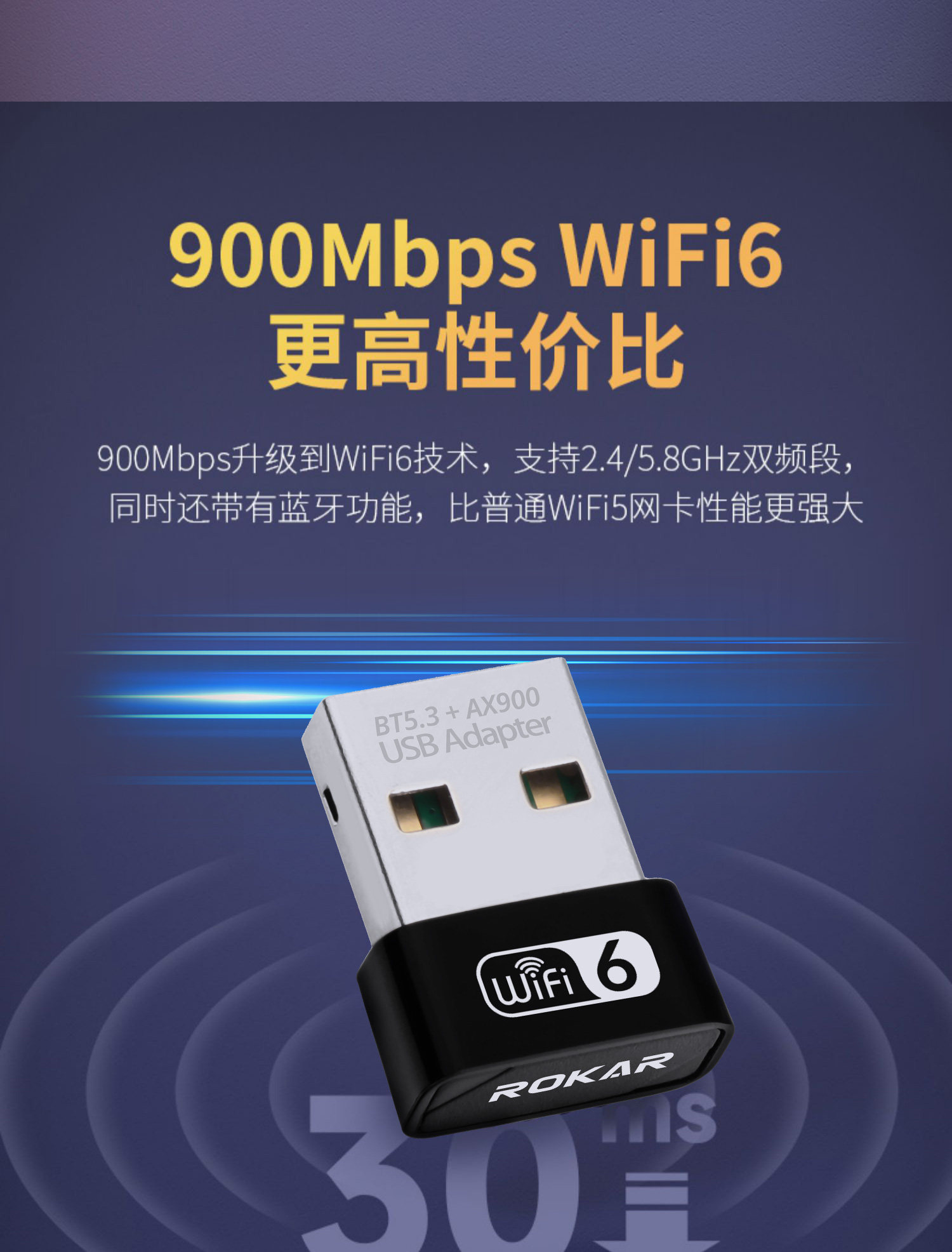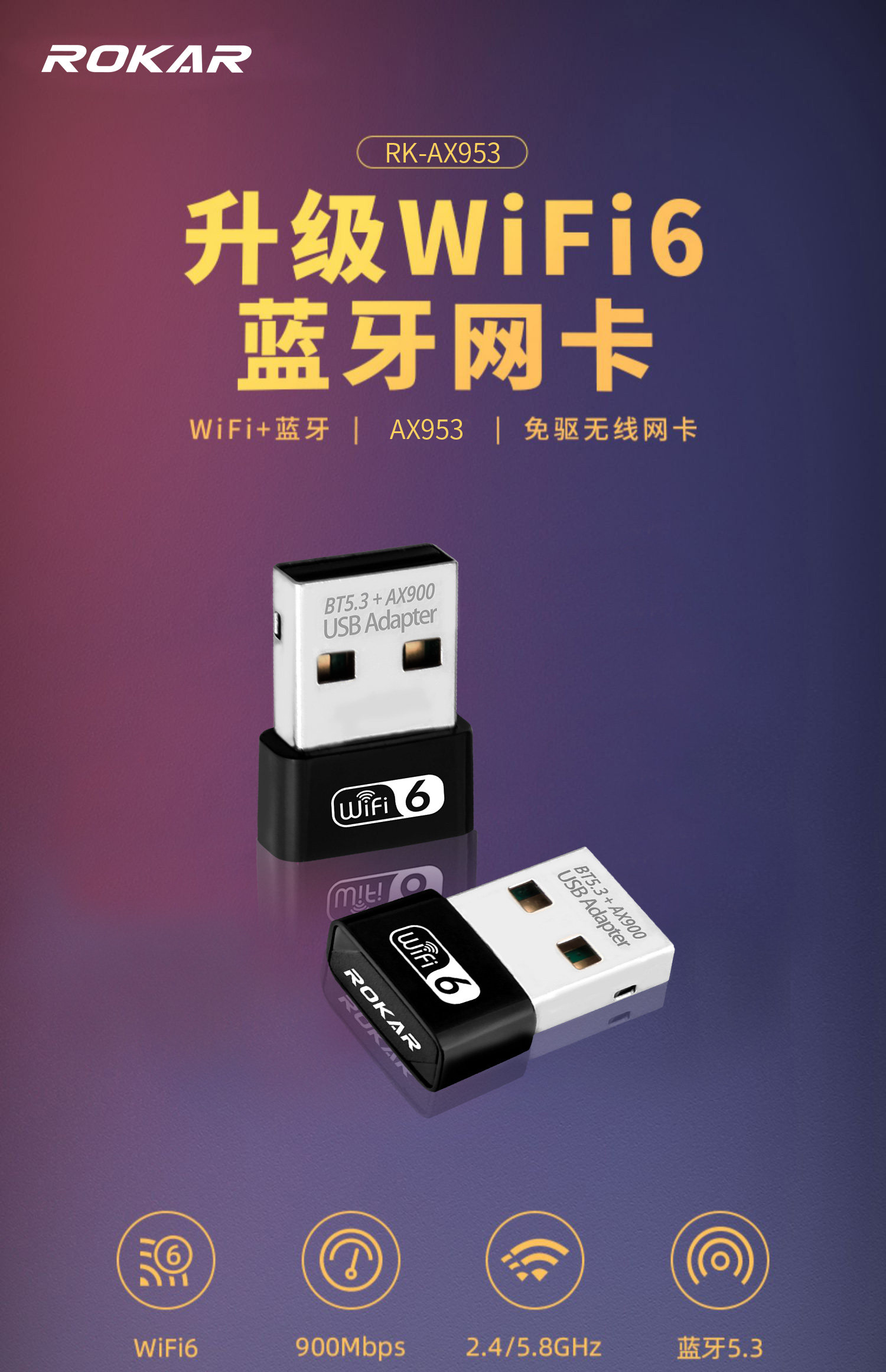 Rokar Wireless Network Card Wifi6 Bluetooth Wifi 2-in-1 Desktop Driver-Free Bluetooth 5.3 Desktop Computer External USB Receiver 5g Dual-Band Ax900 Laptop Adapter Module