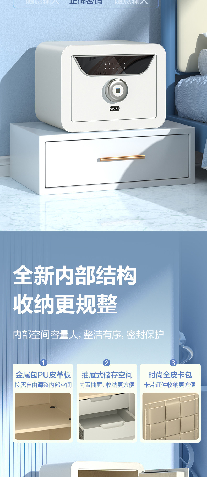 Deli Home Safe Fingerprint Password Safe, Suitable for Home Use, Can Be Placed in a Cabinet or Wall, with Thickened Locking Bolt, Storage-Style Bedside Safe, Height 30/45/60cm