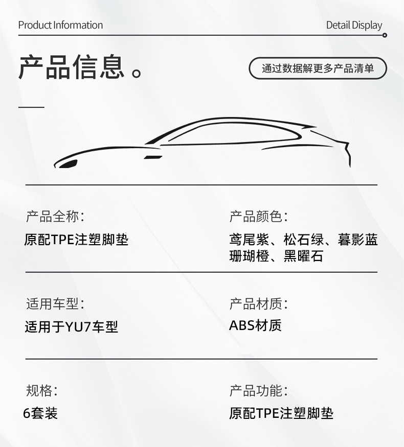 | Model | Suitable for Su7/Yu7 Waterproof Injection Molded Foot Pads |