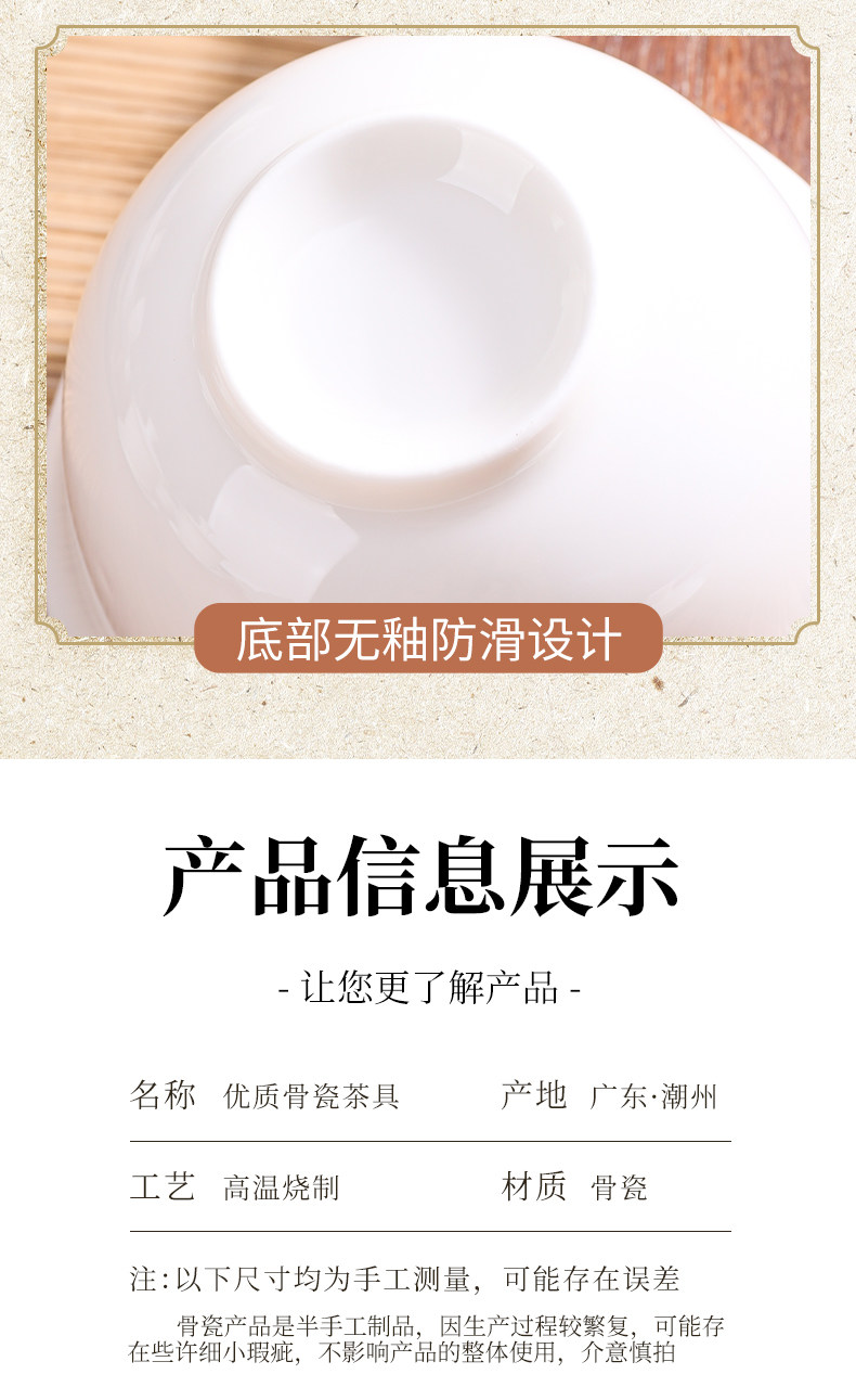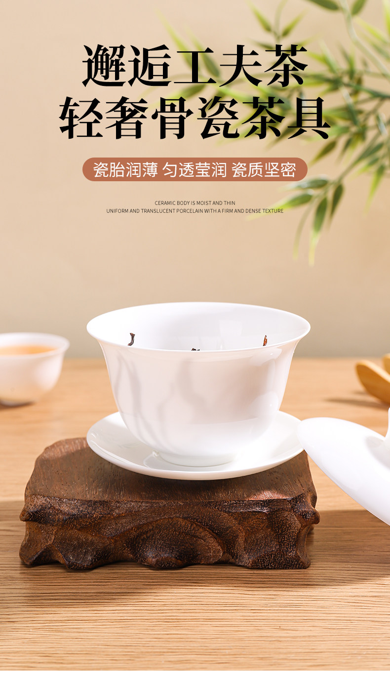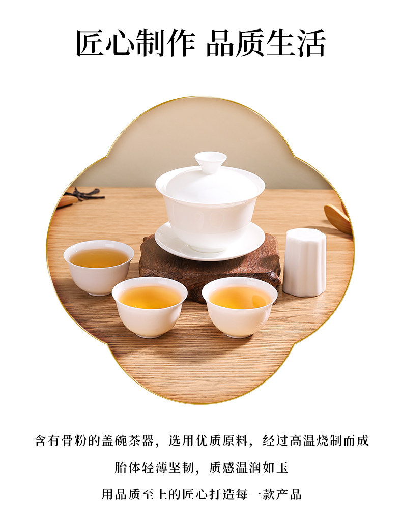 Chaozhou High-End Bone China Kung Fu Tea Set, Thin-Walled Gaiwan Tea Cup, Complete Set of White Porcelain Three-Piece Tea Brewing Small Tea Cups