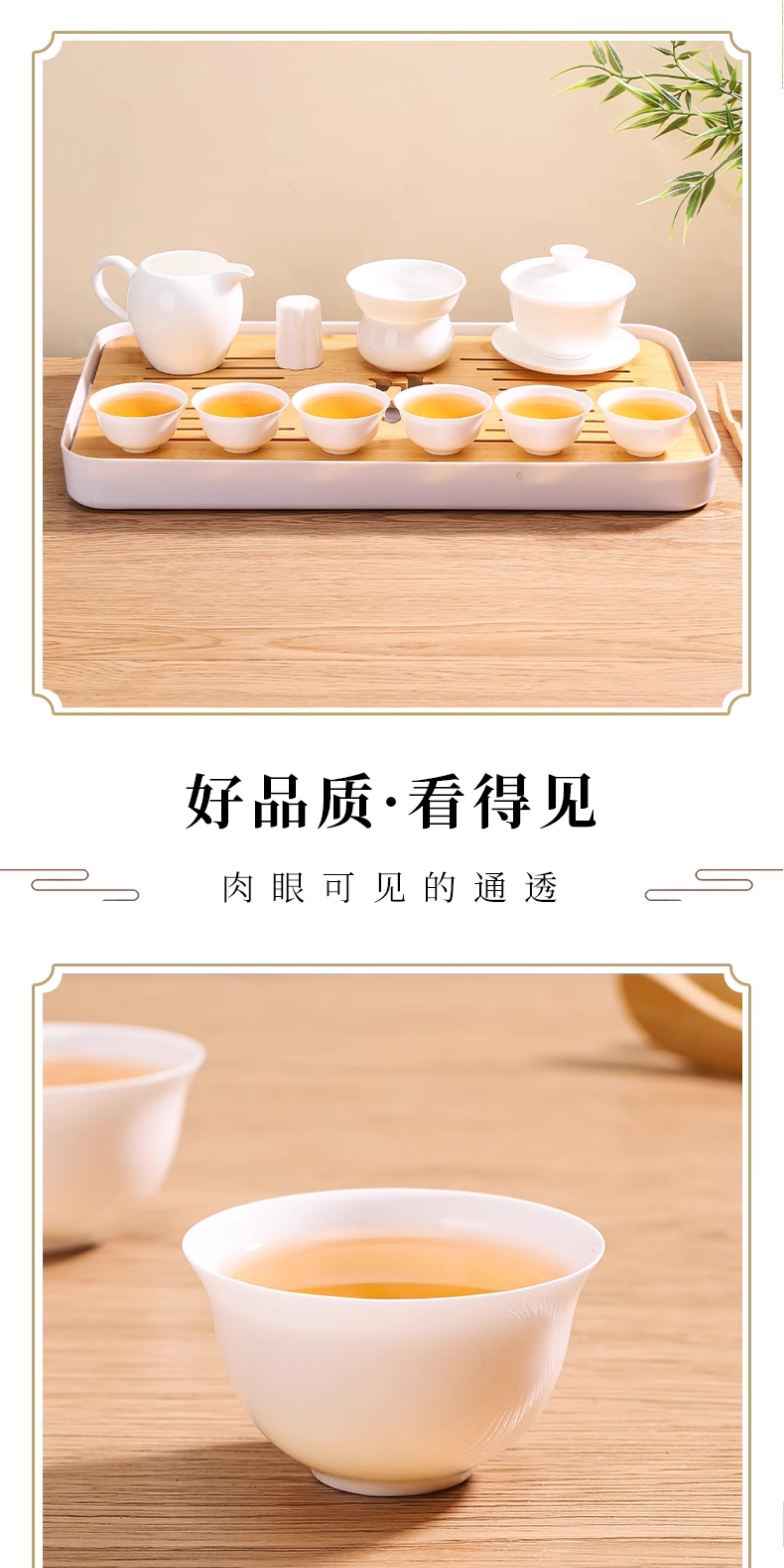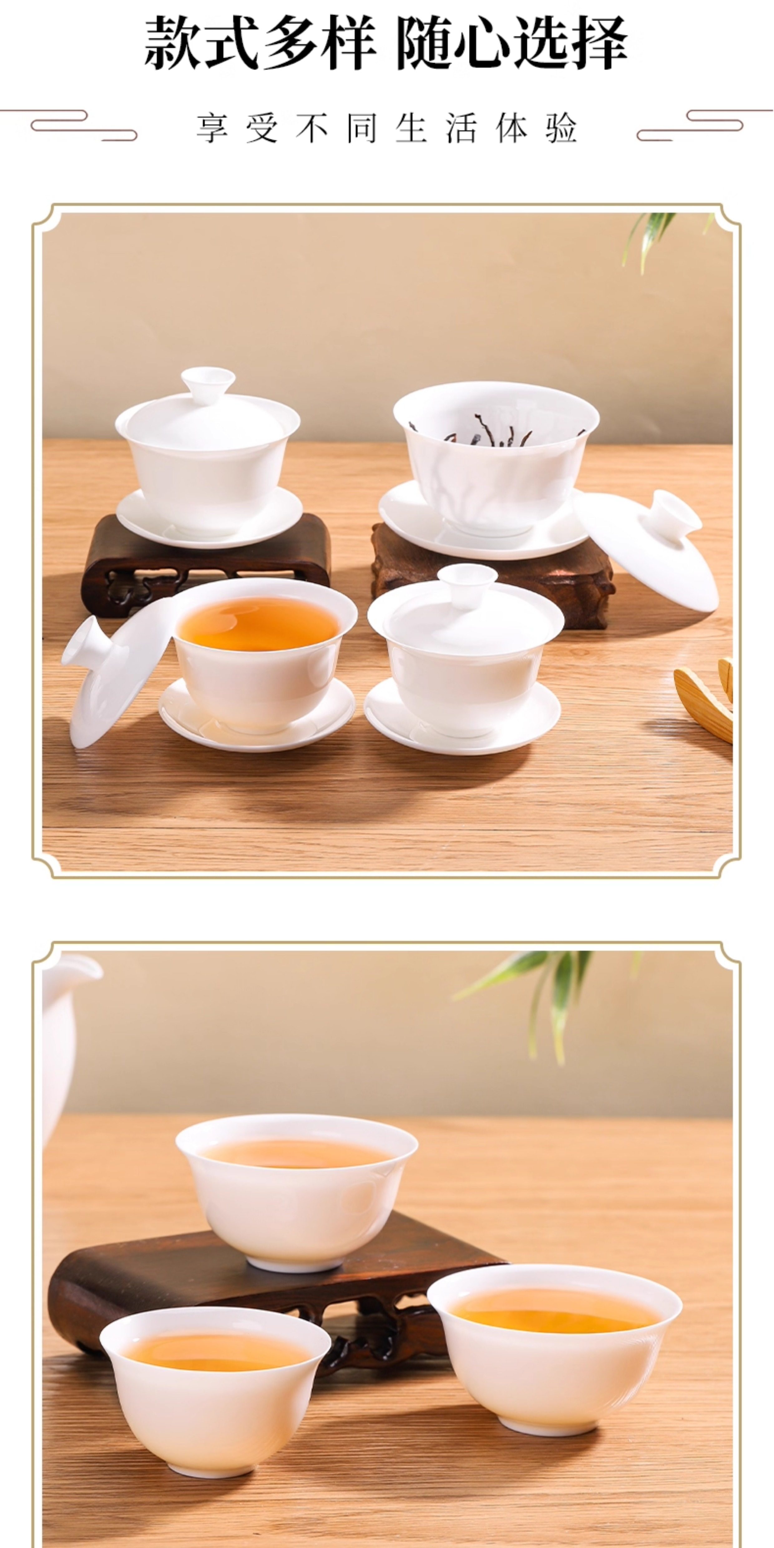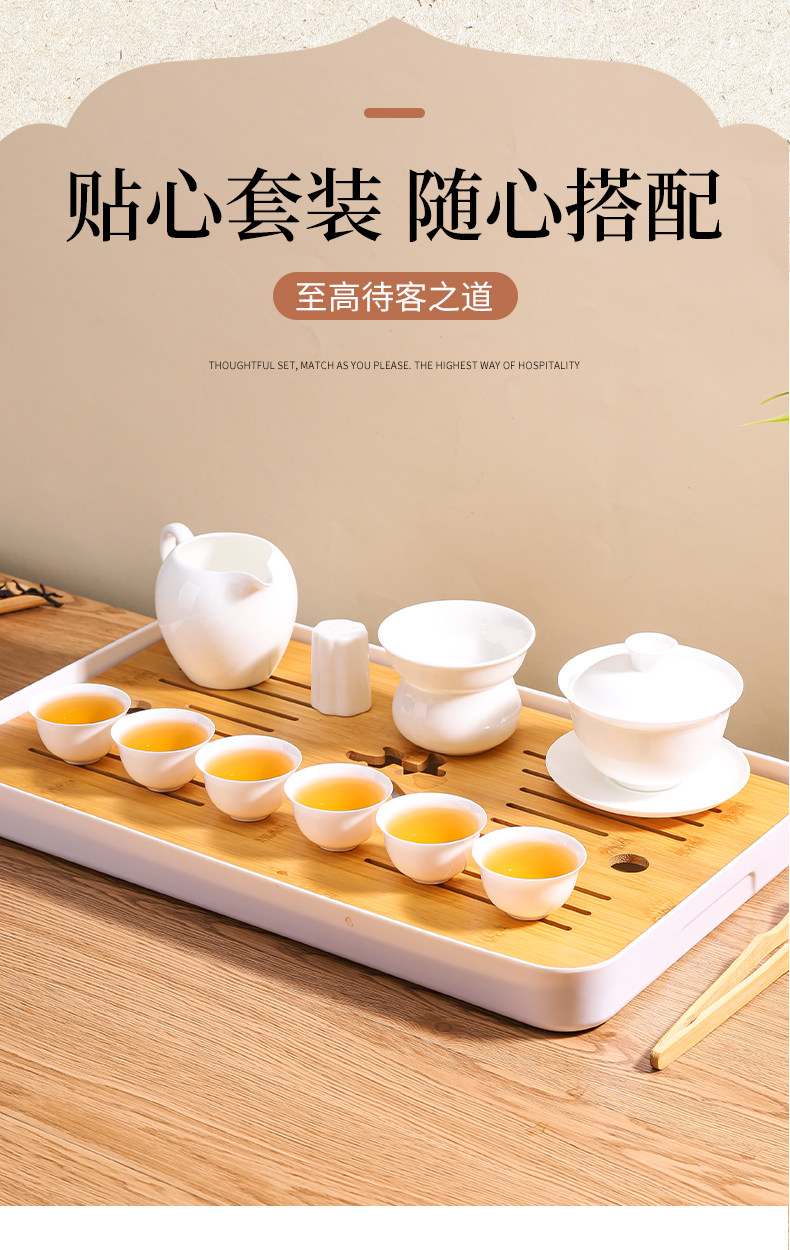 Chaozhou High-End Bone China Kung Fu Tea Set, Thin-Walled Gaiwan Tea Cup, Complete Set of White Porcelain Three-Piece Tea Brewing Small Tea Cups