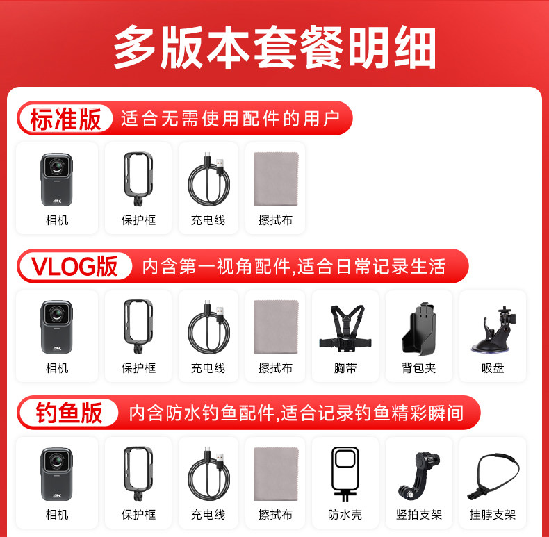 | Color Classification | Standard Version,Vlog Version,Travel Photography Version,Fishing Version,Bicycle Version,Cycling Version,All-Round Version |