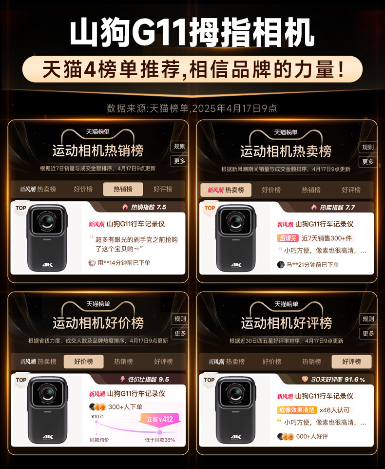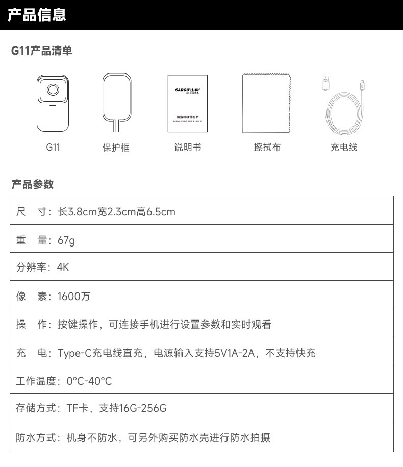 Mountain Dog G11 Thumb Action Camera Motorcycle Driving Recorder 4K Hd Cycling Vlog Non-360 Panoramic