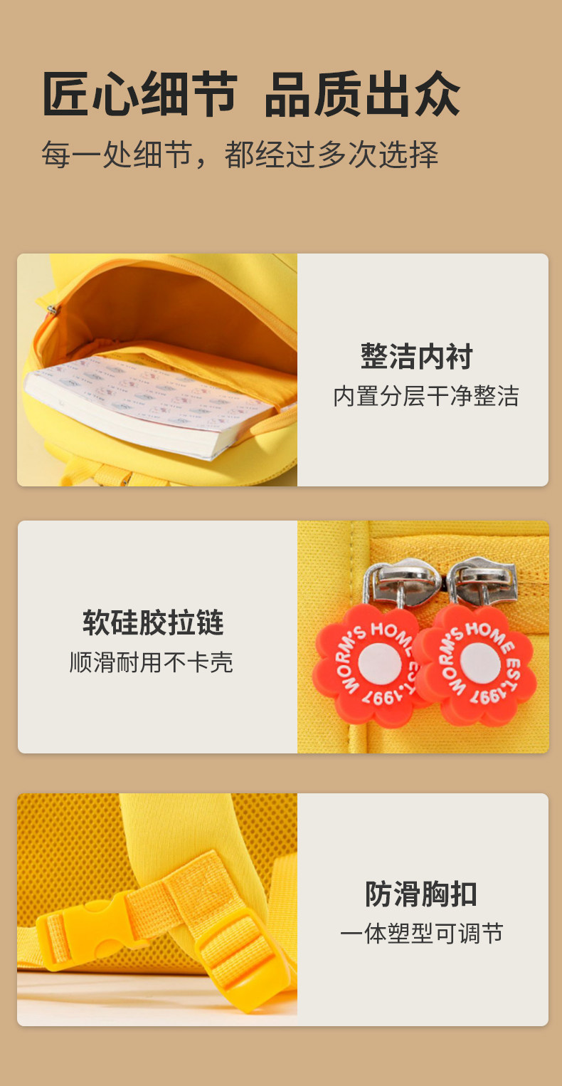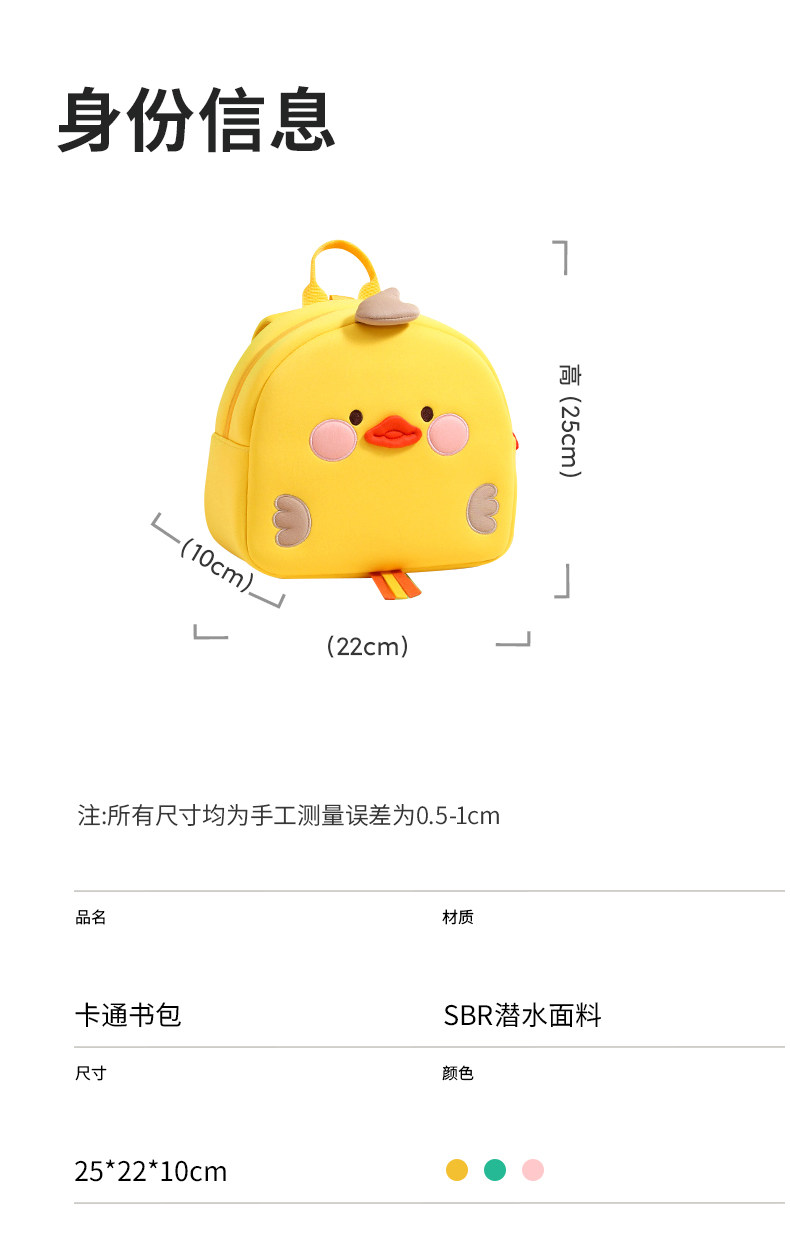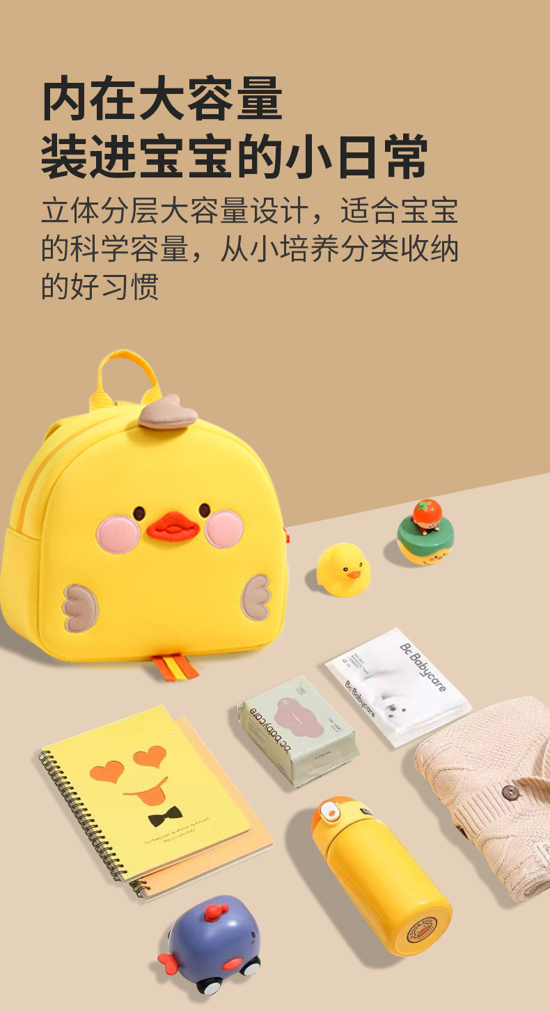 Children's Kindergarten School Bag, Boy's Backpack, Baby Girl's Cute Cartoon Little Yellow Duck Backpack for Going Out and Entering School