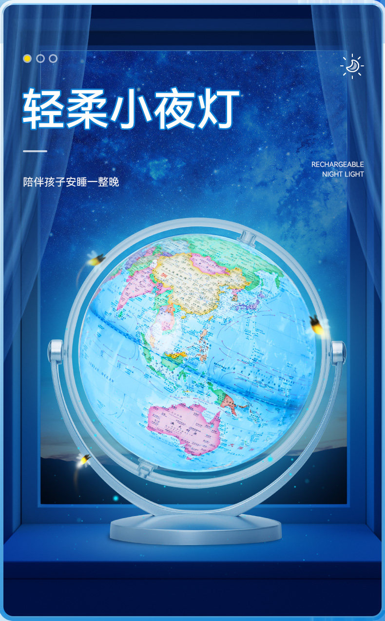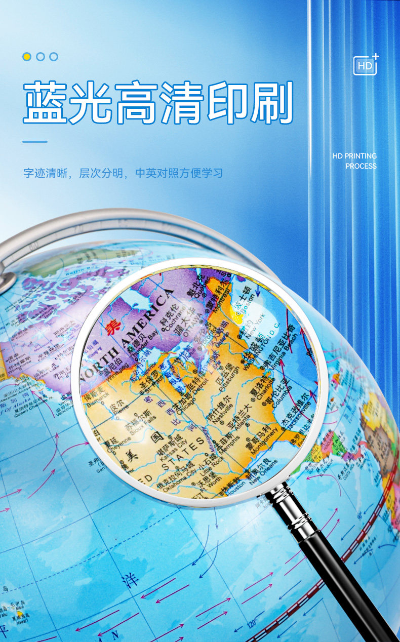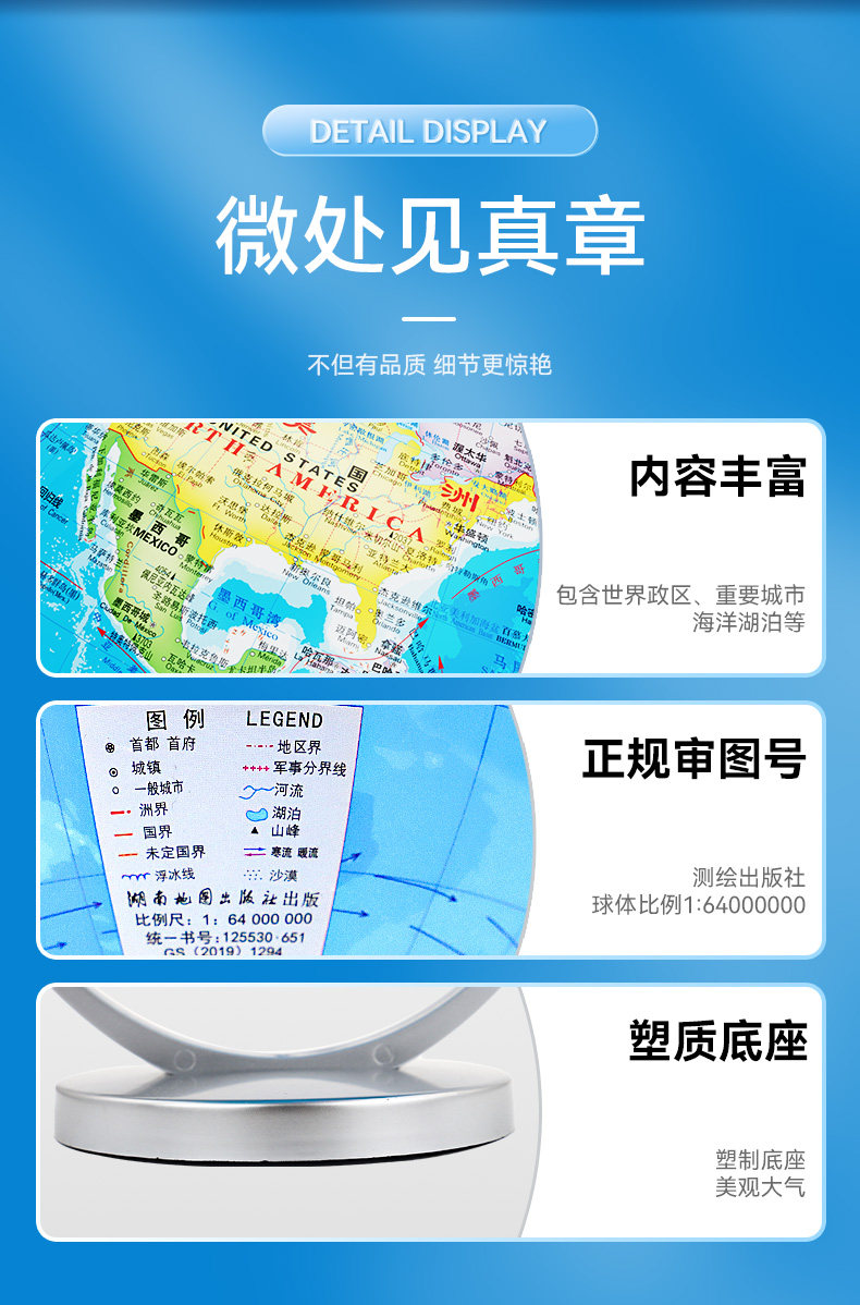 Geography Teaching Globe 3D Stereo Floating Large Extra-Large Political Region Universal Plastic Base World Map Model Genuine Student Use for Middle School and High School Students Special for Boys Birthday Gift Desk Lamp