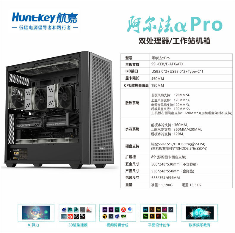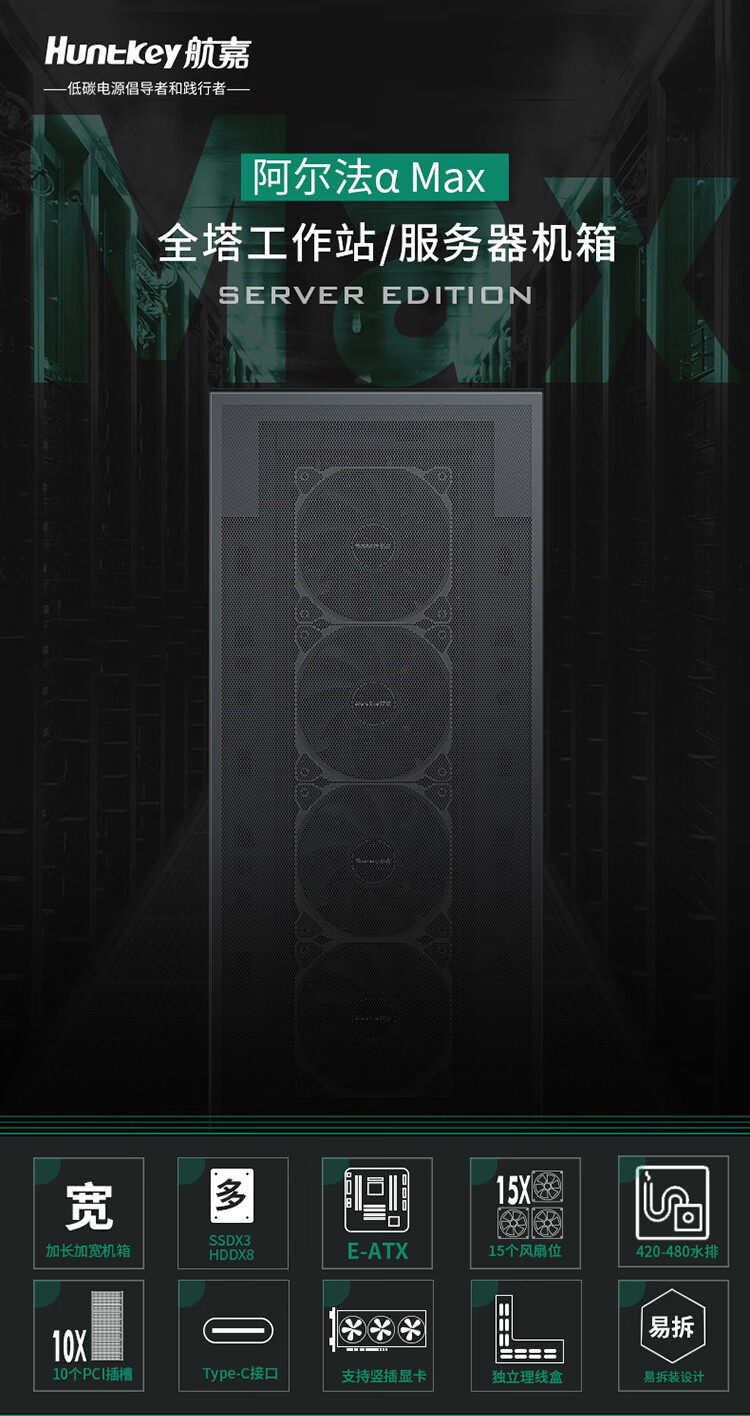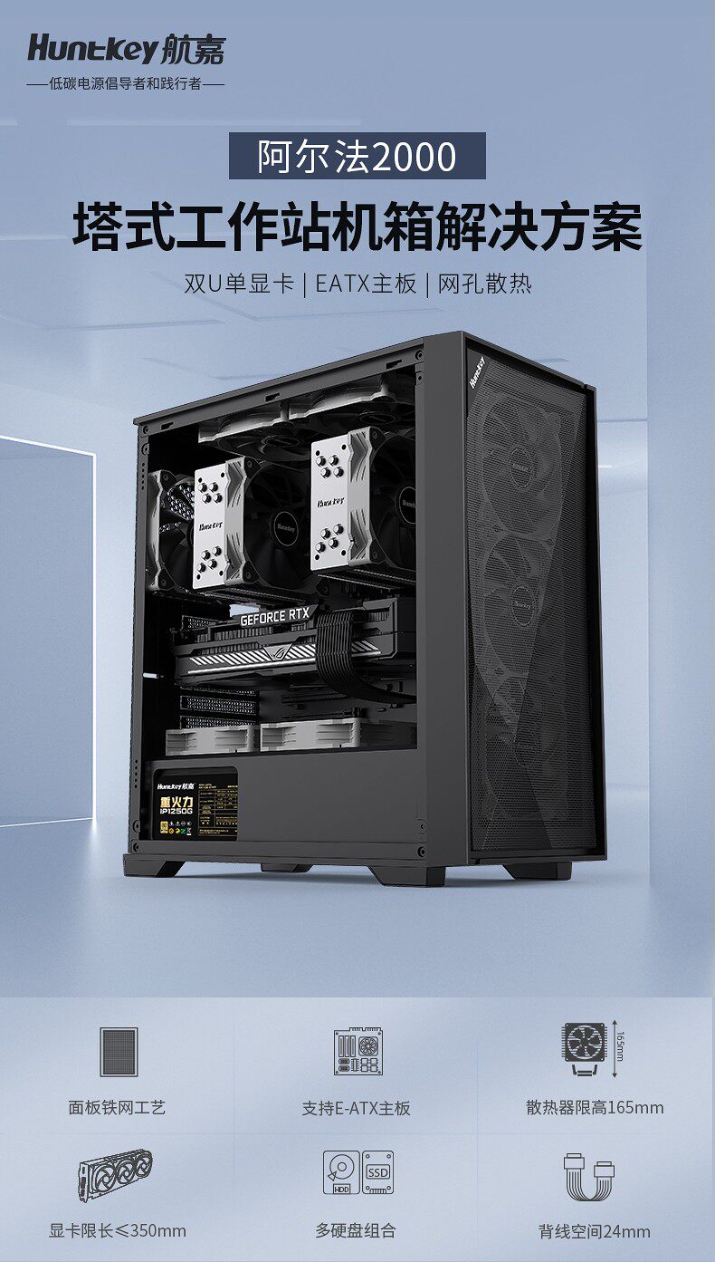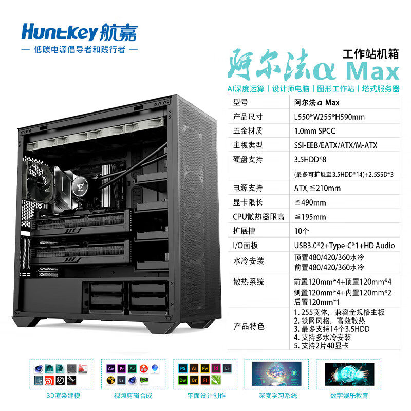 Huntkey Alpha Max Full Tower 480 Water-Cooled Pro Server Workstation Dual-Channel E-Atx Multi-Disk Bay