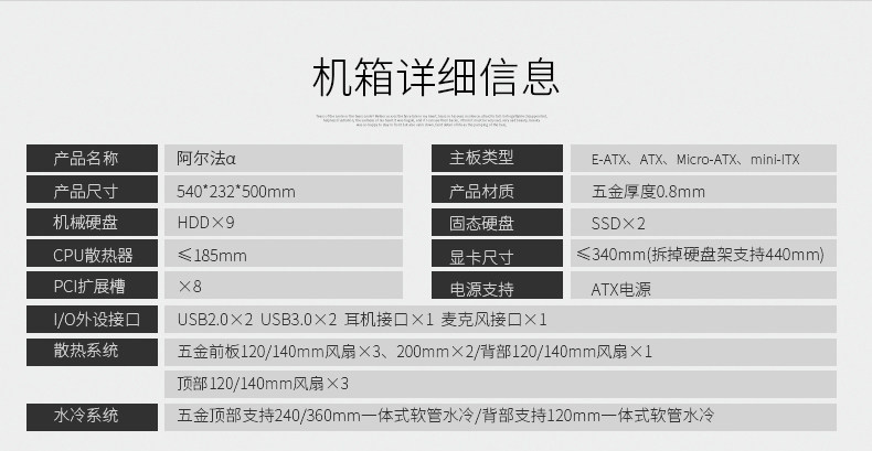 | Color Classification | [Same Style as the Main Picture] Alpha Max [Compatible with Ssi-Eeb/E-Atx Oversized Version of Various Types of Double Circuit Boards/480 Water Cooling],Alpha Pro [Compatible with Ssi-Eeb/E-Atx Oversized Version of Various Types of Double Circuit Boards/420 Water Cooling],Alpha 2000 [Supports E-Atx Oversized Motherboard/240 Water Cooling] (Does Not Support South China Motherboard X99),【Lightweight Solution】Alpha 2000+ Heavy Firepower Ag1100G + Air-Cooled 7 Heat Pipe X720 Hurricane,[High-Performance Solution] Alpha Pro+ Heavy Fire Ip1300G+ Water-Cooled Gx360R Megalodon Black,[Professional Grade Solution] Alpha Max+ Heavy Fire Ip2052G+ Water-Cooled Gx360R Megalodon Black |