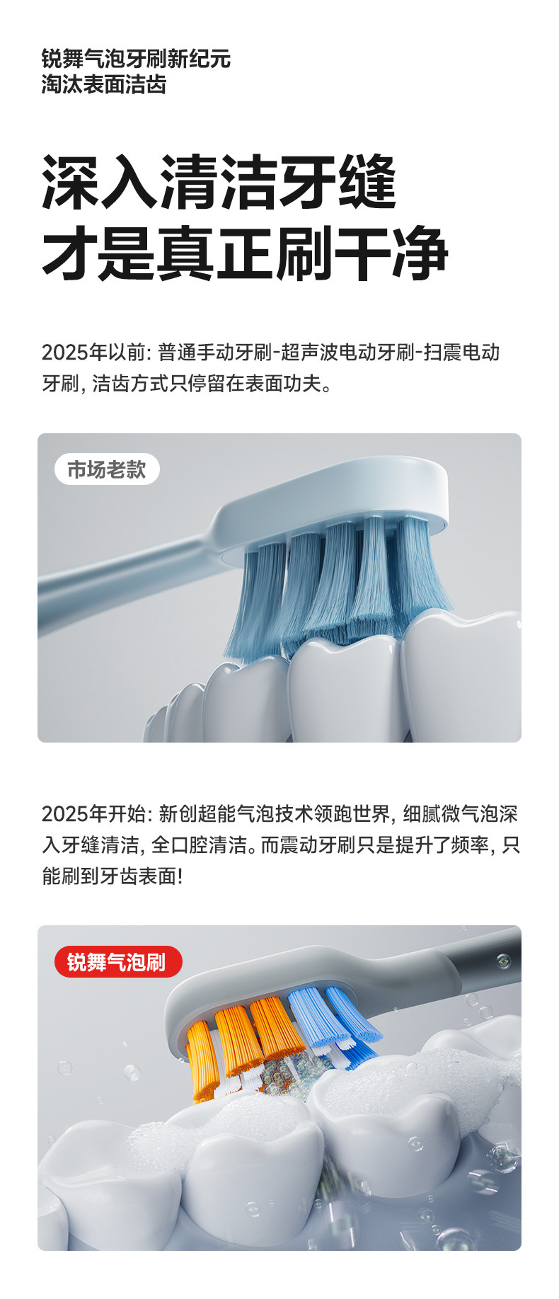 [Orthodontic Special] Ruiwu Bubble Electric Toothbrush for Adults 2025 New Model Soft Bristles Intelligent Sonic Vibration for Men and Women