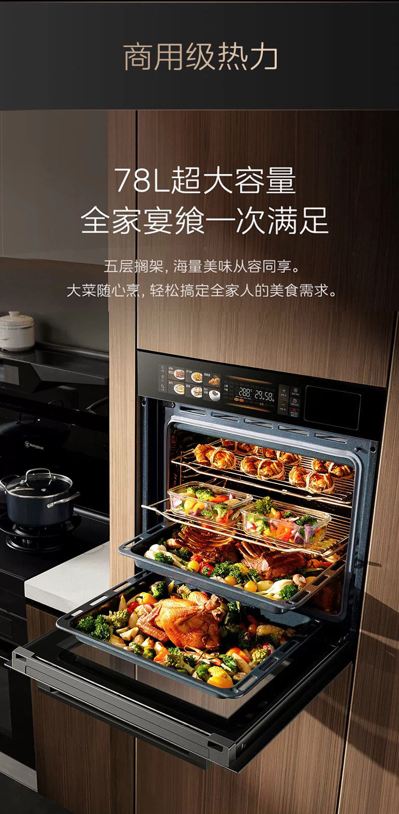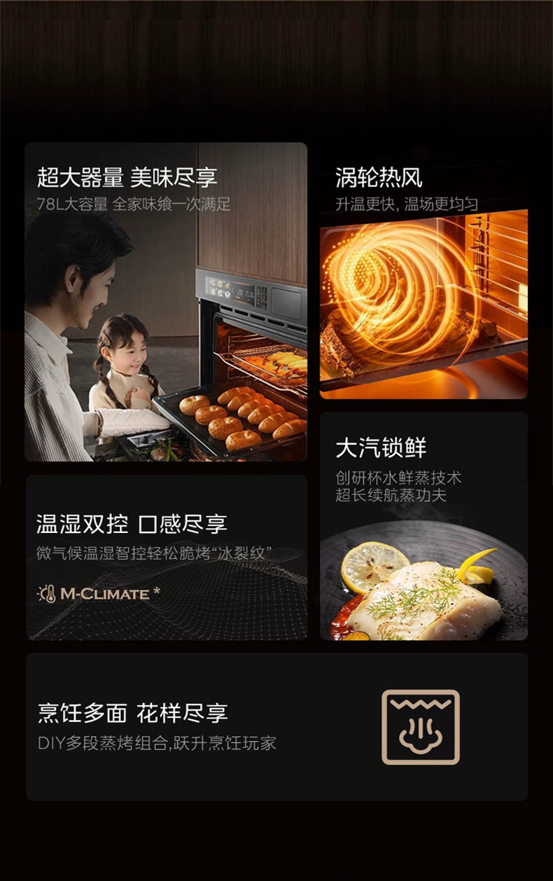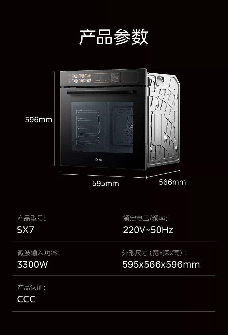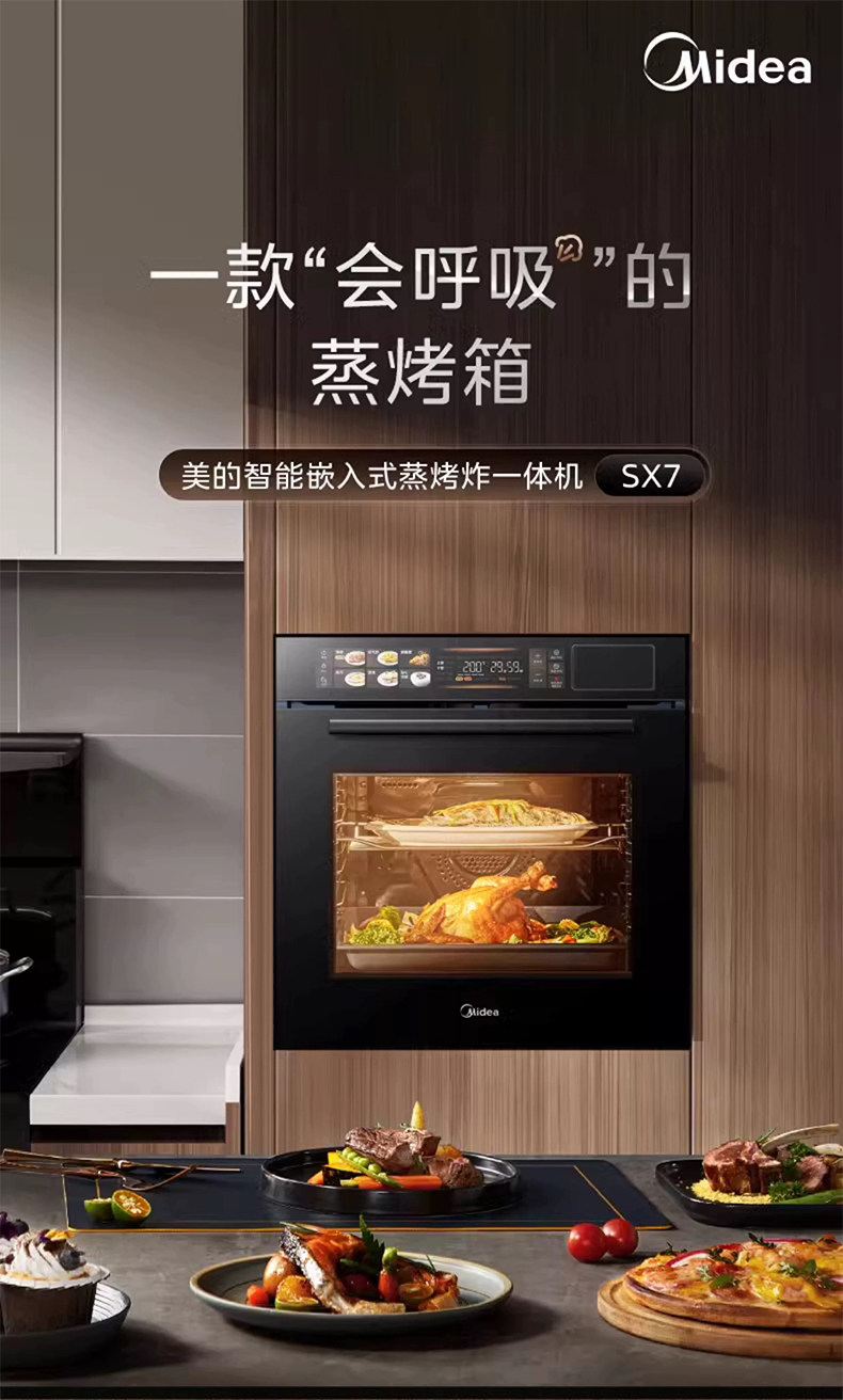 Midea Sx7 Steam and Bake All-In-One Machine, Household Smart 78-Liter Large-Capacity Built-In Electric Steam Oven