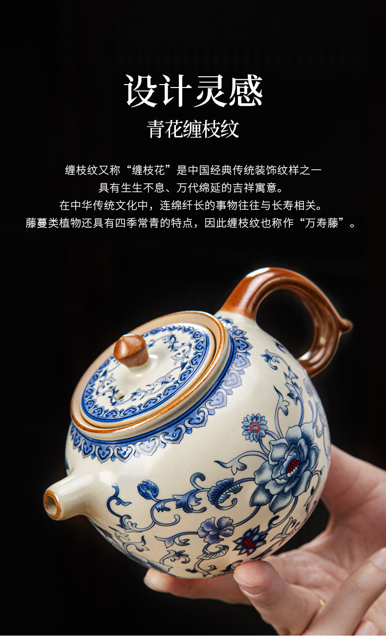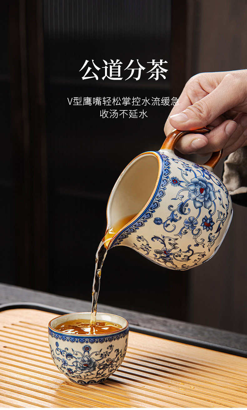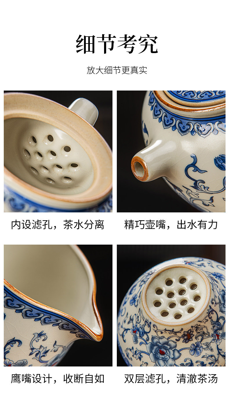 Ru Kiln Blue and White Travel Tea Set, High-End Outdoor Camping Tea Drinking Equipment, Portable Tea Brewing Pot, Kung Fu Tea Cup