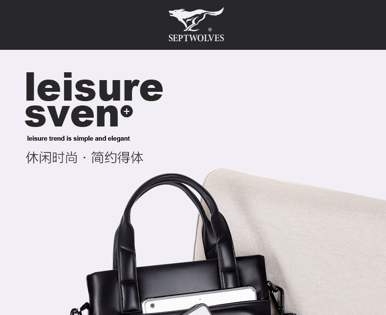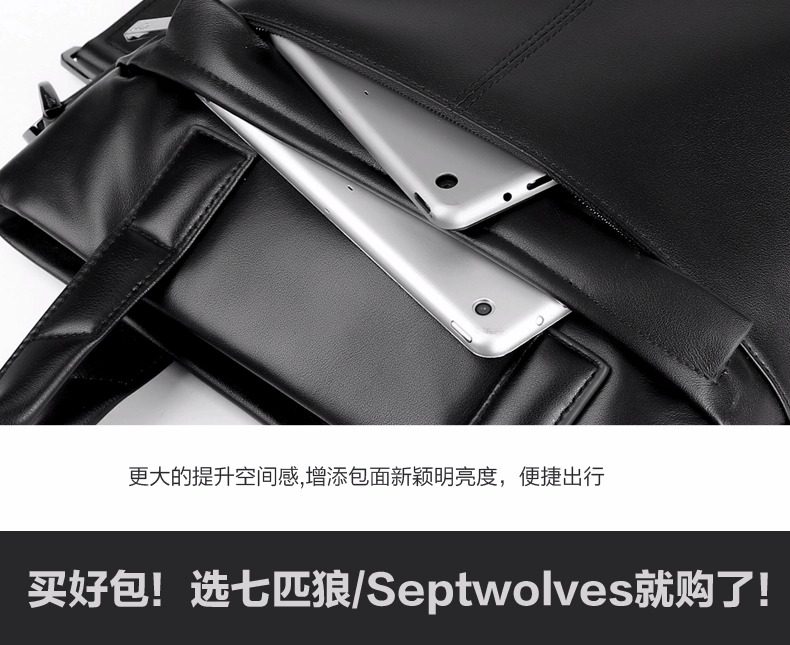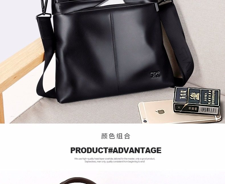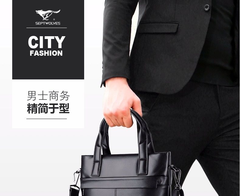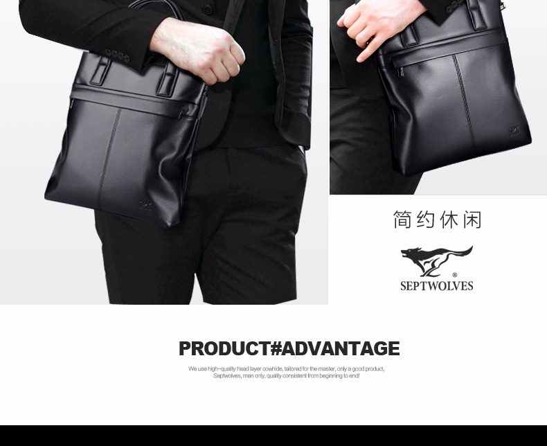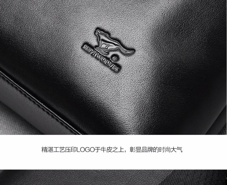 Septwolves Men's Briefcase 2025 New Model Handbag Business Travel Portable First Layer Cowhide Leather Shoulder Crossbody Bag