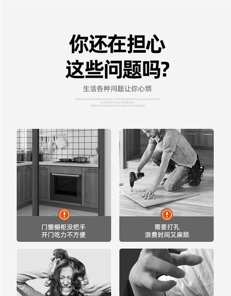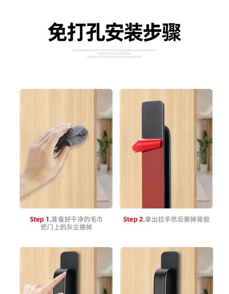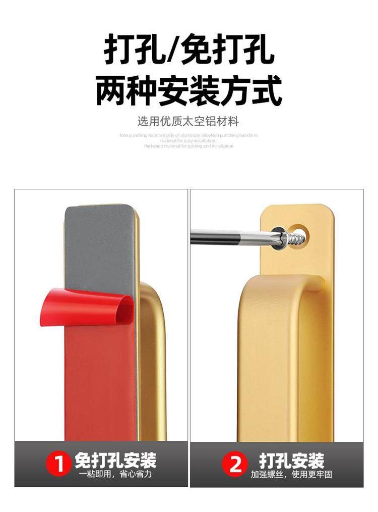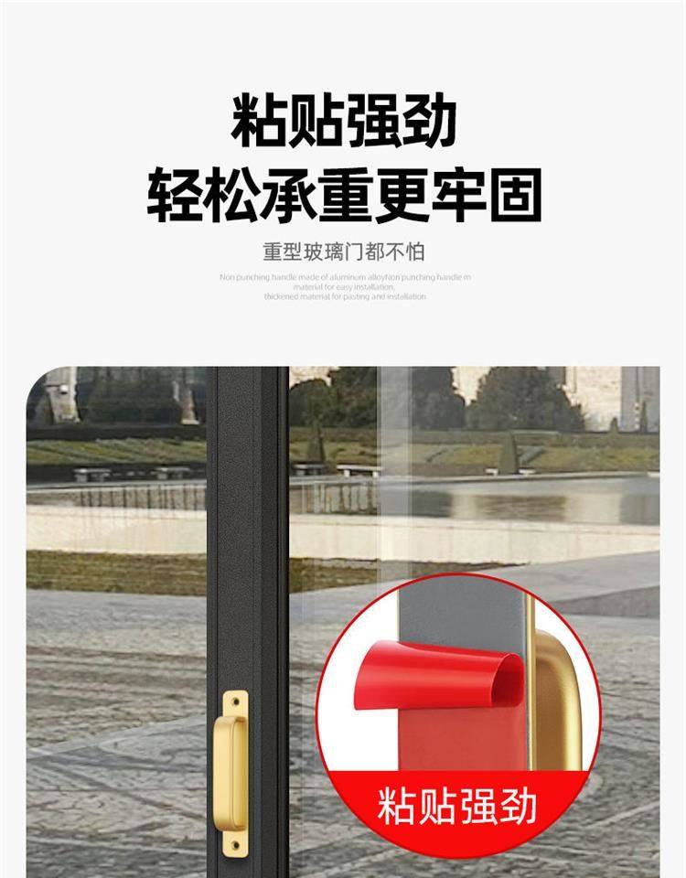 No-Drill Door Handle for Glass Doors, Sliding Doors, Balcony Windows, Cabinet Doors, Adhesive Invisible Door Aluminum Alloy Handle
