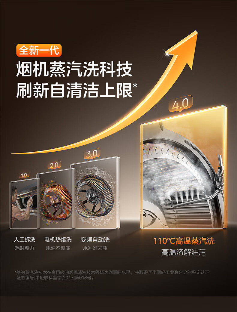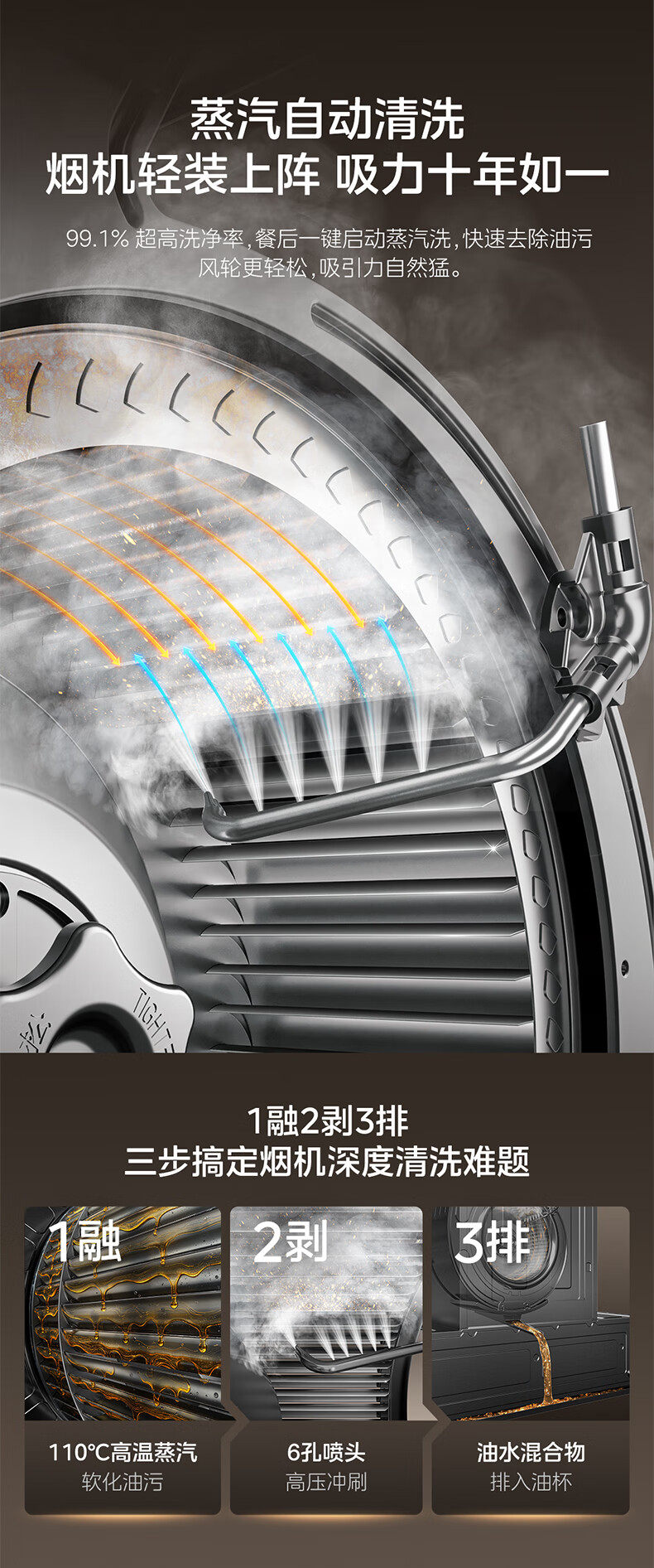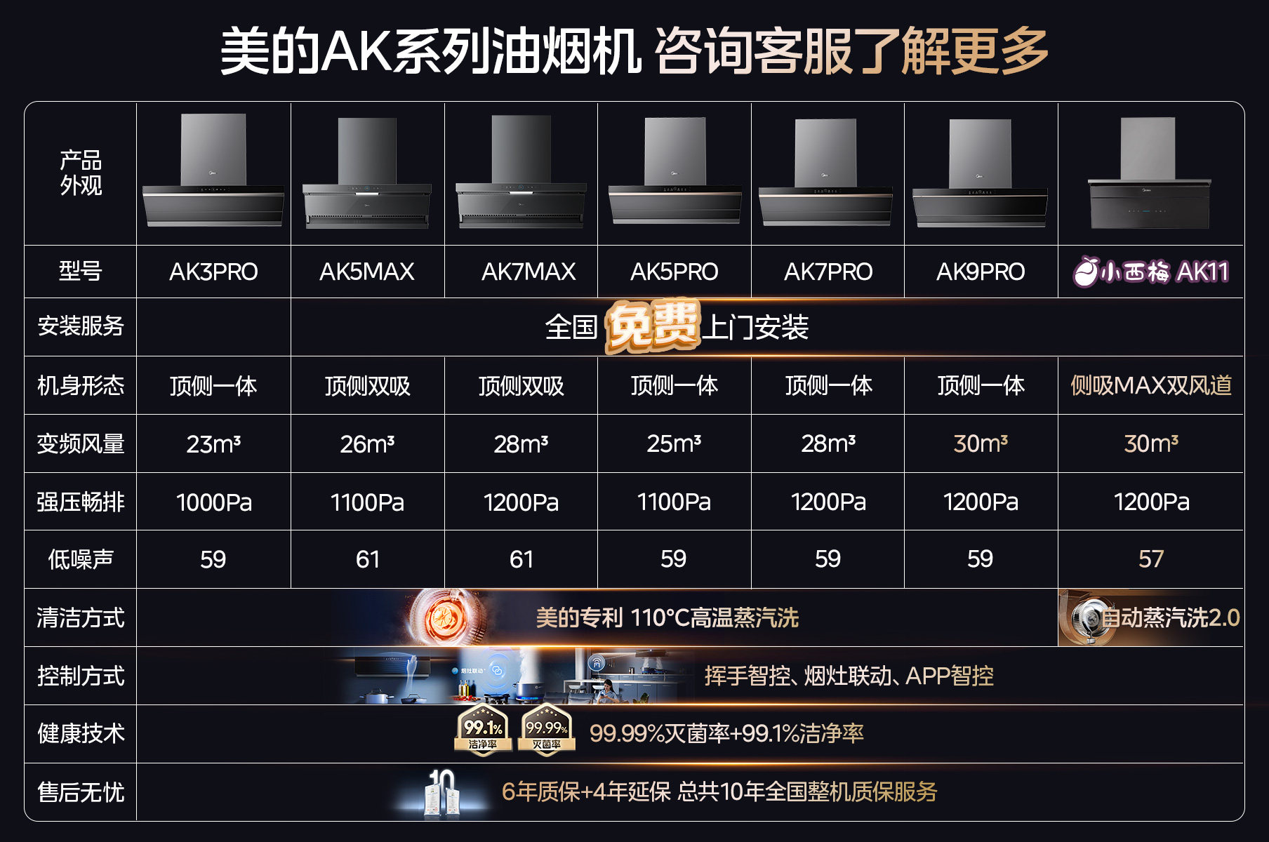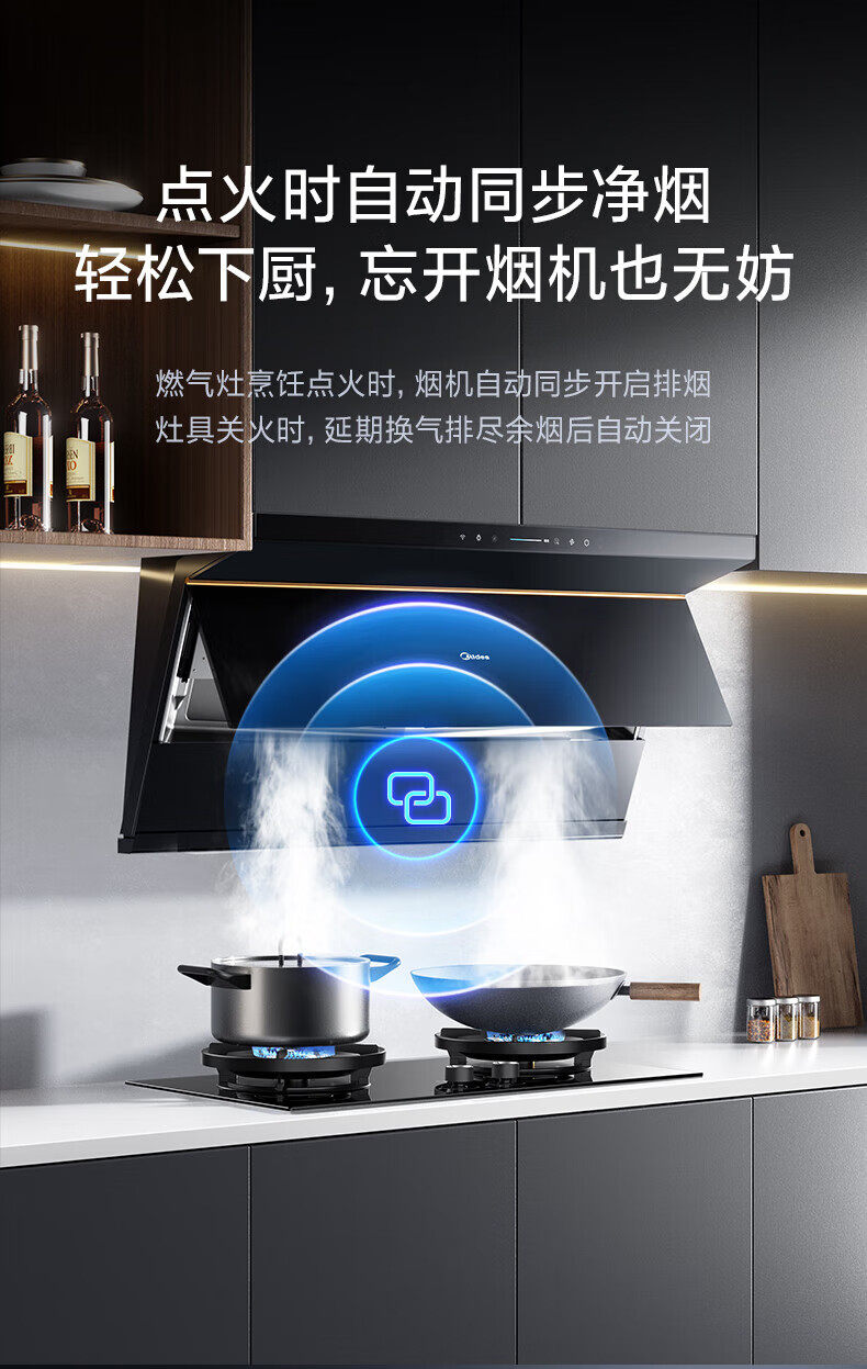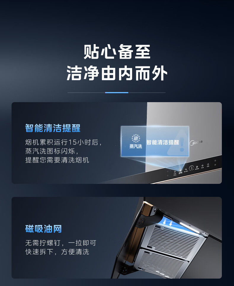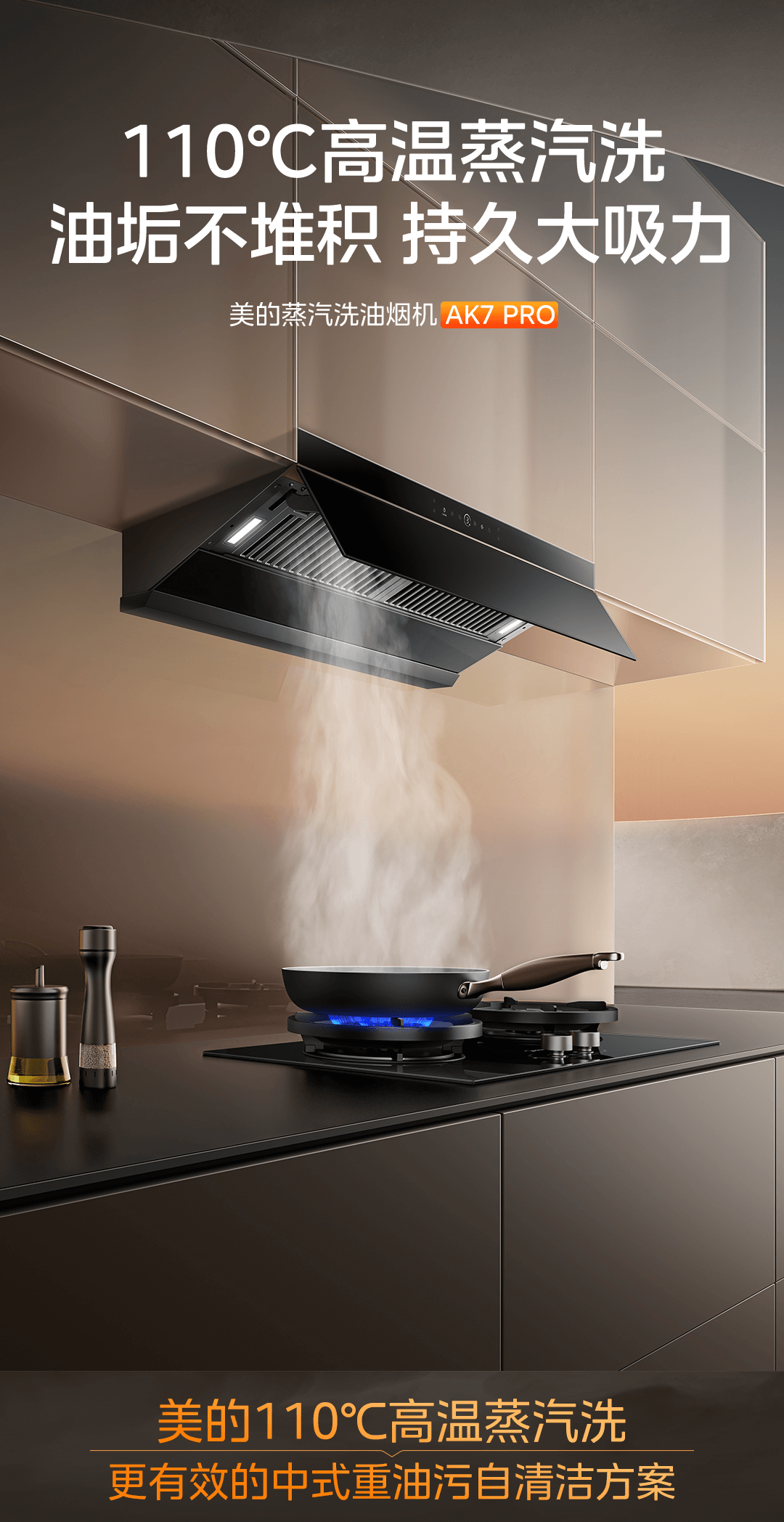Midea Steam Wash Ak7Pro Household High-Suction Kitchen Range Hood Ak9Pro Smoke Stove Set Official