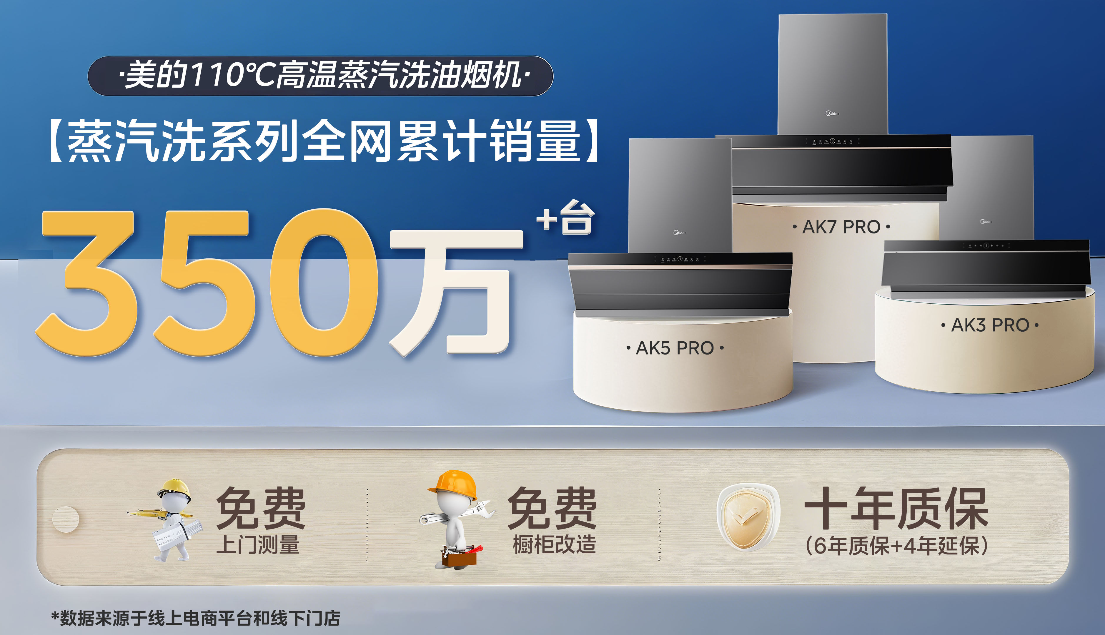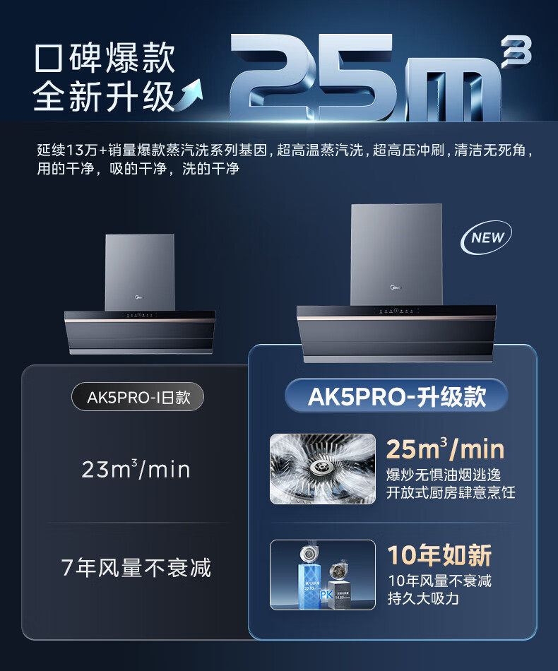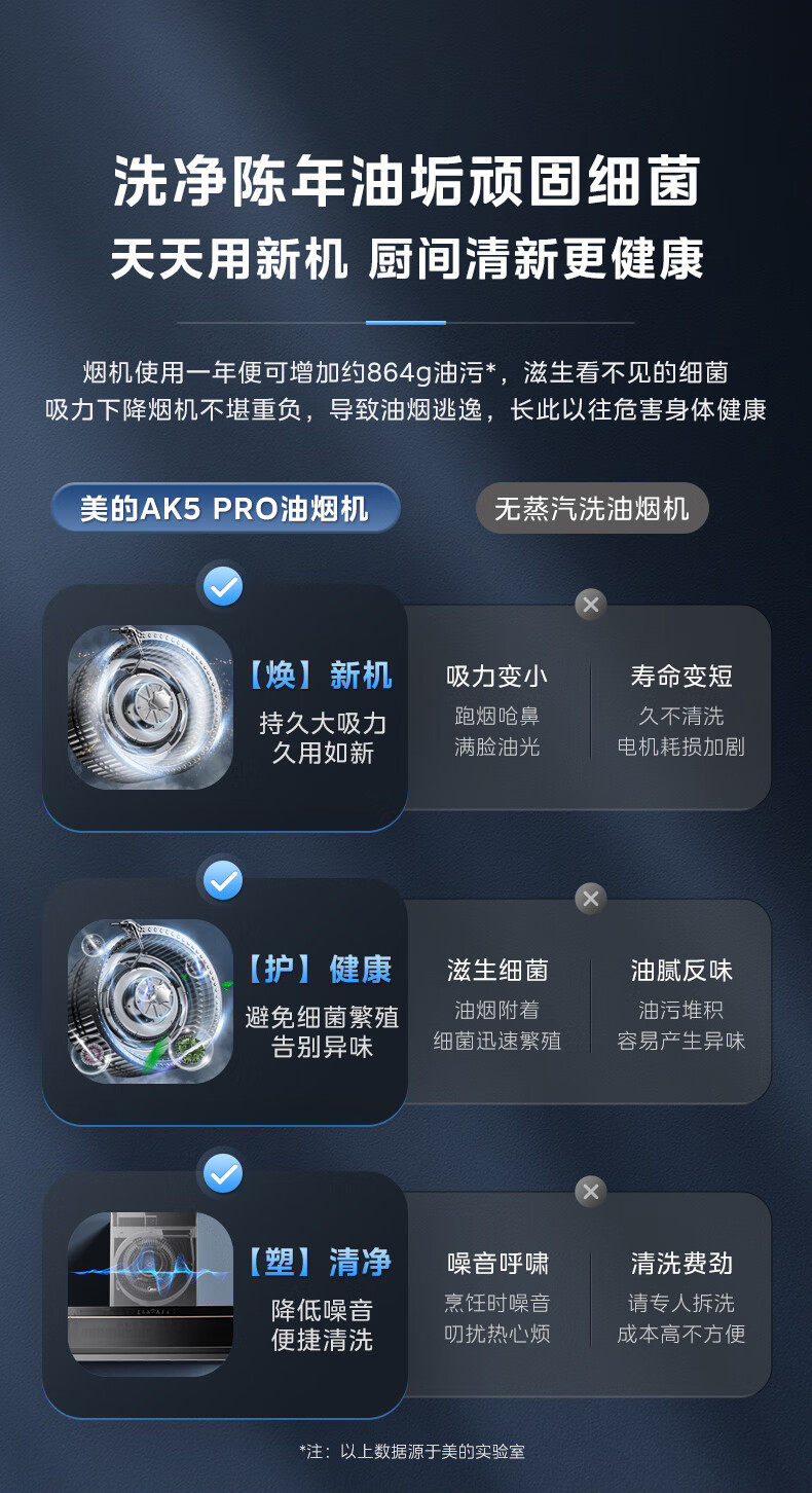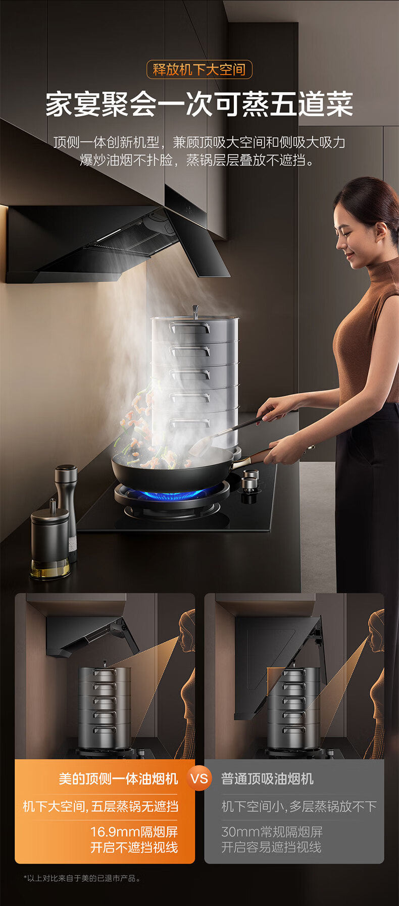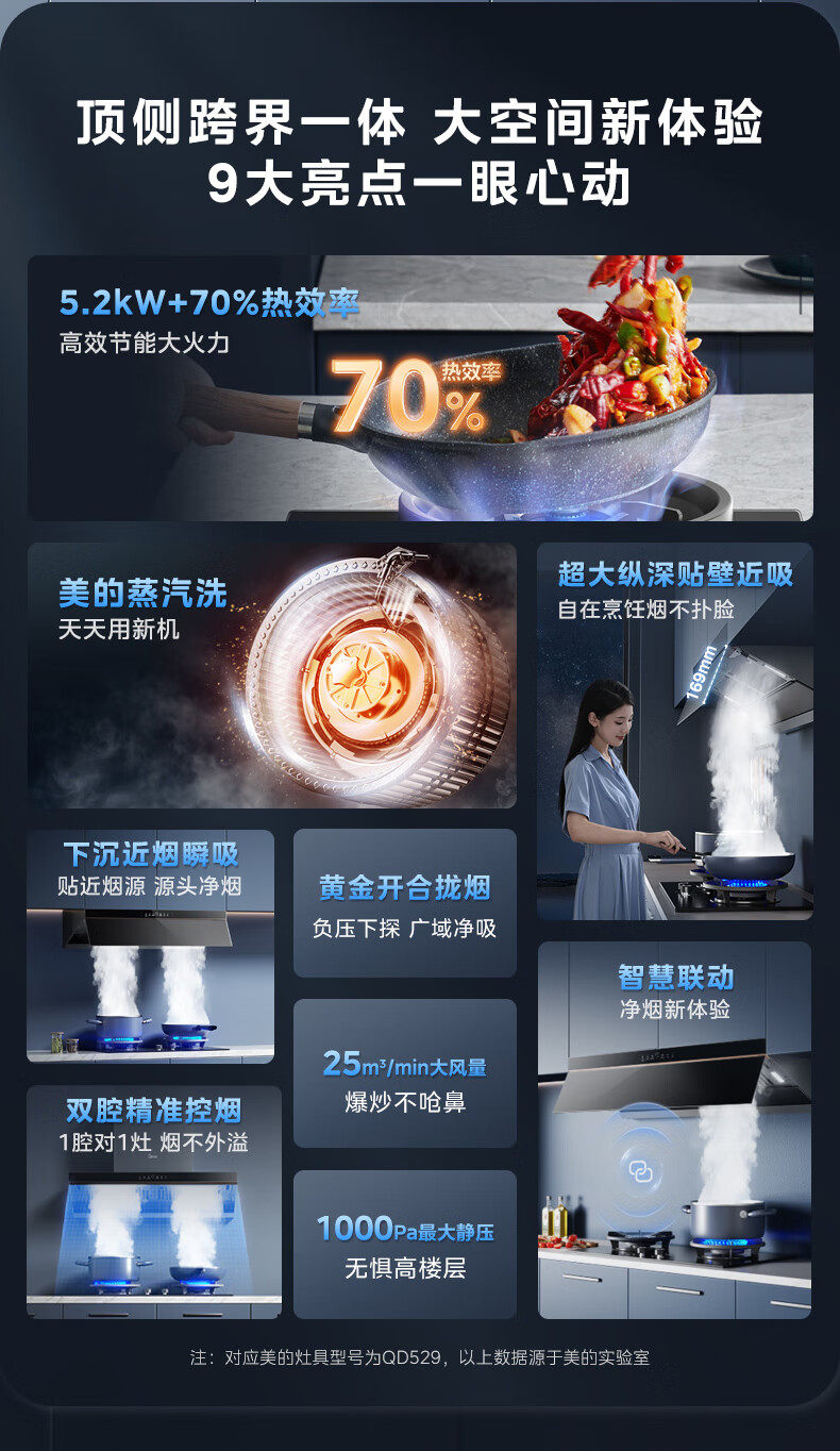 Midea Steam Wash Ak7Pro Household High-Suction Kitchen Range Hood Ak9Pro Smoke Stove Set Official