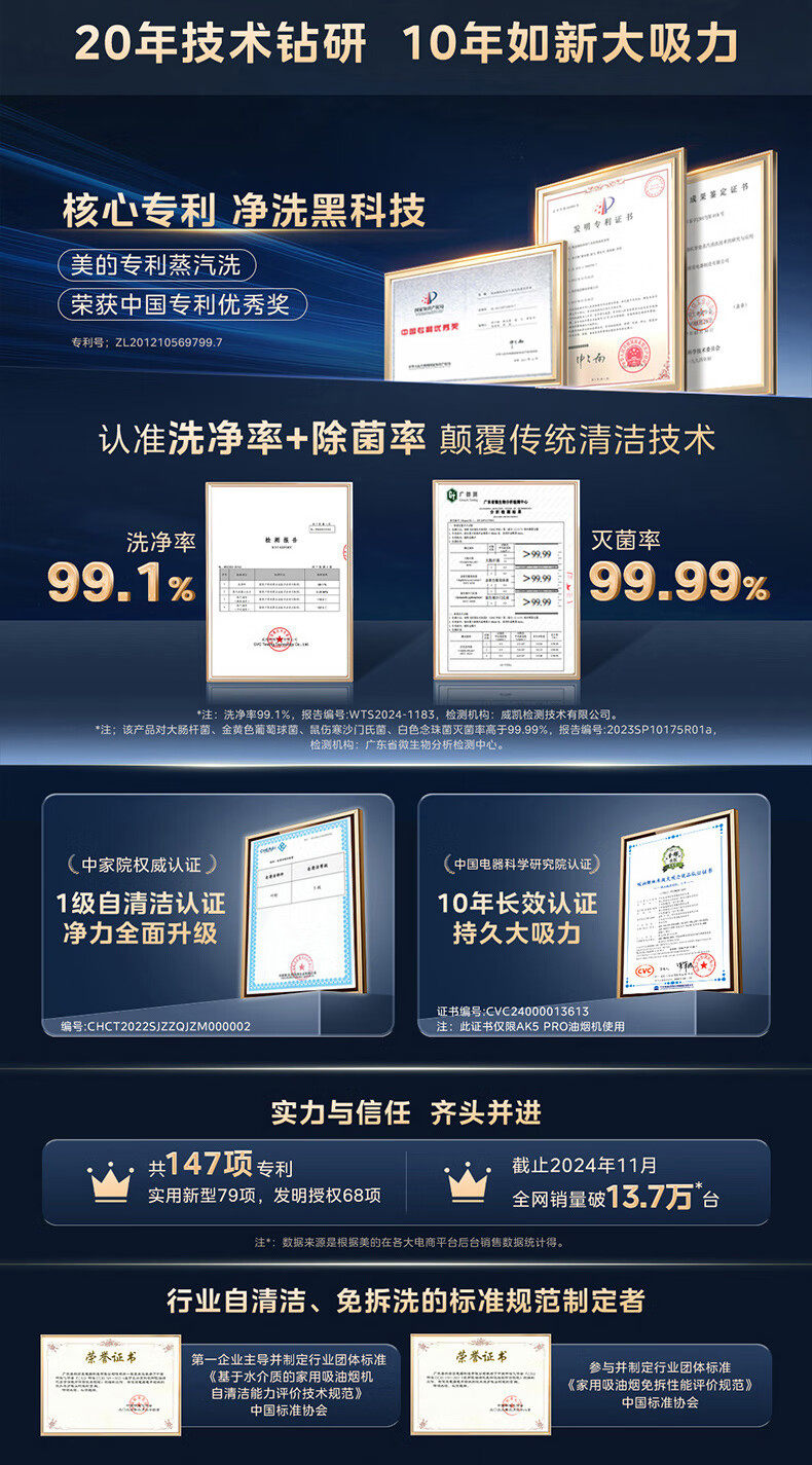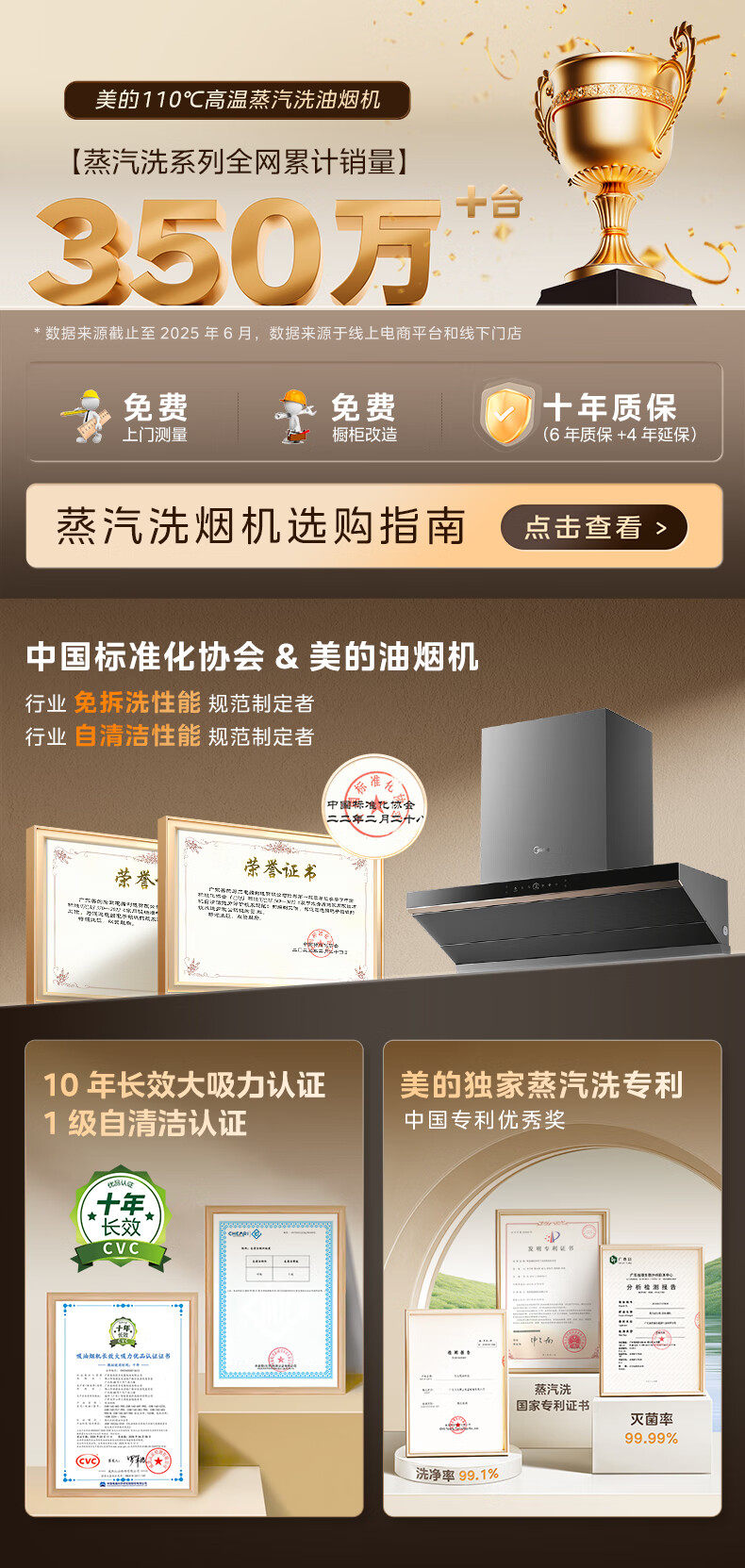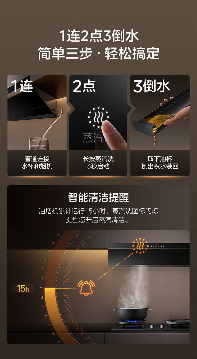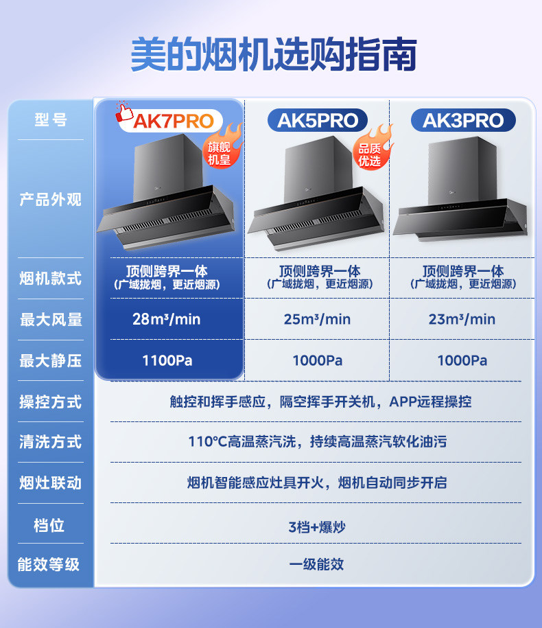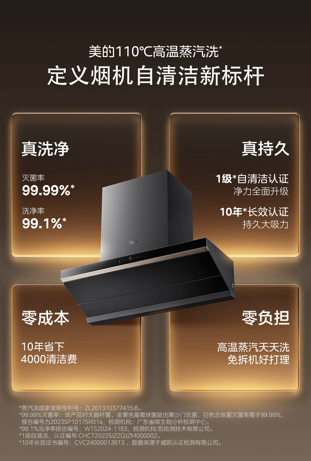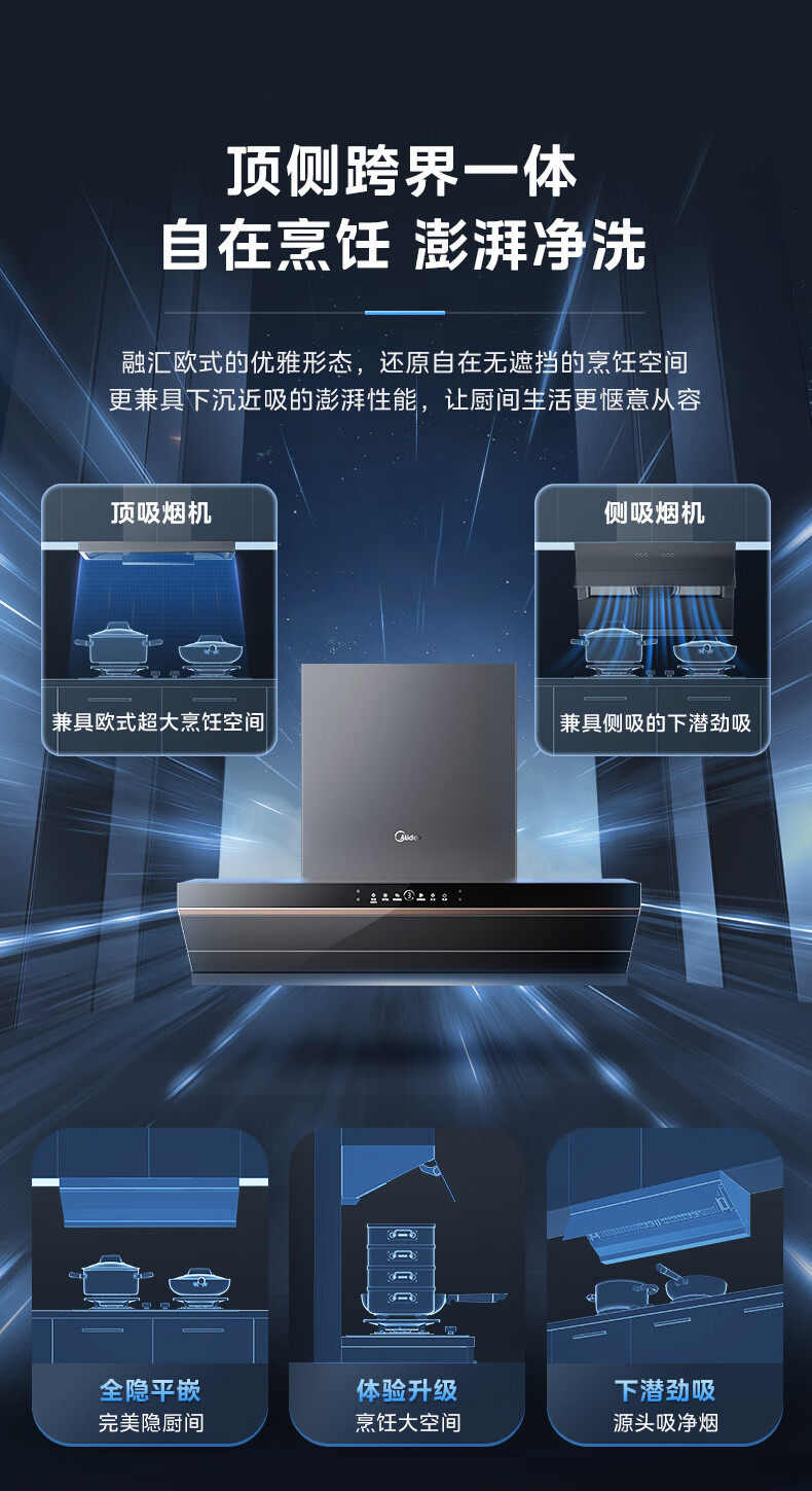 Midea Steam Wash Ak7Pro Household High-Suction Kitchen Range Hood Ak9Pro Smoke Stove Set Official