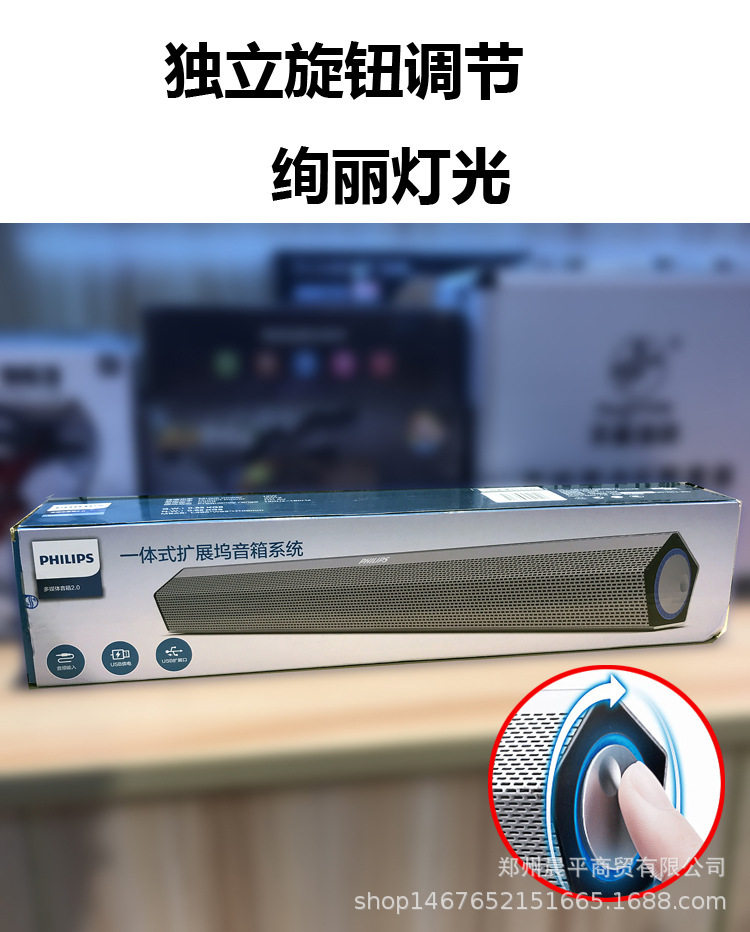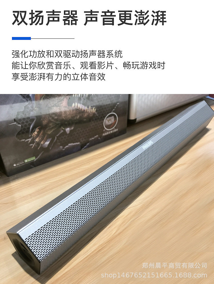 Philips Spa520S/93 Desktop Laptop Speaker Portable Wired USB Powered Long Strip