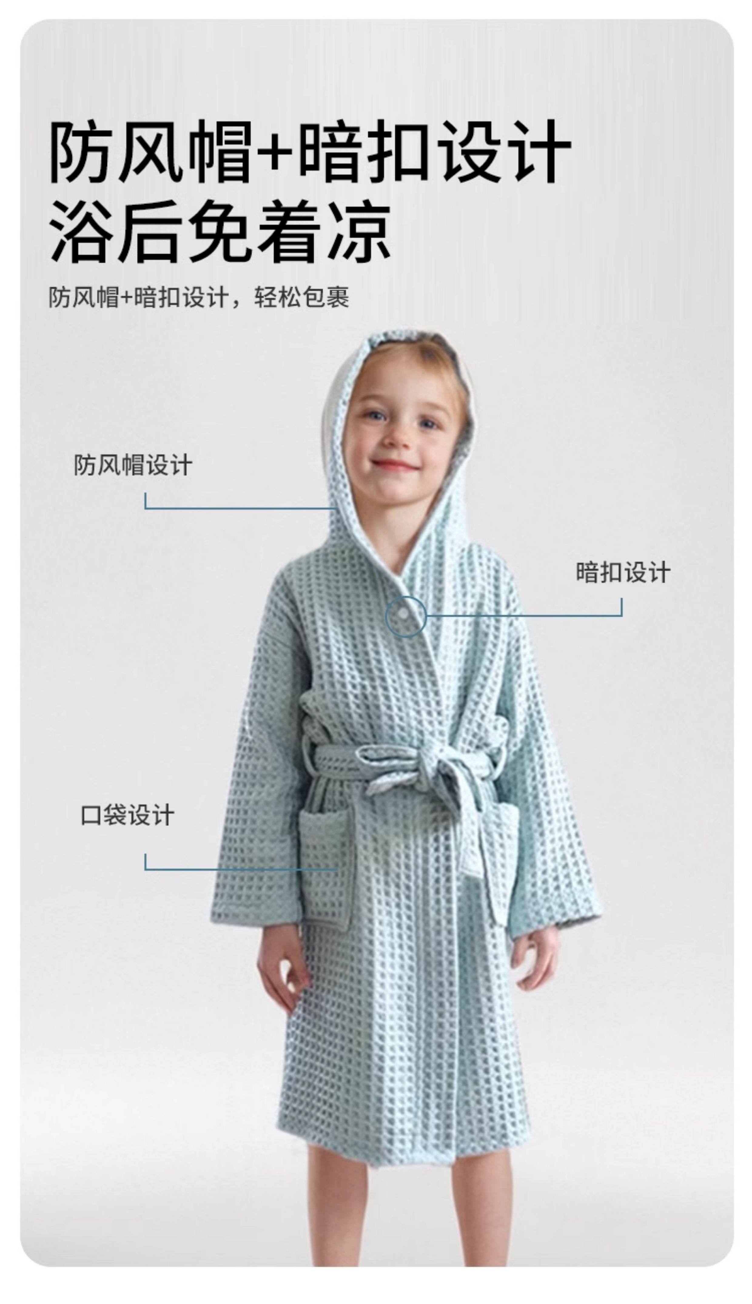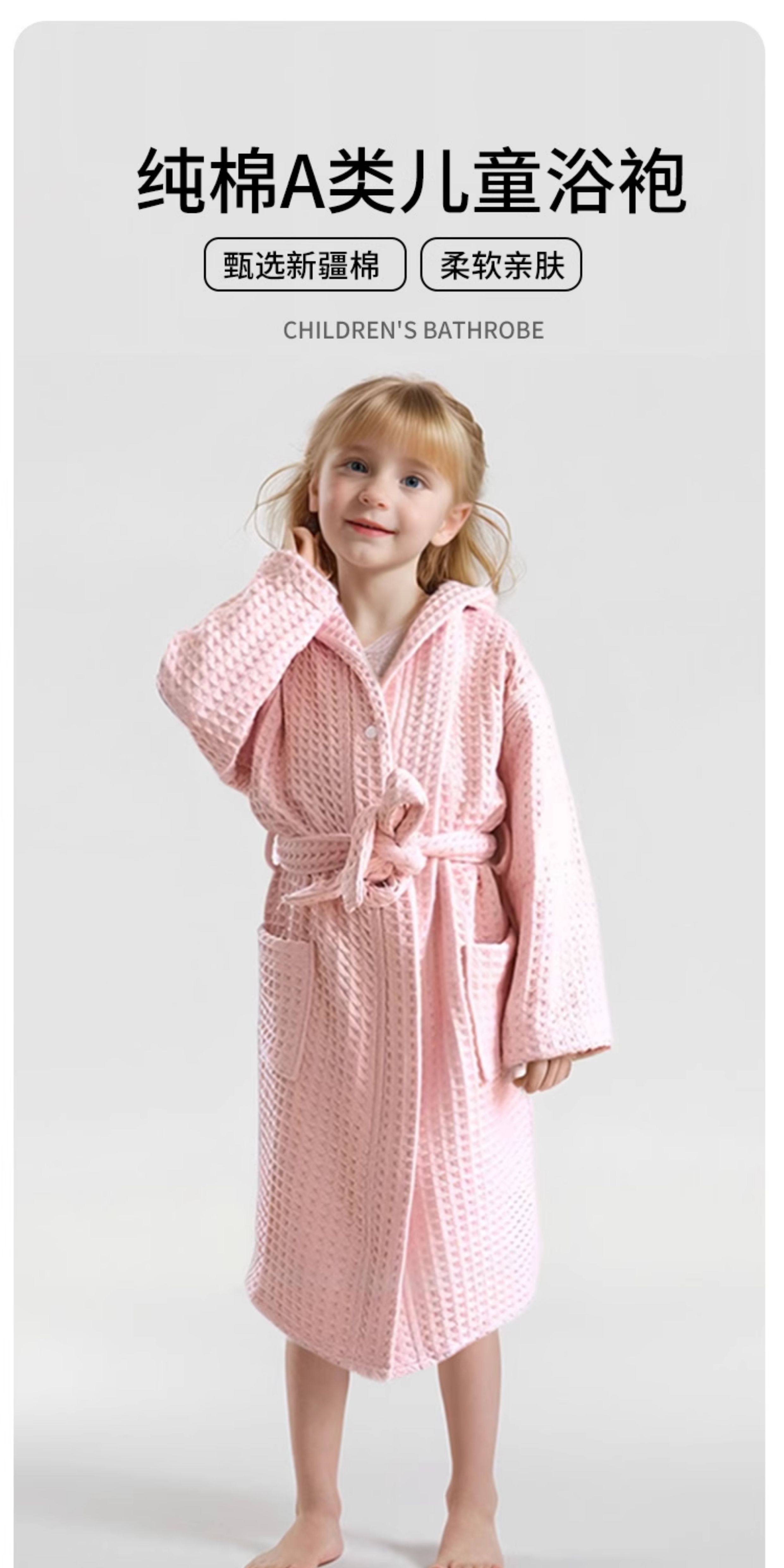 Light Rain Children's Bathrobe, Class A, All-Cotton, Wearable Bath Towel for Boys and Girls, Absorbent, Quick-Drying, Swimming Pure Cotton Bathrobe
