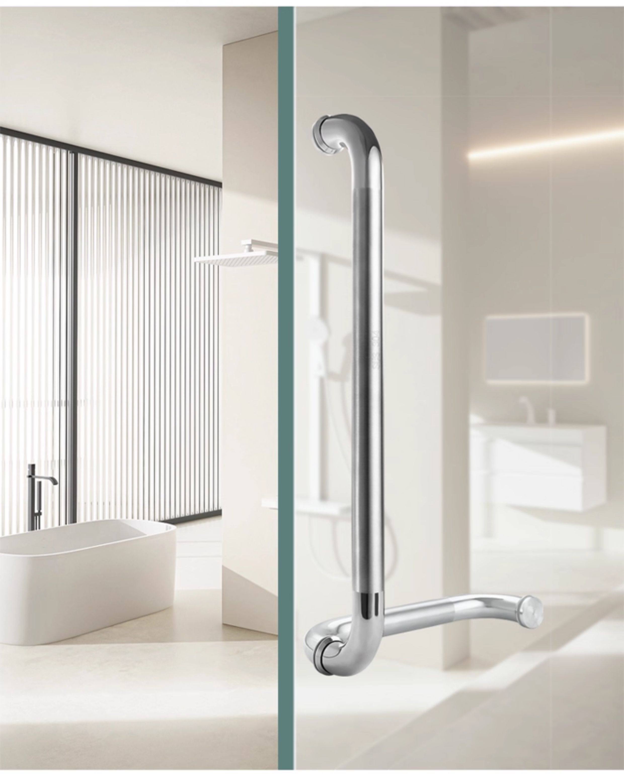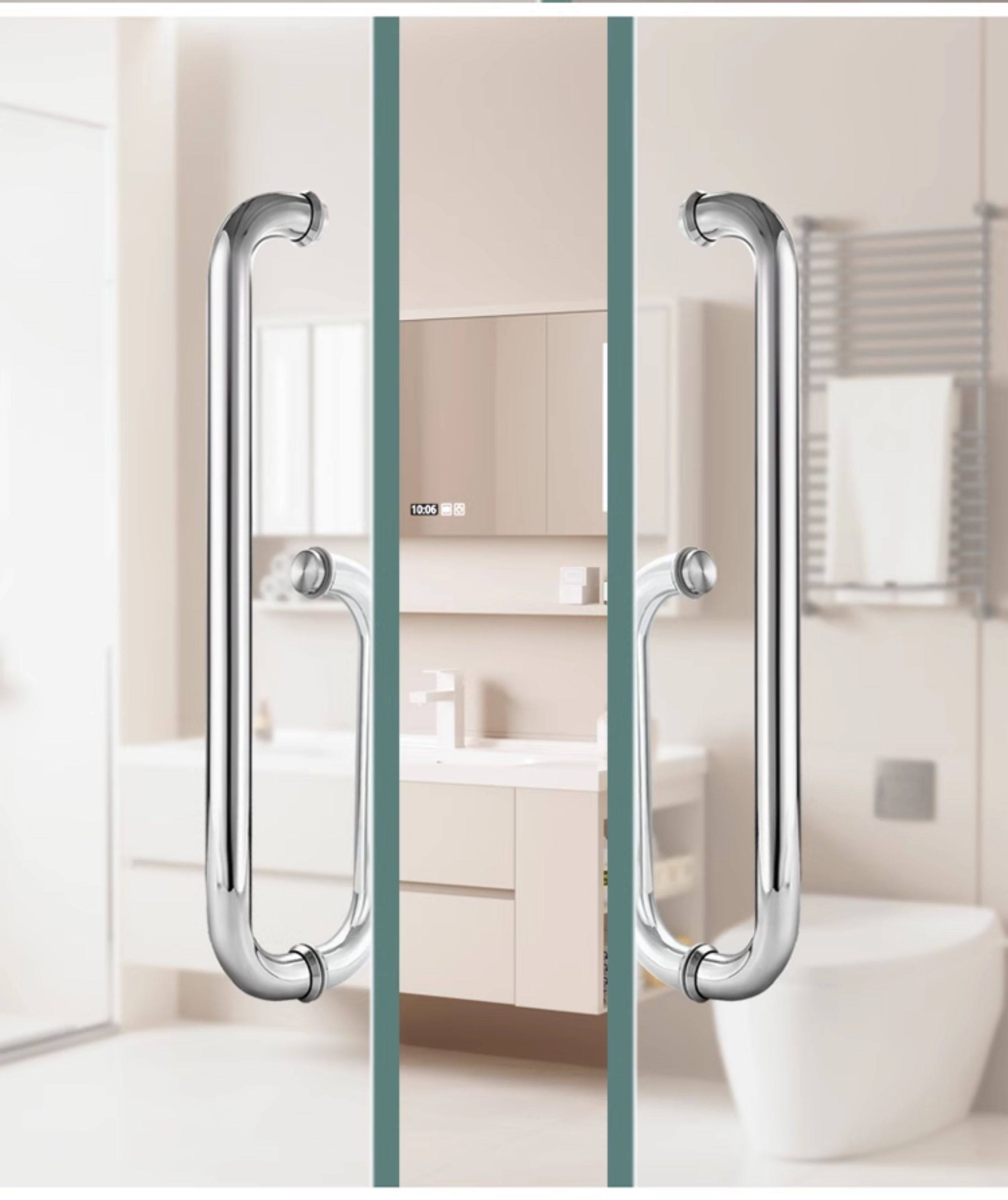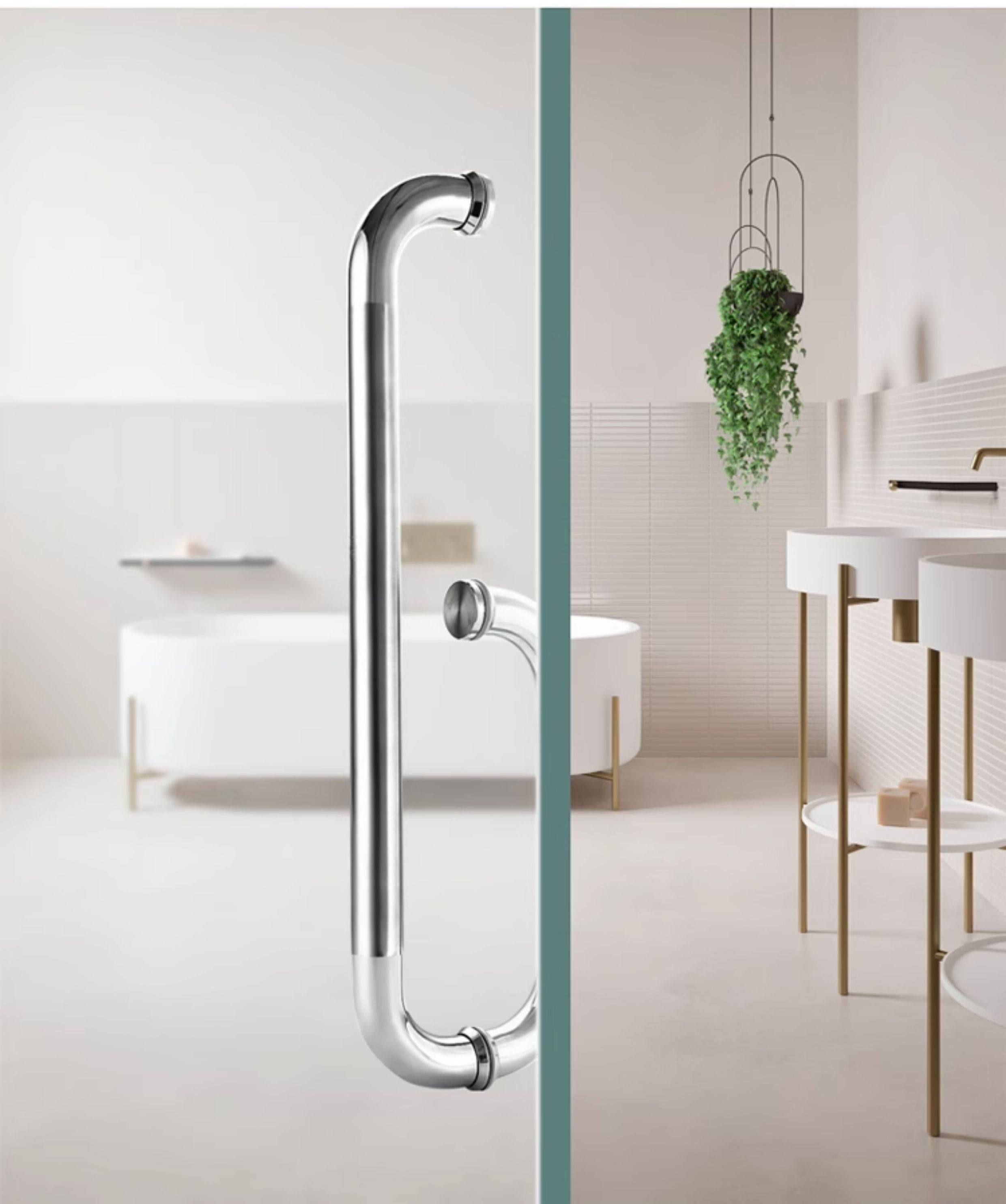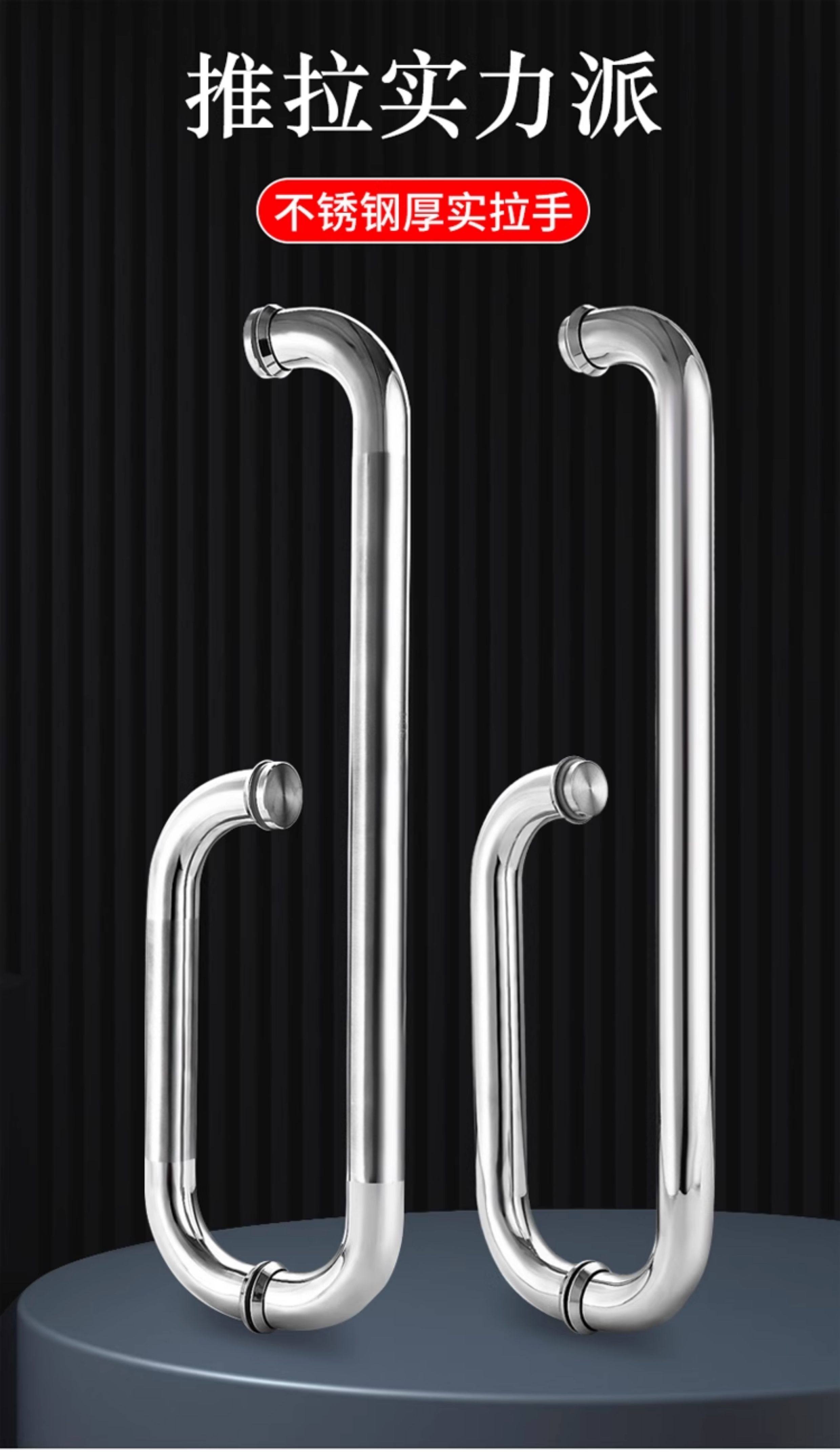 Glass Door Handle 304 Stainless Steel Copper Core Thickened Shower Room Handle Bathroom Toilet Sliding Door Handle L-Shaped