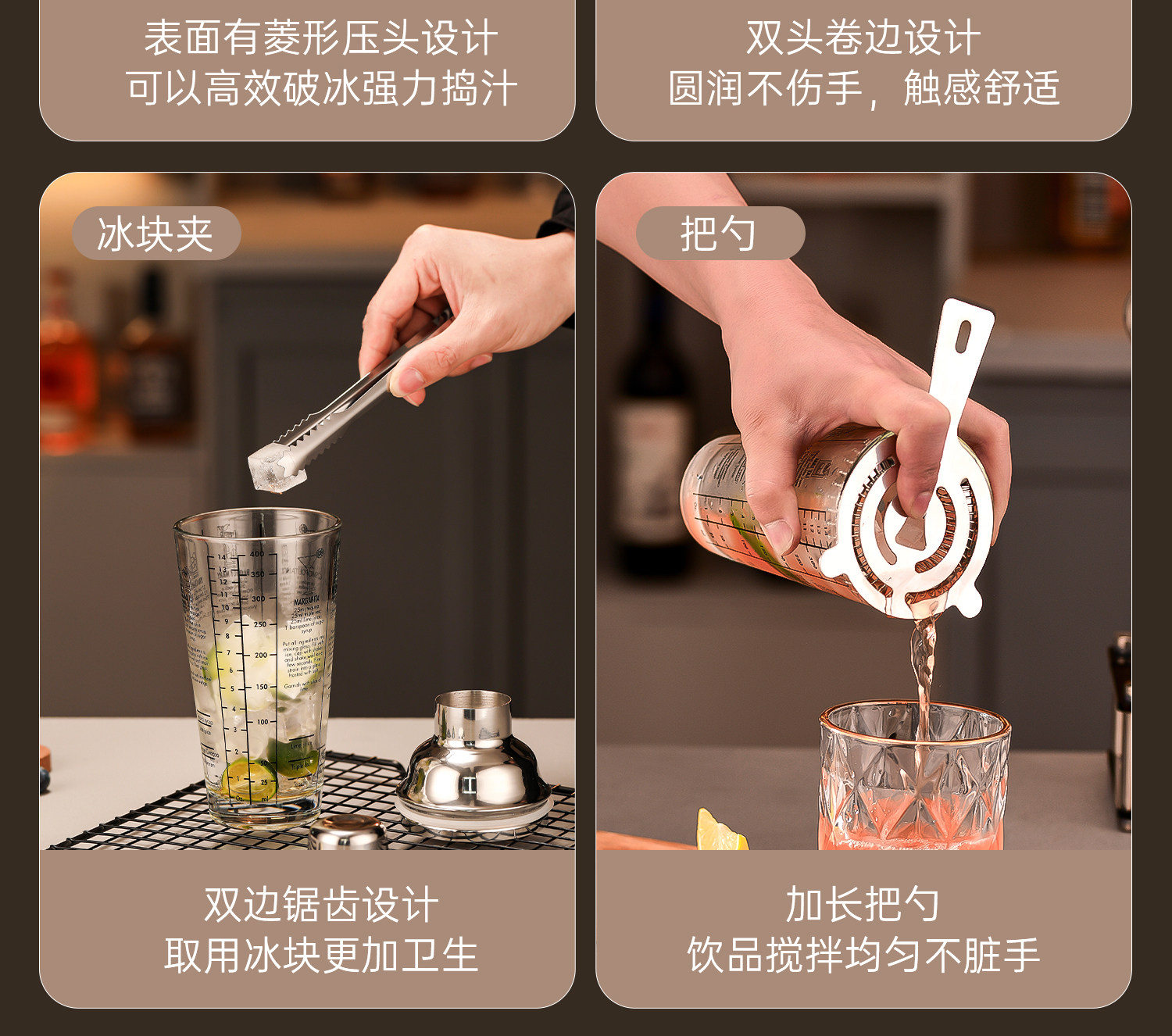 | Color Classification | 400ml Glass Shaker Cup,600ml Glass Shaker Cup,[2 Piece Set]400ml Glass Shaker Cup + Ice Crusher,[2 Piece Set]600ml Glass Shaker Cup + Ice Crusher,[3 Piece Set]400 ml⭐Glass Shaker Cup + Bar Spoon + Ice Hammer,[3 Piece Set]600 ml⭐Glass Shaker Cup + Bar Spoon + Ice Hammer,[3 Piece Set]400 ml⭐Glass Shaker Cup + Bar Spoon + Measuring Cup,[3 Piece Set]600 ml⭐Glass Shaker Cup + Bar Spoon + Measuring Cup,[4 Piece Set]400 ml ⭐ Glass Shaker Cup + Bar Spoon + Ice Hammer + Measuring Cup,[4 Piece Set]600 ml⭐Glass Shaker Cup + Bar Spoon + Ice Hammer + Measuring Cup,[5 Piece Set]400ml Glass Shaker Cup + Bar Spoon + Ice Hammer + Measuring Cup + Ice Clip,[5 Piece Set]600ml Glass Shaker Cup + Bar Spoon + Ice Hammer + Measuring Cup + Ice Clip,[14-Piece Set]400 ml⭐Glass Shaker Cup★Complete Set of Bartending Tools,[14-Piece Set]600 ml⭐Glass Shaker Cup★Complete Set of Bartending Tools,[19-Piece Set]400 ml⭐Glass Shaker Cup★Professional Version of Complete Bartending Tools,[19-Piece Set]600 ml⭐Glass Shaker Cup★Professional Version of Complete Bartending Tools,550 ml ⭐ 304 Stainless Steel Shaker Cup,750 ml⭐304 Stainless Steel Shaker Cup,[2 Piece Set]550 ml⭐304 Stainless Steel Shaker Cup + Ice Hammer,[2 Piece Set]750 ml⭐304 Stainless Steel Shaker Cup + Ice Hammer,[3 Piece Set]550 ml⭐304 Stainless Steel Shaker Cup + Bar Spoon + Measuring Cup,[3 Piece Set]750 ml⭐304 Stainless Steel Shaker Cup + Bar Spoon + Measuring Cup,[3 Piece Set]550 ml⭐304 Stainless Steel Shaker Cup + Bar Spoon + Ice Hammer,[3 Piece Set]750 ml⭐304 Stainless Steel Shaker Cup + Bar Spoon + Ice Hammer,[4 Piece Set]550 ml⭐304 Stainless Steel Shaker Cup + Bar Spoon + Ice Hammer + Measuring Cup,[4 Piece Set]750 ml⭐304 Stainless Steel Shaker Cup + Bar Spoon + Ice Hammer + Measuring Cup,[5 Piece Set]550 ml⭐304 Stainless Steel Shaker Cup + Bar Spoon + Ice Hammer + Measuring Cup + Ice Clip,[5 Piece Set]750 ml⭐304 Stainless Steel Shaker Cup + Bar Spoon + Ice Hammer + Measuring Cup + Ice Clip,[14-Piece Set]550 ml⭐304 Stainless Steel Shaker Cup★Professional Version of Complete Bartending Tools,[14-Piece Set]750 ml⭐304 Stainless Steel Shaker Cup★Professional Version of Complete Bartending Tools,[19-Piece Set]550 ml⭐304 Stainless Steel Shaker Cup★Professional Version of Complete Bartending Tools,[19-Piece Set]750 ml⭐304 Stainless Steel Shaker Cup★Professional Version of Complete Bartending Tools |