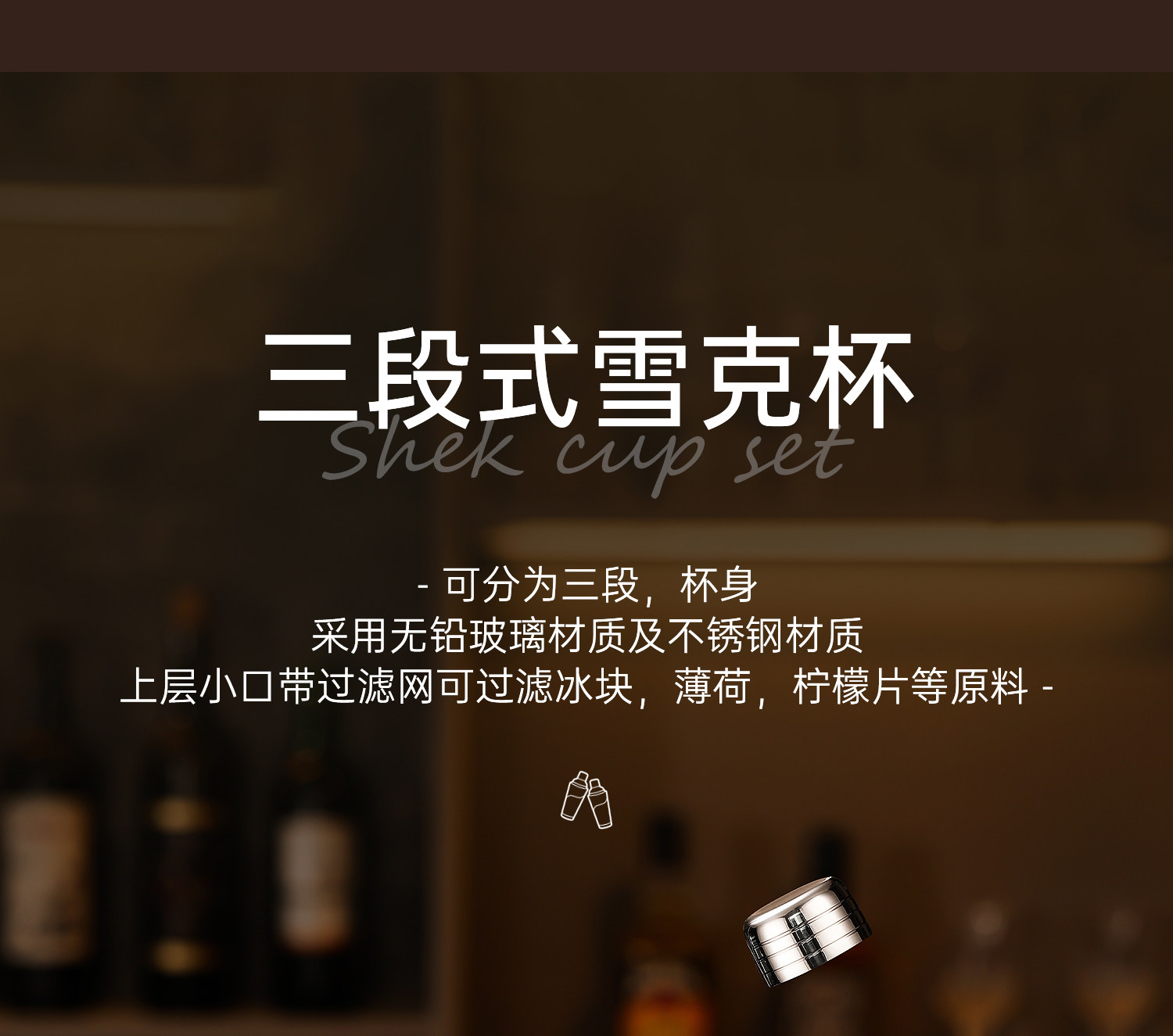 Stainless Steel Cocktail Shaker Glass Shaker Hand Shaker Cocktail Bar Mixing Tool Set Shake Shaker