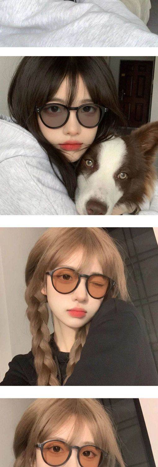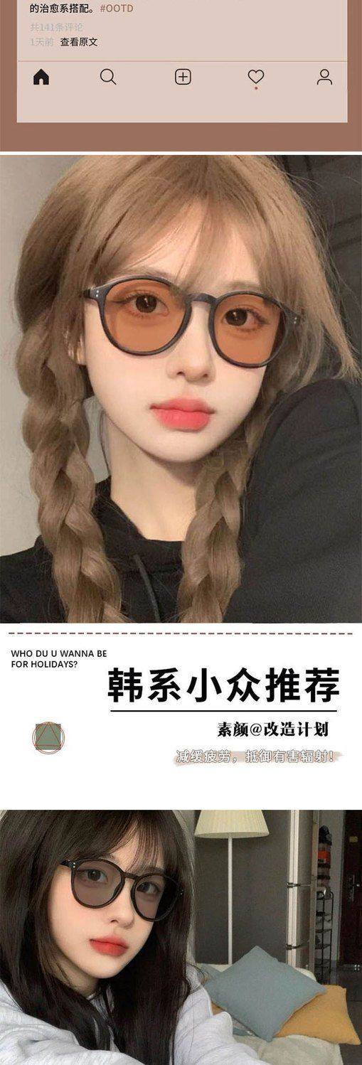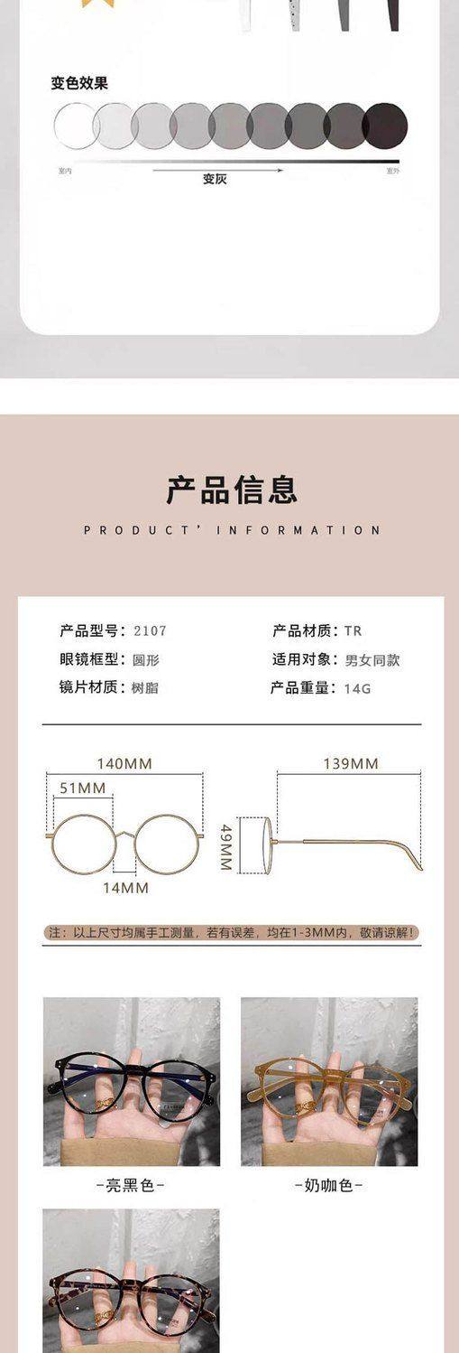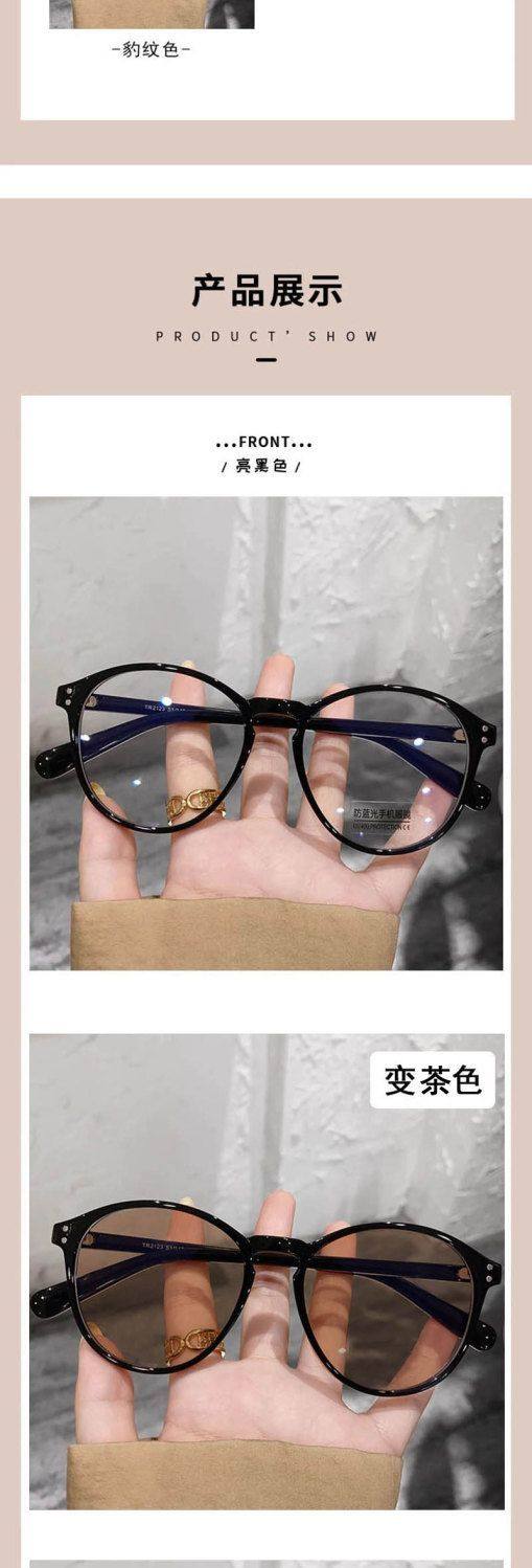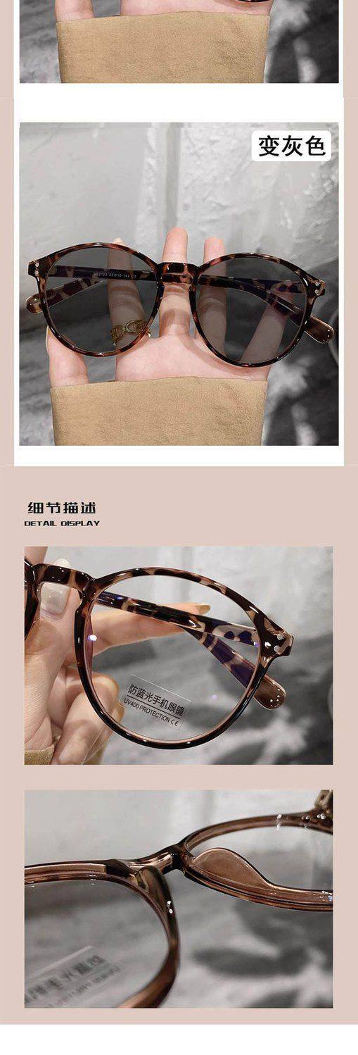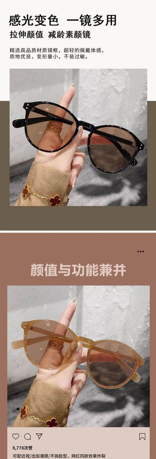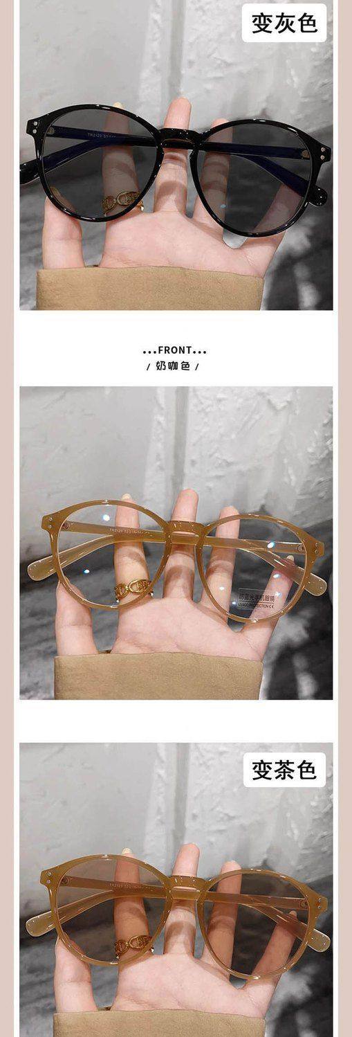 Korean-Style Retro Photochromic Glasses with Round Frames for Female Students, Anti-Blue Light, Can Be Fitted with Prescription Lenses, Natural Look, Black Frames, Eye Protection