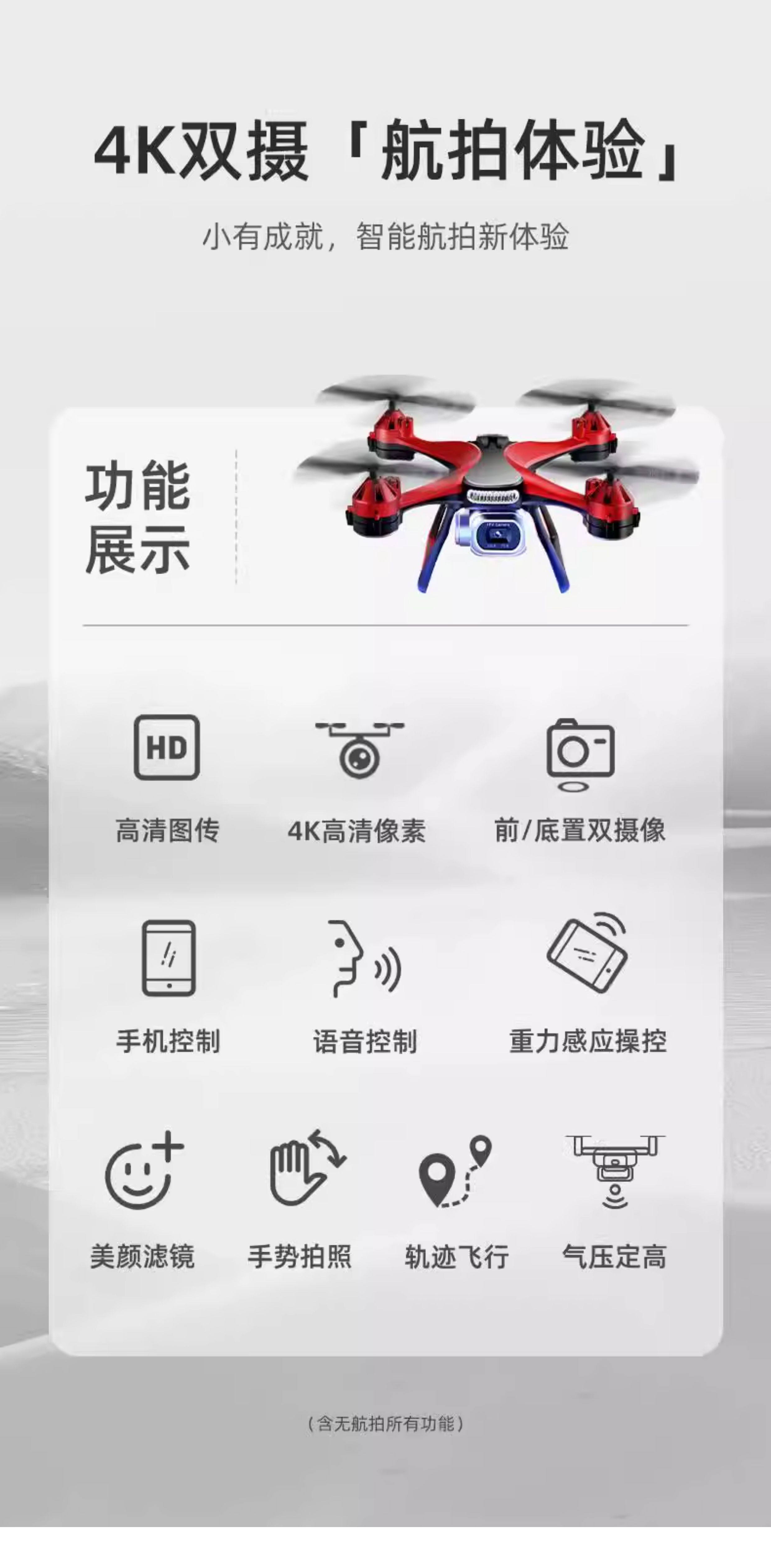 | Color Classification | Fixed Height Version + No Aerial Photography[Ordinary Size 33cm]Red[No Storage Bag Included],Fixed Height Version + No Aerial Photography[Ordinary Size 33cm]Blue[No Storage Bag Included],4K Single Camera + Upgraded Version + Three-Level Training Mode[Ordinary Size 33cm]White,4K Single Camera + Upgraded Version + Three-Level Training Mode[Ordinary Size 33cm]Blue,4K Single Camera + Upgraded Version + Three-Level Training Mode[Ordinary Size 33cm]Red,6K Single Camera + Upgraded Version + Three-Level Training Mode[Ordinary Size 33cm]White,6K Single Camera + Upgraded Version + Three-Level Training Mode[Ordinary Size 33cm]Blue,6K Single Camera + Upgraded Version + Three-Level Training Mode[Ordinary Size 33cm]Red,4K Dual Camera + Upgraded Version + Three-Level Training Mode[Ordinary Ruler 33cm]Red,4K Dual Camera + Upgraded Version + Three-Level Training Mode[Ordinary Ruler 33cm]Blue,4K Dual Camera + Upgraded Version + Three-Level Training Mode[Ordinary Ruler 33cm]White,6K Dual Camera + Upgraded Version + Three-Level Training Mode[Ordinary Ruler 33cm]Red,6K Dual Camera + Upgraded Version + Three-Level Training Mode[Ordinary Ruler 33cm]Blue,6K Dual Camera + Upgraded Version + Three-Level Training Mode[Ordinary Ruler 33cm]White,[Brushless Motor + Triple Camera 8K Hd + Intelligent Obstacle Avoidance]Electronic Gimbal + Optical Flow Stabilization[Red],[Brushless Motor + Triple Camera 8K Hd + Intelligent Obstacle Avoidance]Electronic Gimbal + Optical Flow Stabilization[Blue],[Airdrop + Intelligent Obstacle Avoidance + Brushless Motor + Wi-Fi Enabled]Optical Flow Hover + One-Click Takeoff and Landing,[Airdrop + Intelligent Obstacle Avoidance + Brushless + Wifi Model]Optical Flow Hover + One-Click Takeoff and Landing,Extra Large Size[Brushless + Wifi Model]Optical Flow Hover + Lossless Image Quality + One-Click Takeoff and Landing,Extra Large Size[Brushless + Wifi Model]Optical Flow Hover + Lossless Image Quality + One-Click Takeoff and Landing,[Remote Control with Screen Display]Motor + 8K Optical Flow Stabilization + 2000m + Dual Camera + One-Key Return,[ Remote Control with Screen Display]8K Optical Flow Stabilization + 2000m + Dual Cameras + One-Click Return,[Remote Control with Screen Display + Brushless Motor + Triple Camera 8K Hd + Intelligent Obstacle Avoidance + Electronically Controlled Gimbal + Optical Flow Stabilization]Comes with Memory Card + Card Reader + Storage Bag[Red],[Remote Control with Screen Display + Brushless Motor + Triple Camera 8K Hd + Intelligent Obstacle Avoidance + Electronically Controlled Gimbal + Optical Flow Stabilization]Comes with Memory Card + Card Reader + Storage Bag[Black] |