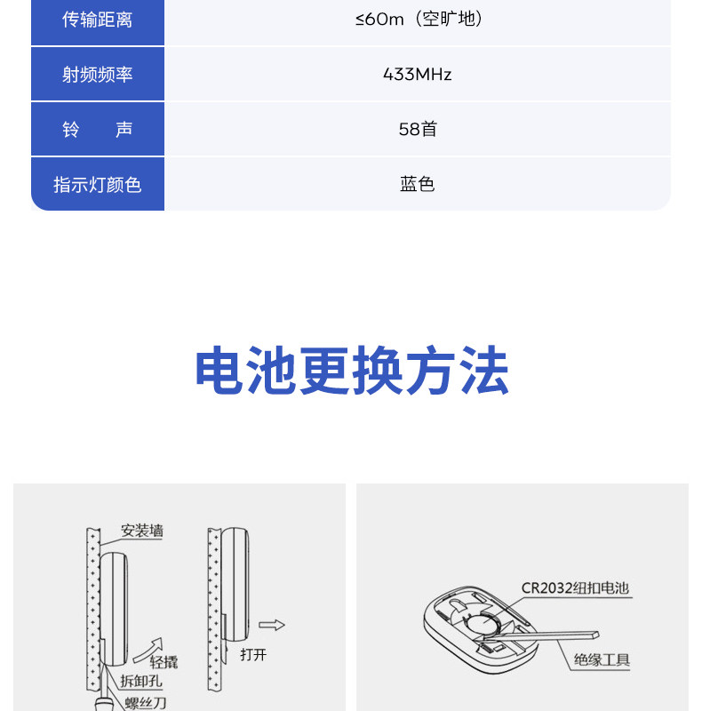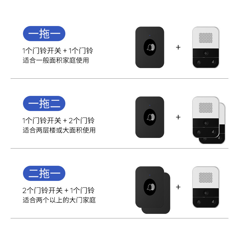 | Color Classification | Black One for One[1 Bell + 1 Button],White One for One[1 Bell + 1 Button],Black One for Two[1 Bell + 2 Buttons],White One for Two[1 Bell + 2 Buttons] |