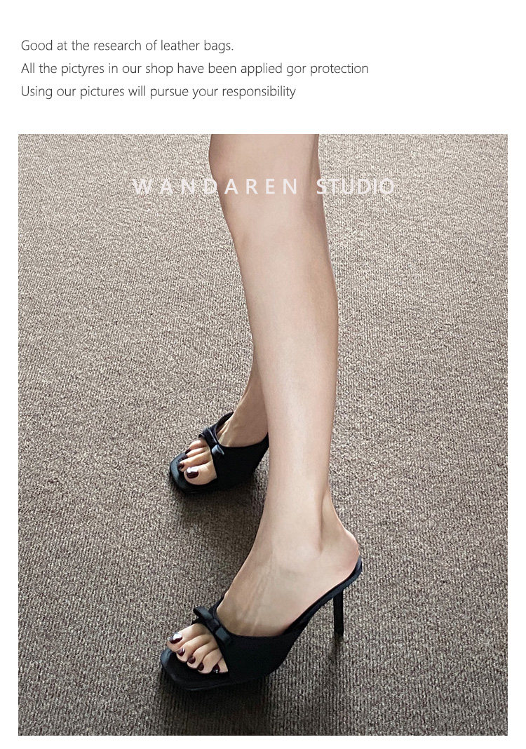 Unique Bow-Knot High-Heeled Slippers, French-Style Mules, Half-Slippers, New High-Heeled Sandals for Women, Summer Outdoor Wear