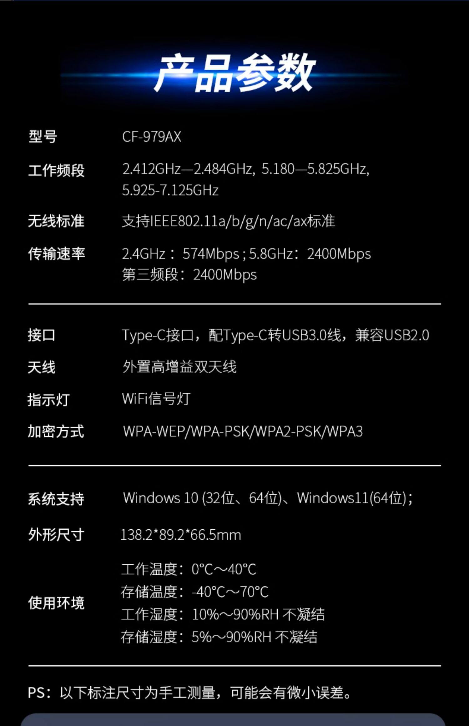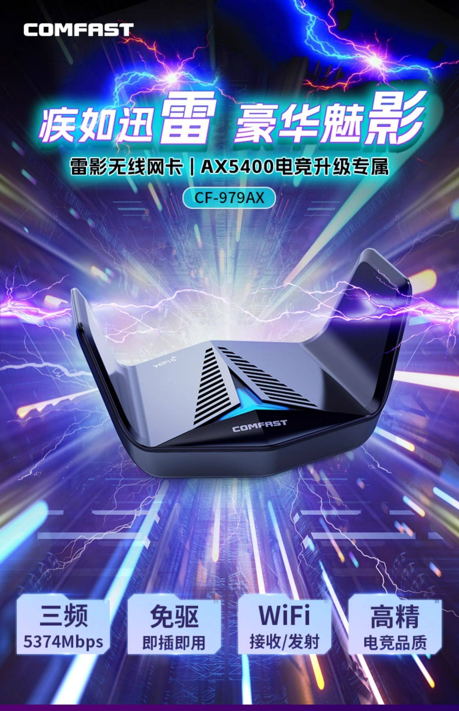 [5400M Tri-Band]Comfast Cf-979Ax Wireless Network Card Desktop Wifi6 Gigabit 5g Dual-Band Network Signal Receiver Laptop External USB Wireless Network Card