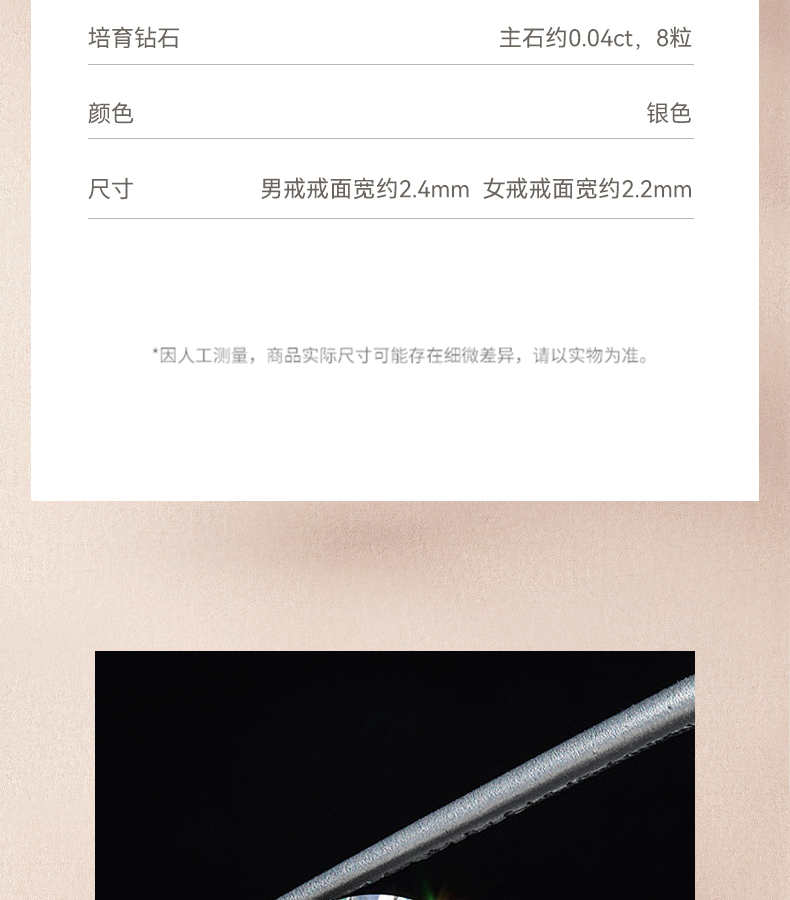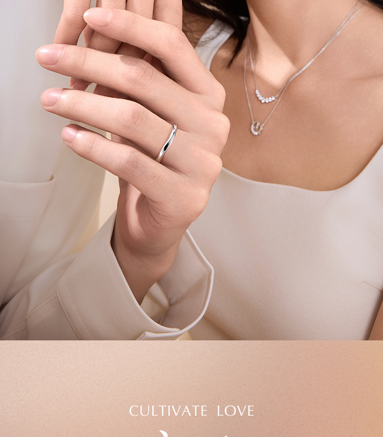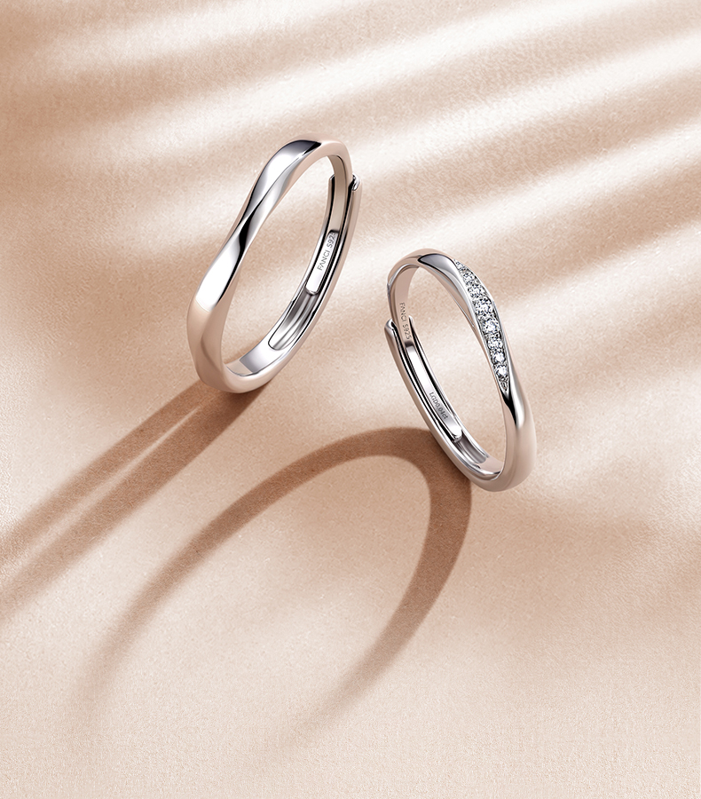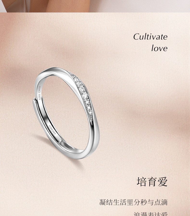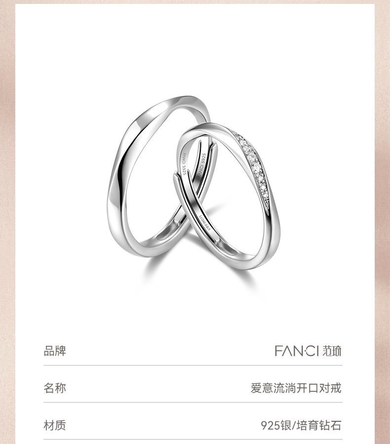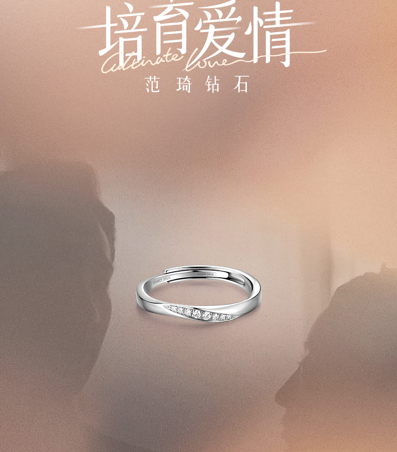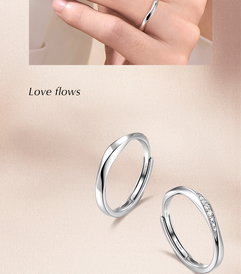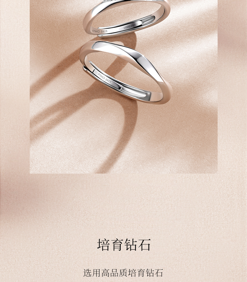 [Cultivated]Diamond Fanci Fan Qi Love-Flowing Diamond Ring 925 Silver Cultivated Diamond Couple Ring Valentine's Day Gift