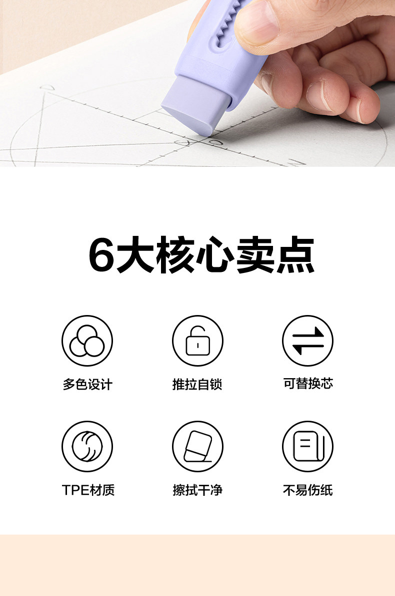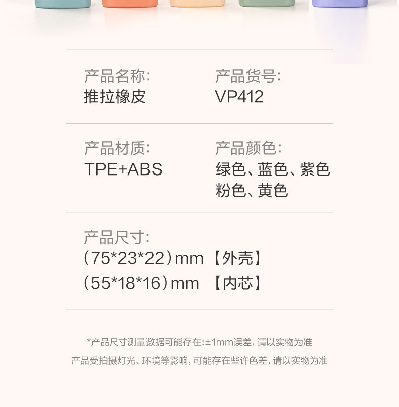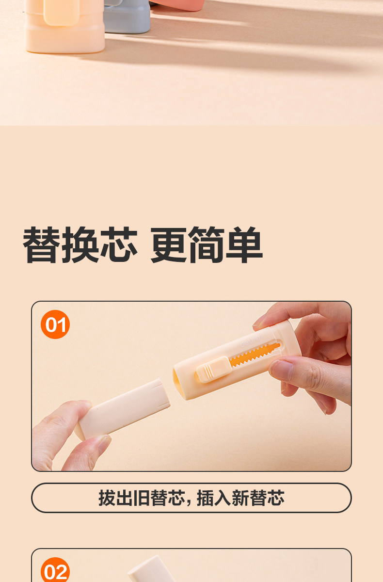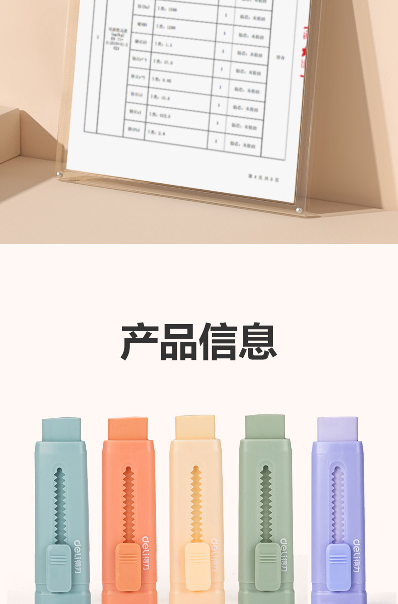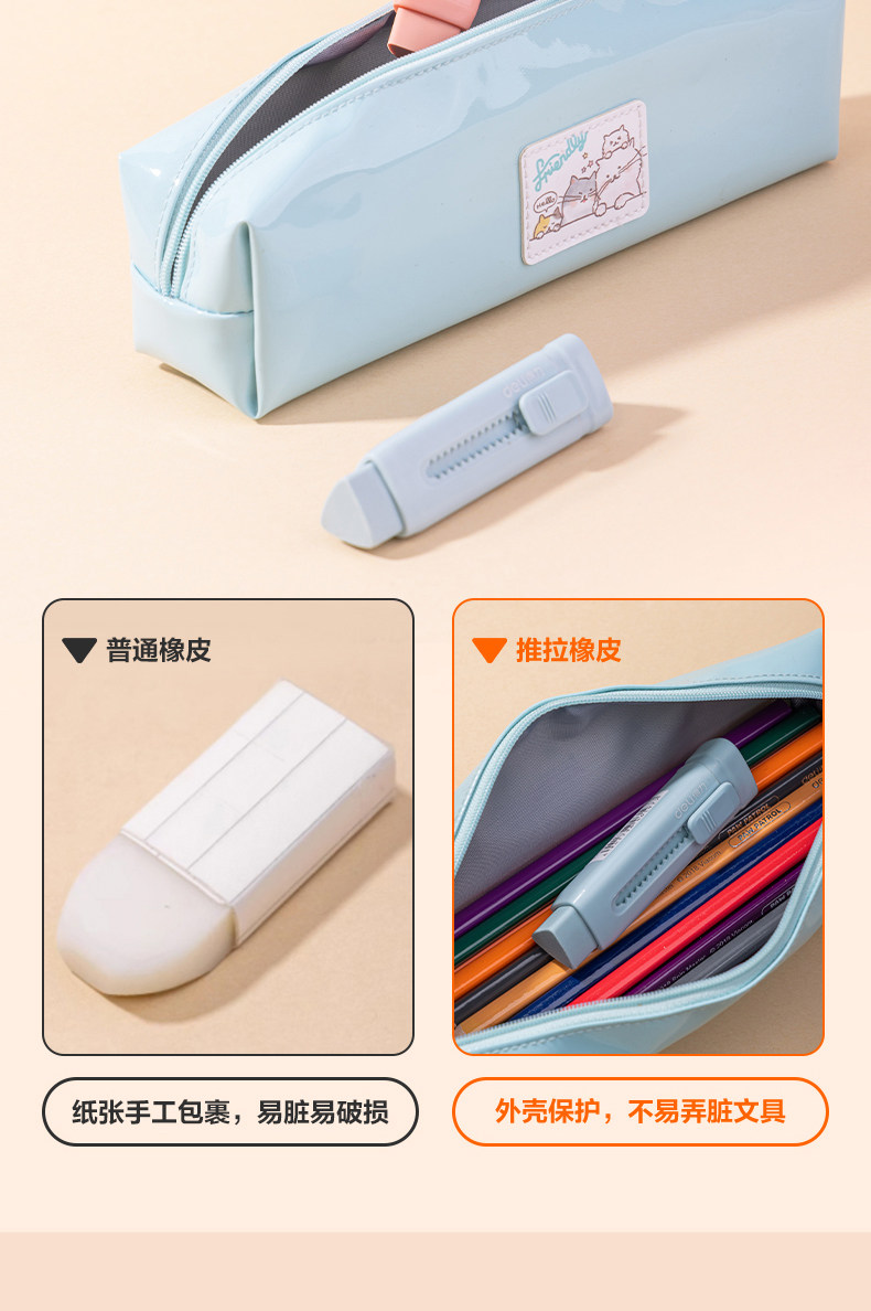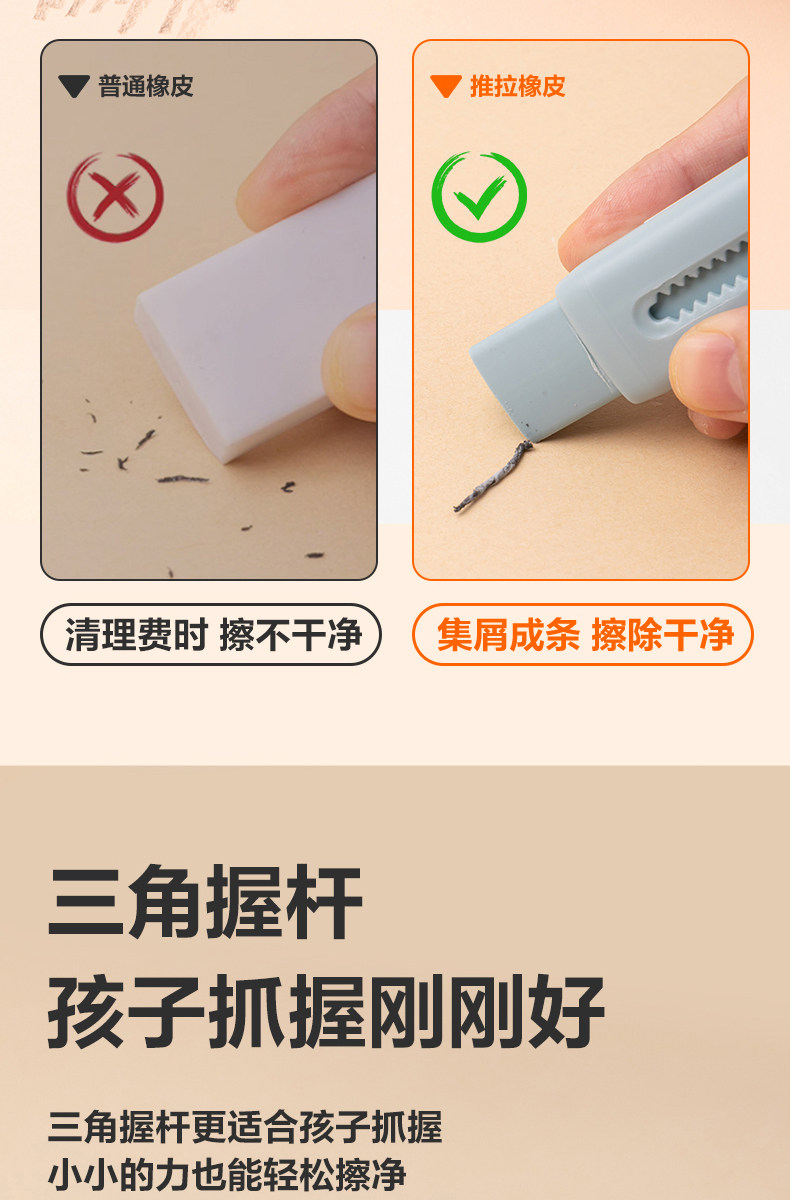Deli Push-Pull Eraser for Elementary School Students, No Debris, Ultra-Clean, Creative Elephant Skin Eraser, Cute Cartoon Design, Non-Toxic for Kindergarten, High-Value Children's Push-Type Eraser, Leaves No Marks