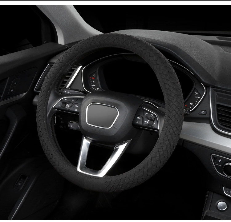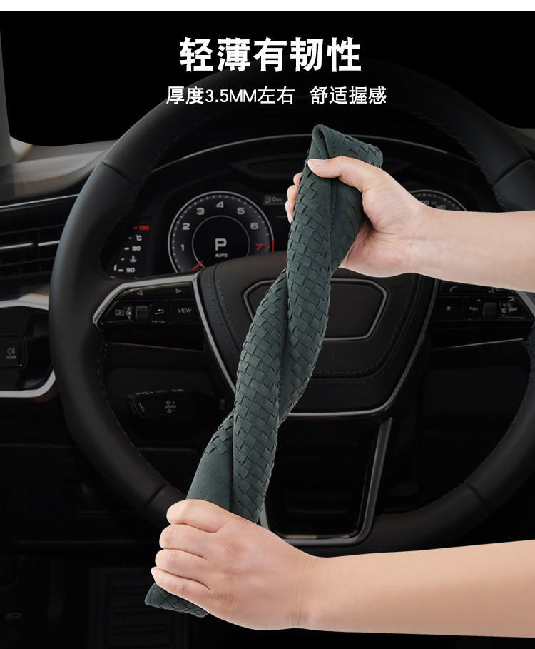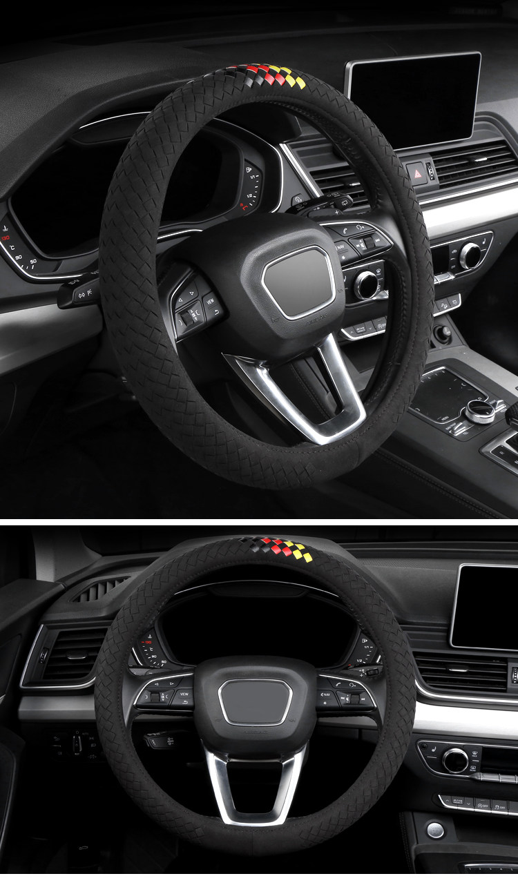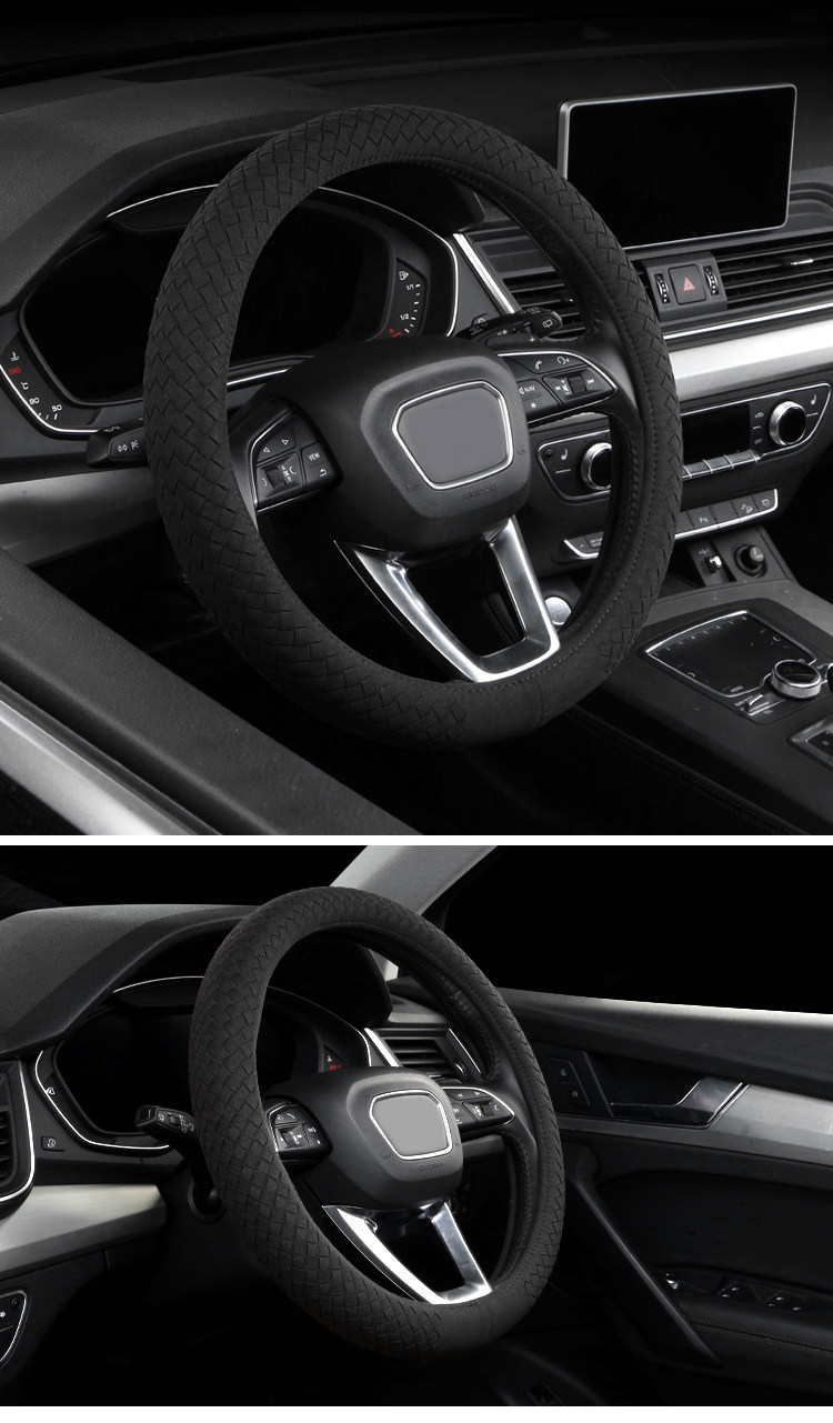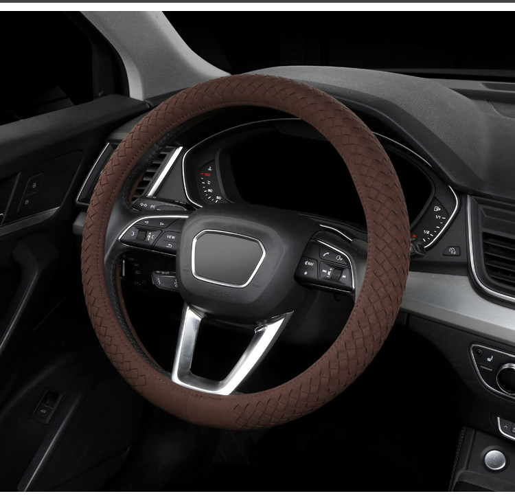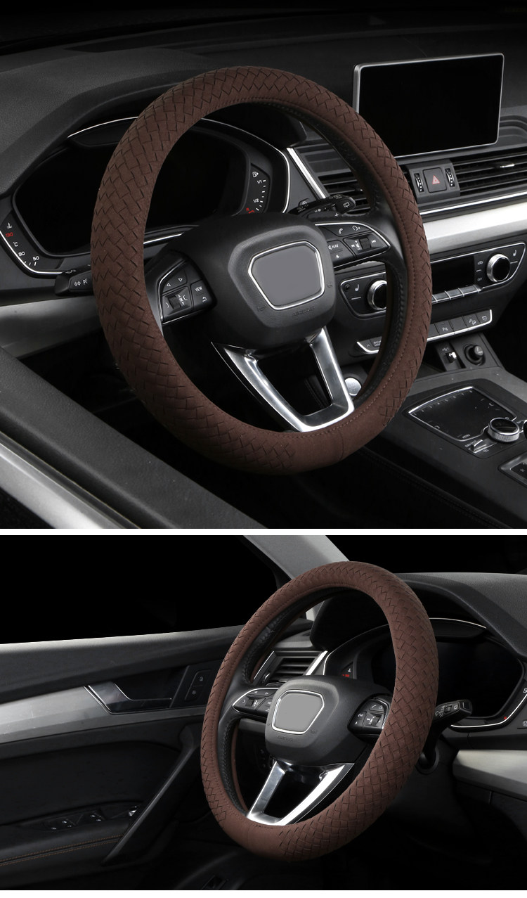 Carbojue Woven Steering Wheel Cover with Suede Leather, Sweat-Absorbent, Non-Slip Silicone Inner Ring, Ultra-Thin, Suitable for All Seasons