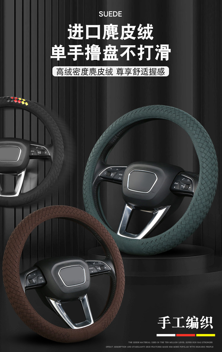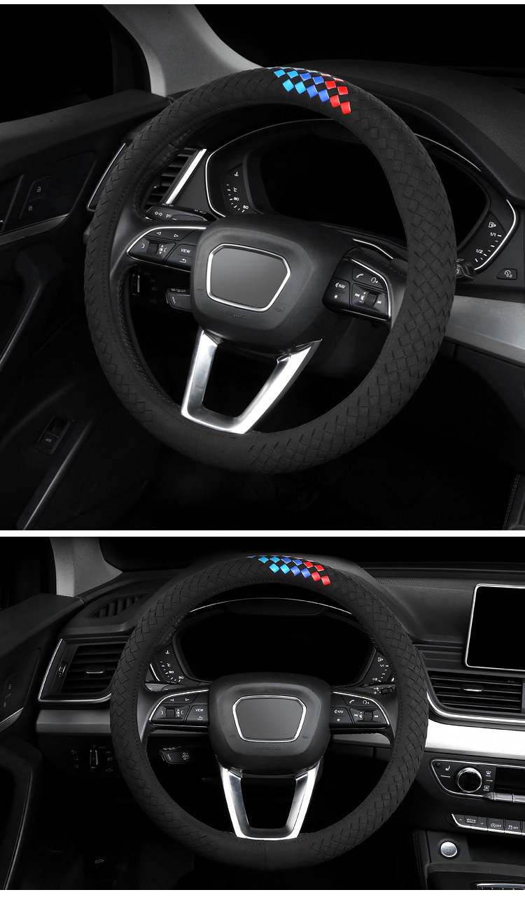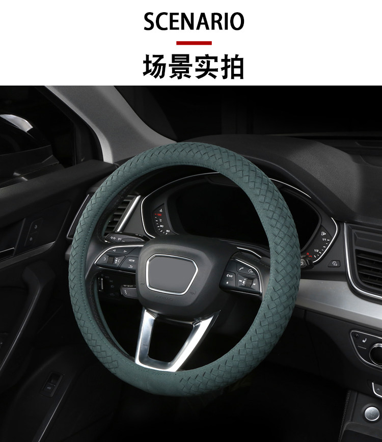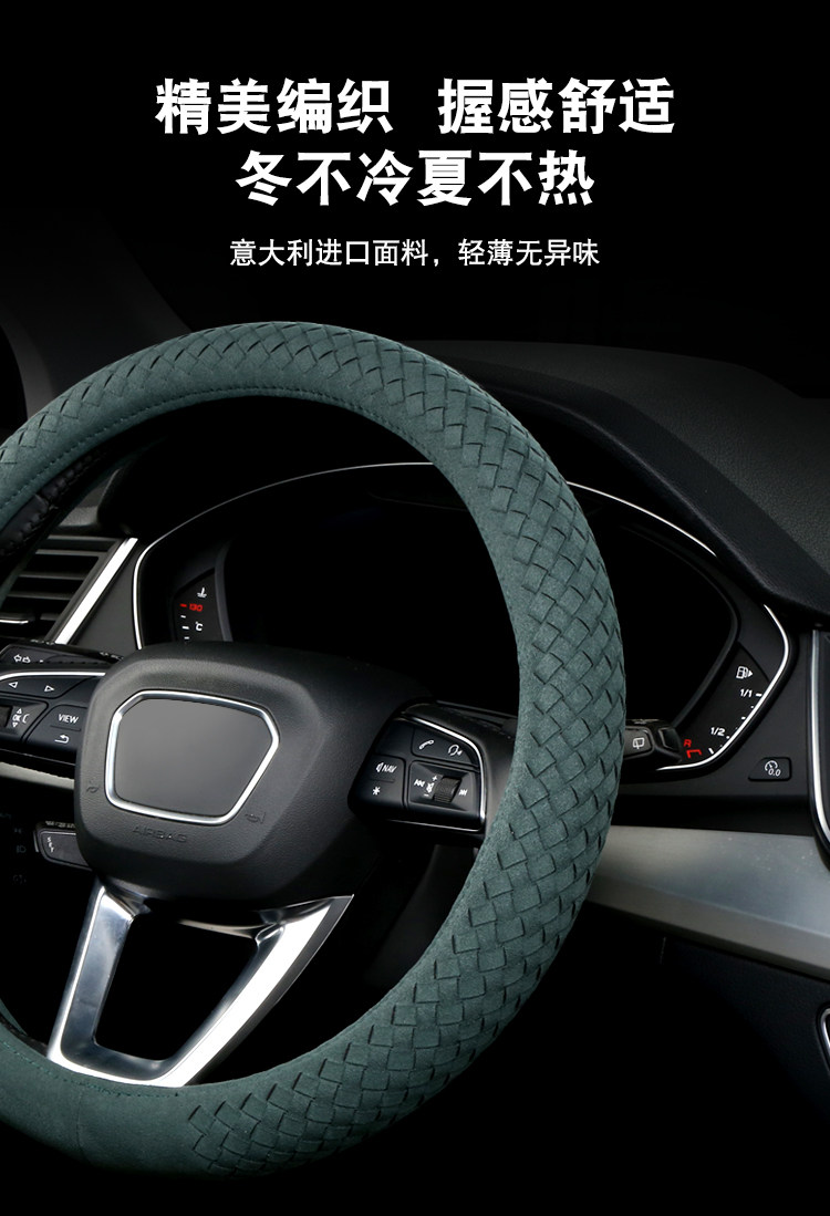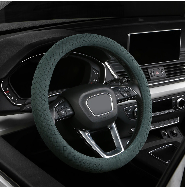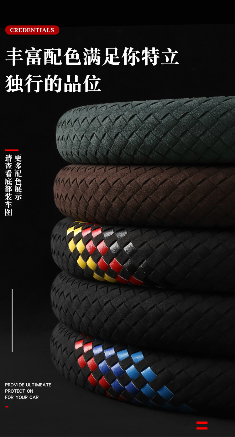 Carbojue Woven Steering Wheel Cover with Suede Leather, Sweat-Absorbent, Non-Slip Silicone Inner Ring, Ultra-Thin, Suitable for All Seasons