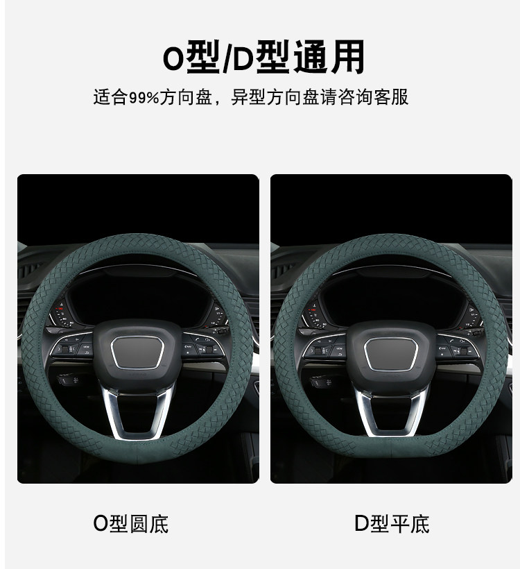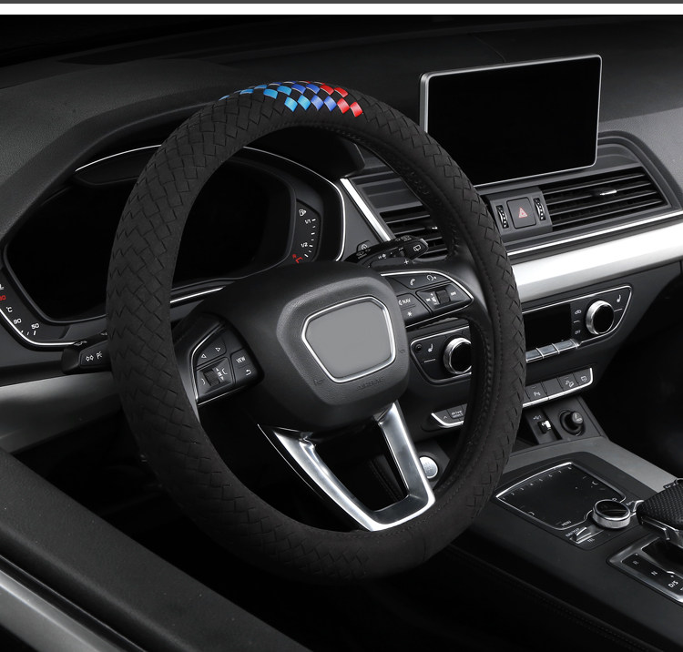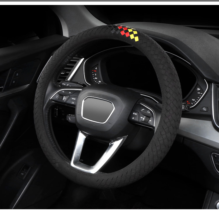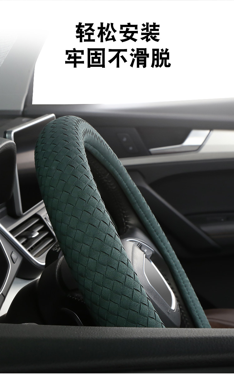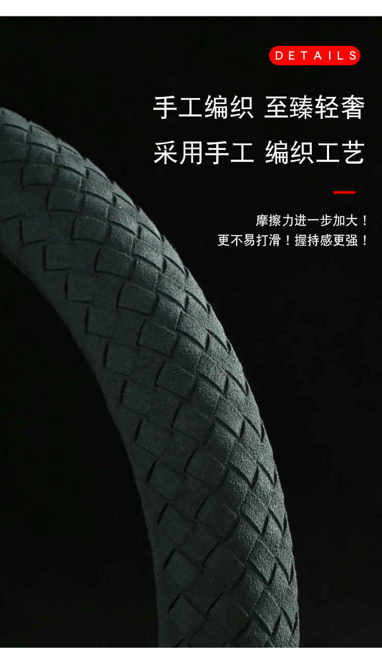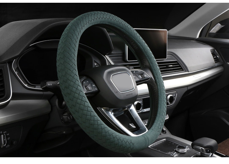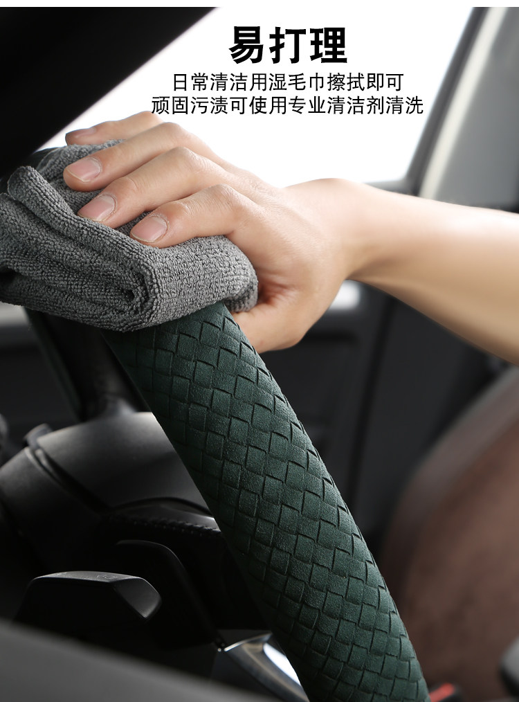 Carbojue Woven Steering Wheel Cover with Suede Leather, Sweat-Absorbent, Non-Slip Silicone Inner Ring, Ultra-Thin, Suitable for All Seasons