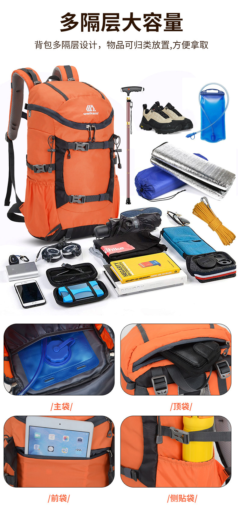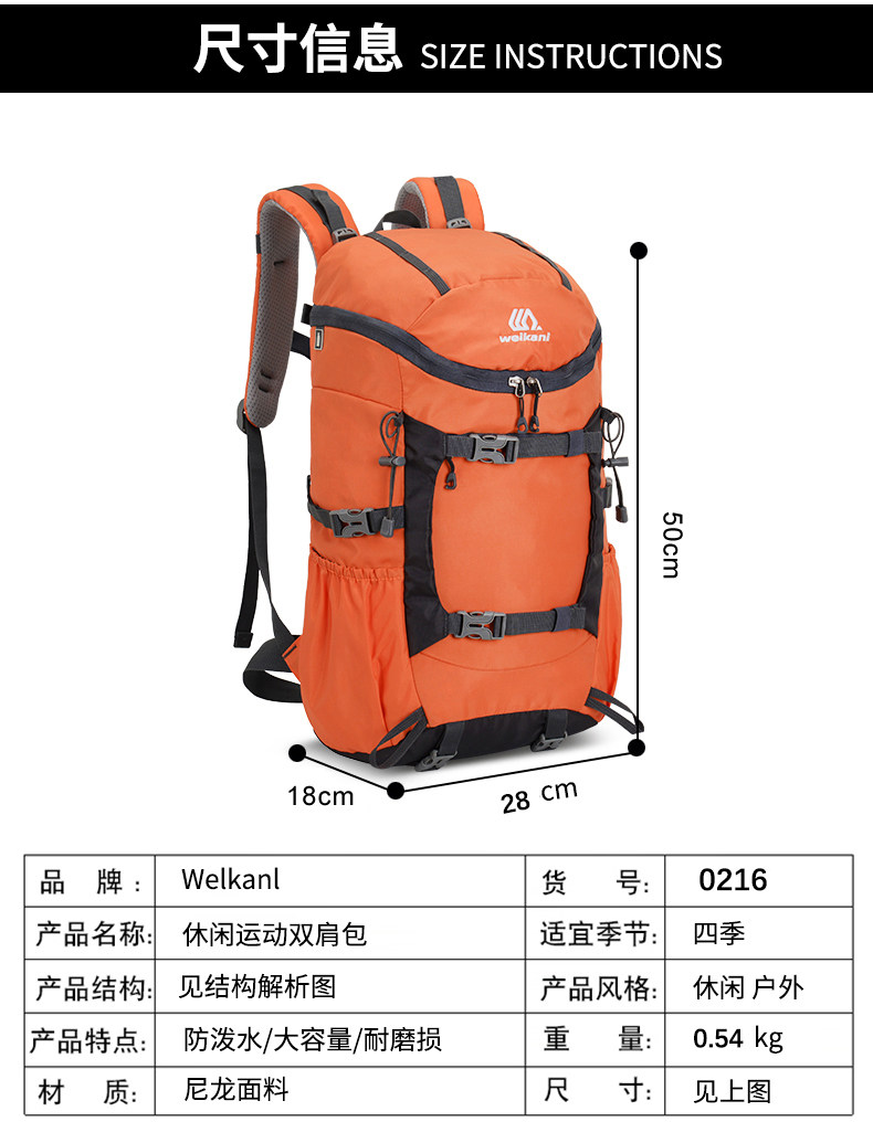 | Color Classification | Purple,Army Green,Green,Black,Dark Blue,Sky Blue,Orange,Black + Rain Cover,Orange + Rain Cover,Military Green + Rain Cover,Sky Blue + Rain Cover,Dark Blue + Rain Cover,Green + Rain Cover,Purple + Rain Cover |