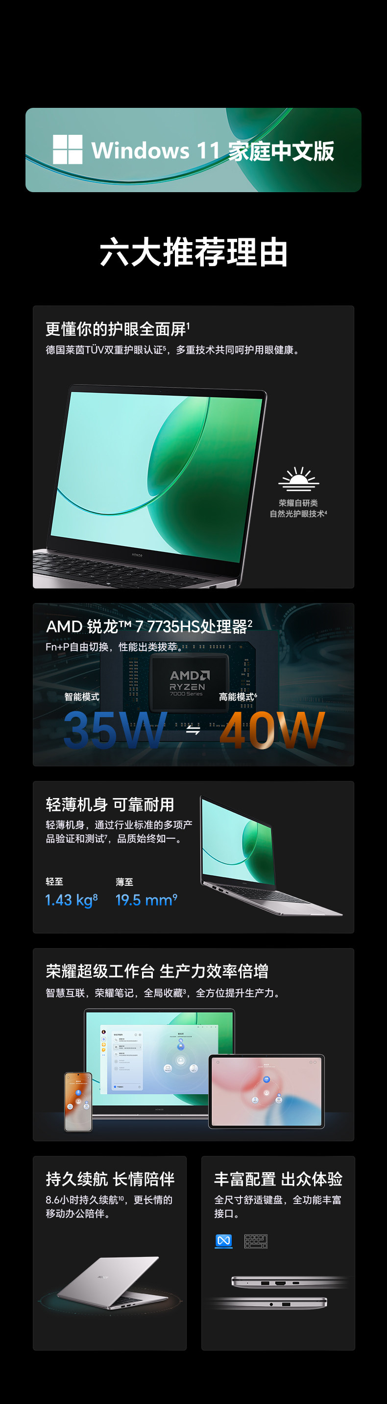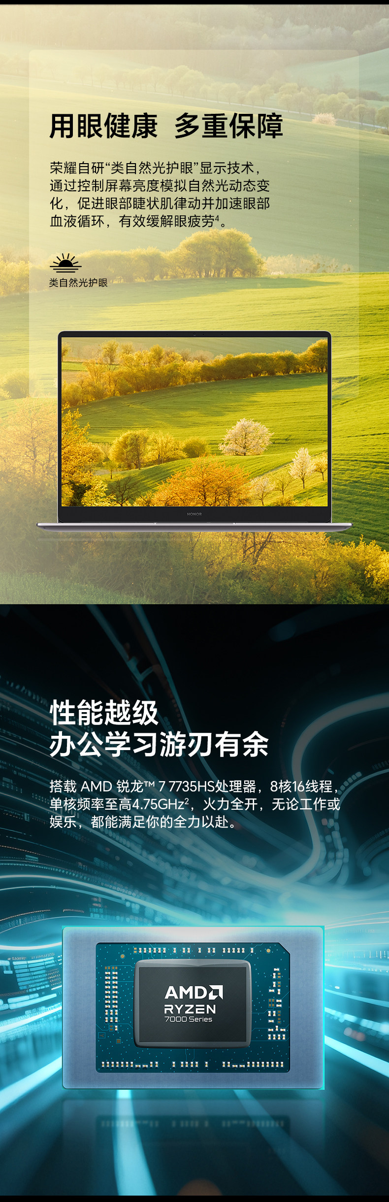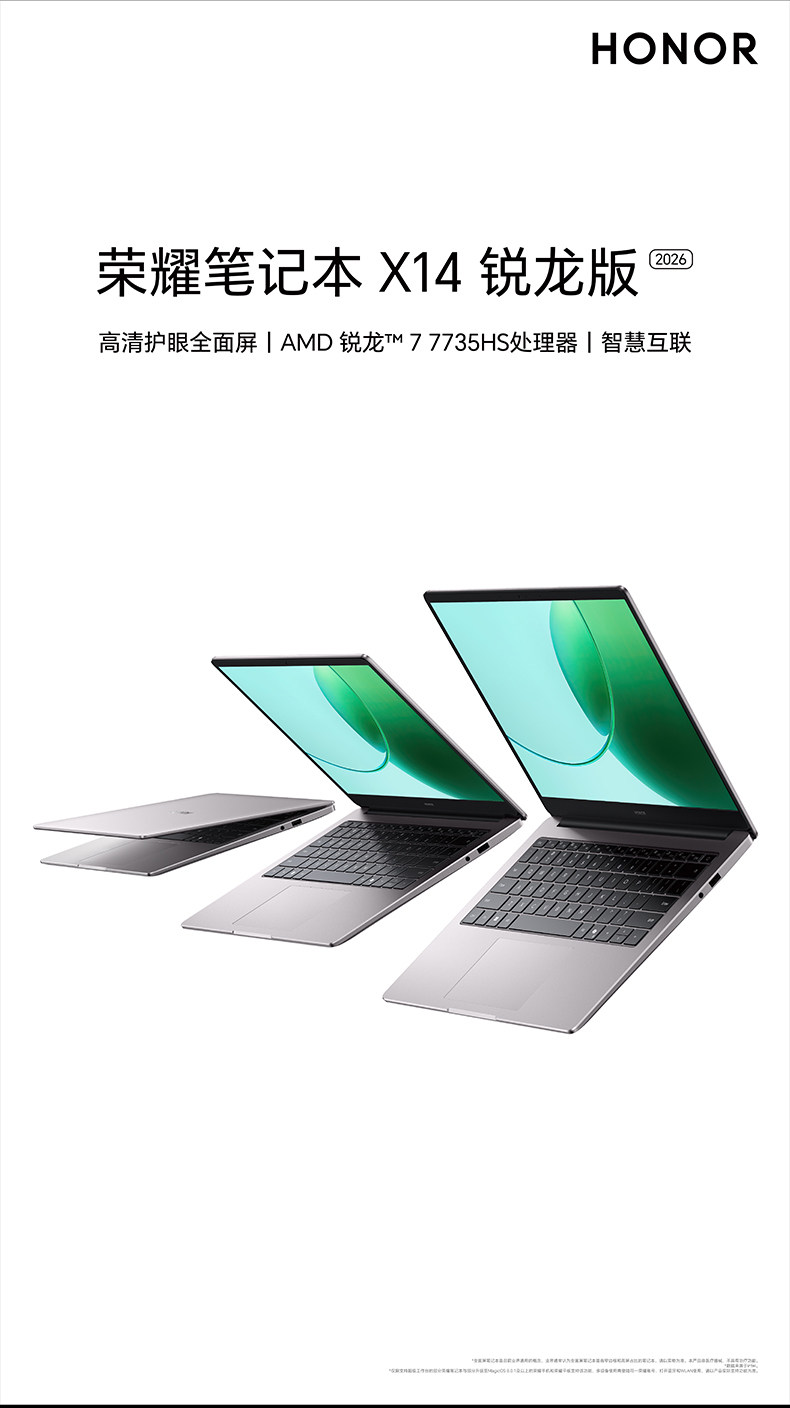 Honor Notebook X14 Ryzen Edition 2026 R7-7735Hs High-Performance Processor, High-Definition Eye-Protection Screen, Long Battery Life, Thin and Lightweight Laptop