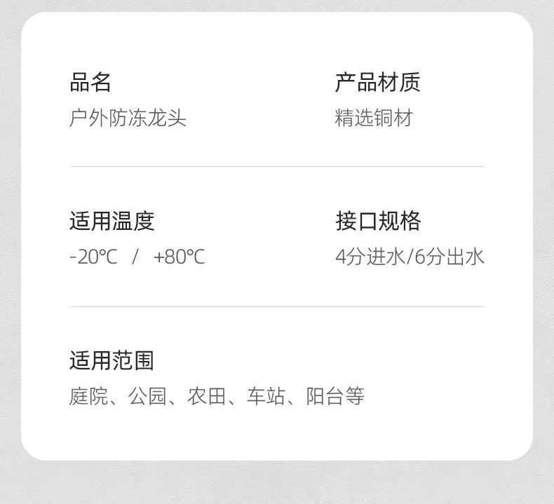 | Model | All Copper Outdoor Faucet |