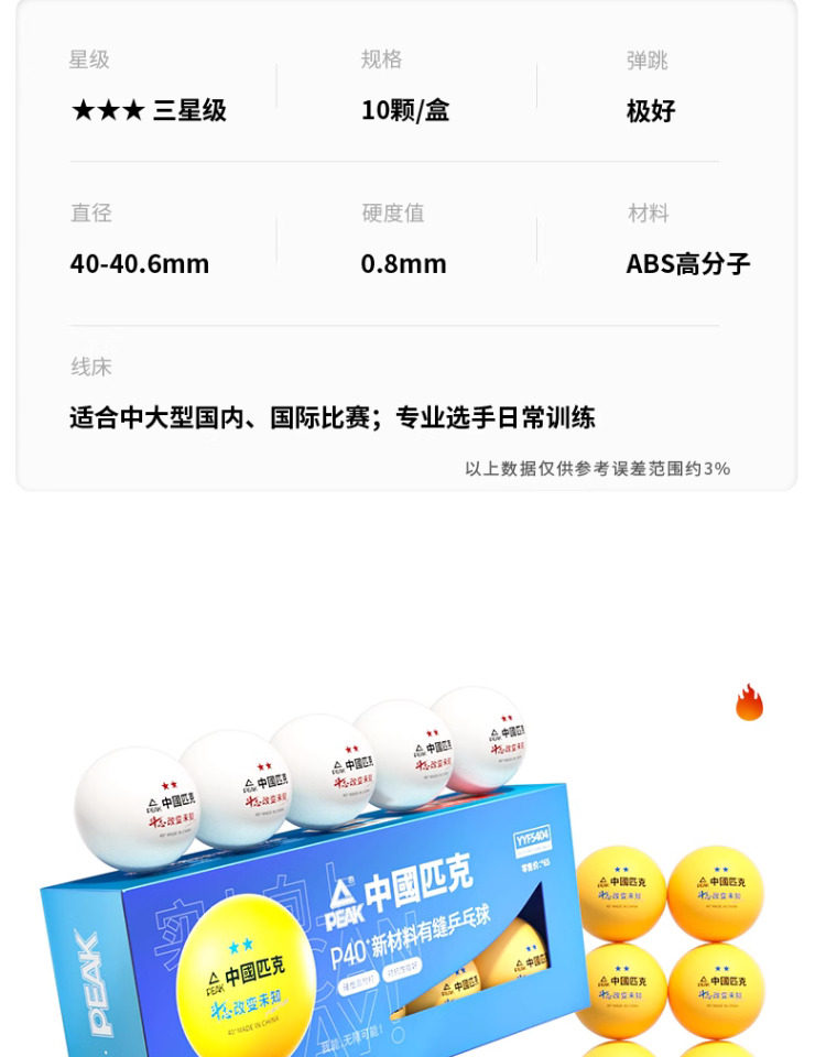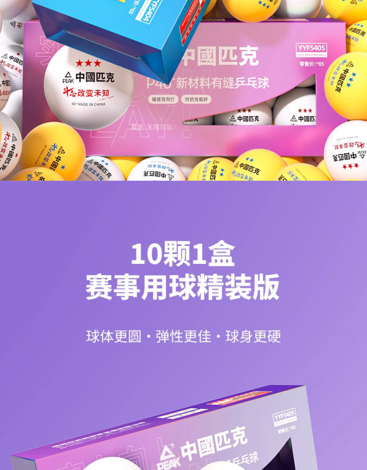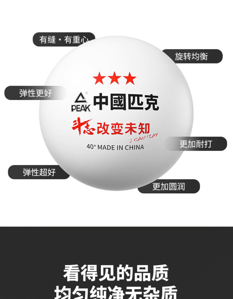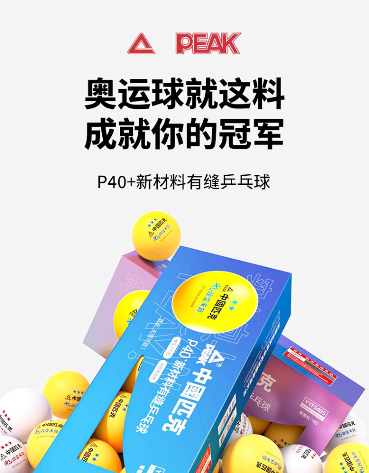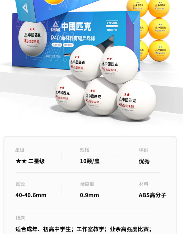 Peak Samsung Table Tennis One Star Two 3 Stars Competition Training Indoor New Material 40+ White Seamed Table Tennis