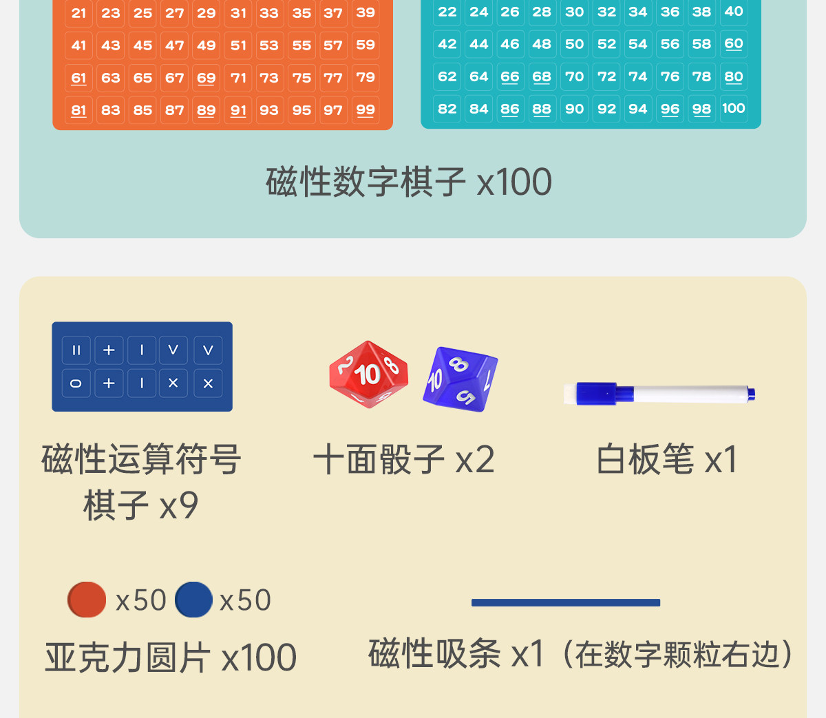 | Color Classification | Multifunctional Magnetic Hundred Board (8 Categories and 50 Ways to Play),Multifunctional Magnetic Hundred Board + Thinking Training Board 4-6 Years Old[Four Advanced Practice Cards],Multifunctional Magnetic Hundred Board + 188 Kinds of Chemical Science Experiments[Video Tutorial],Multifunctional Magnetic Hundred Board + Magnetic Tangram[148 Questions in Total],Multifunctional Magnetic Hundred Board + Beech Wood Three Kingdoms Huarong Road (400 Questions Manual),Multifunctional Magnetic Hundred Board + Magnetic Digital Huarong Road[Fourth Order 4×4],Multifunctional Magnetic Hundred Board + 100 Counting Sticks (Packed in Iron Box),Multifunctional Magnetic Hundred Board + Six-In-One Math Teaching Aids,Multifunctional Magnetic Hundred Board + Five-Speed Solid Wood Computing Stand,Multifunctional Magnetic Hundred Board + Large Tetris |