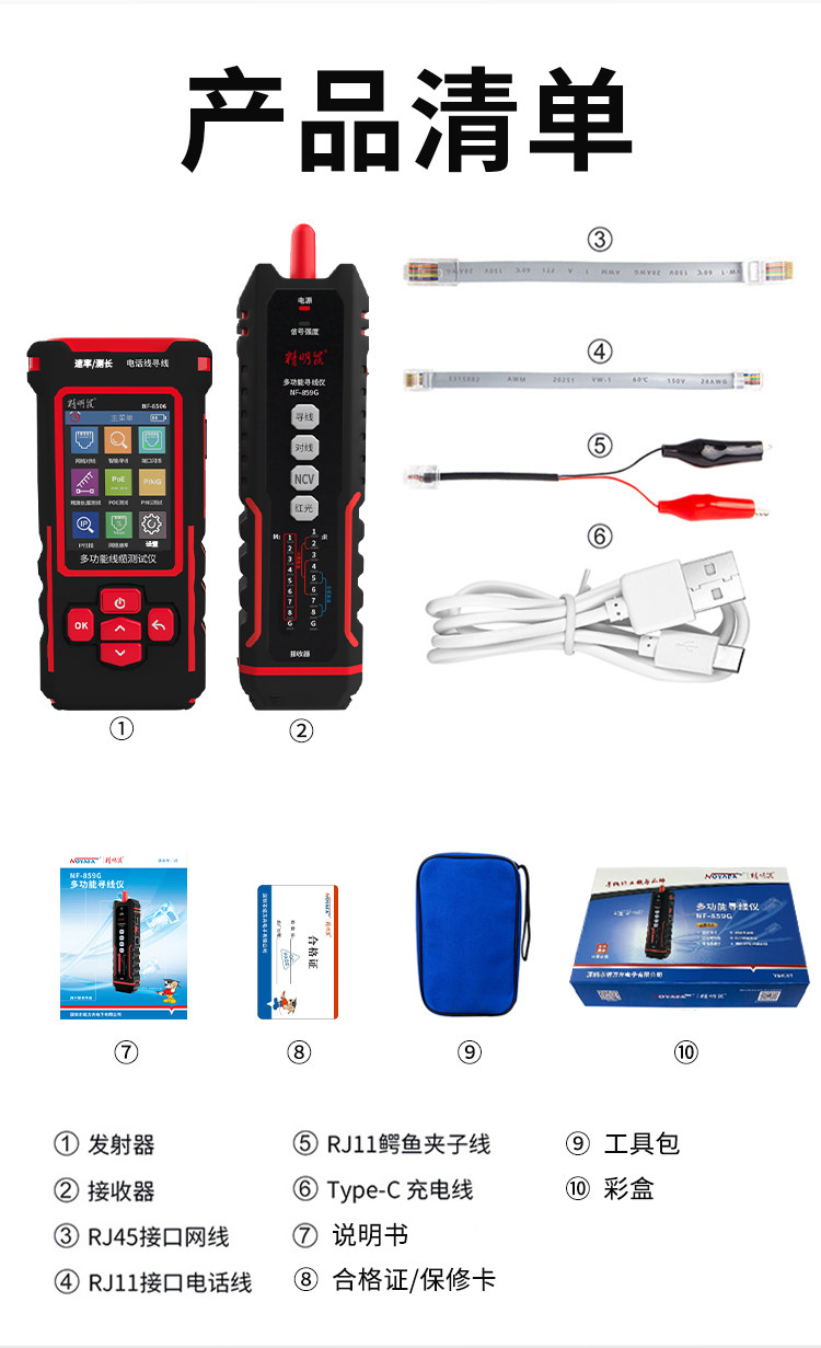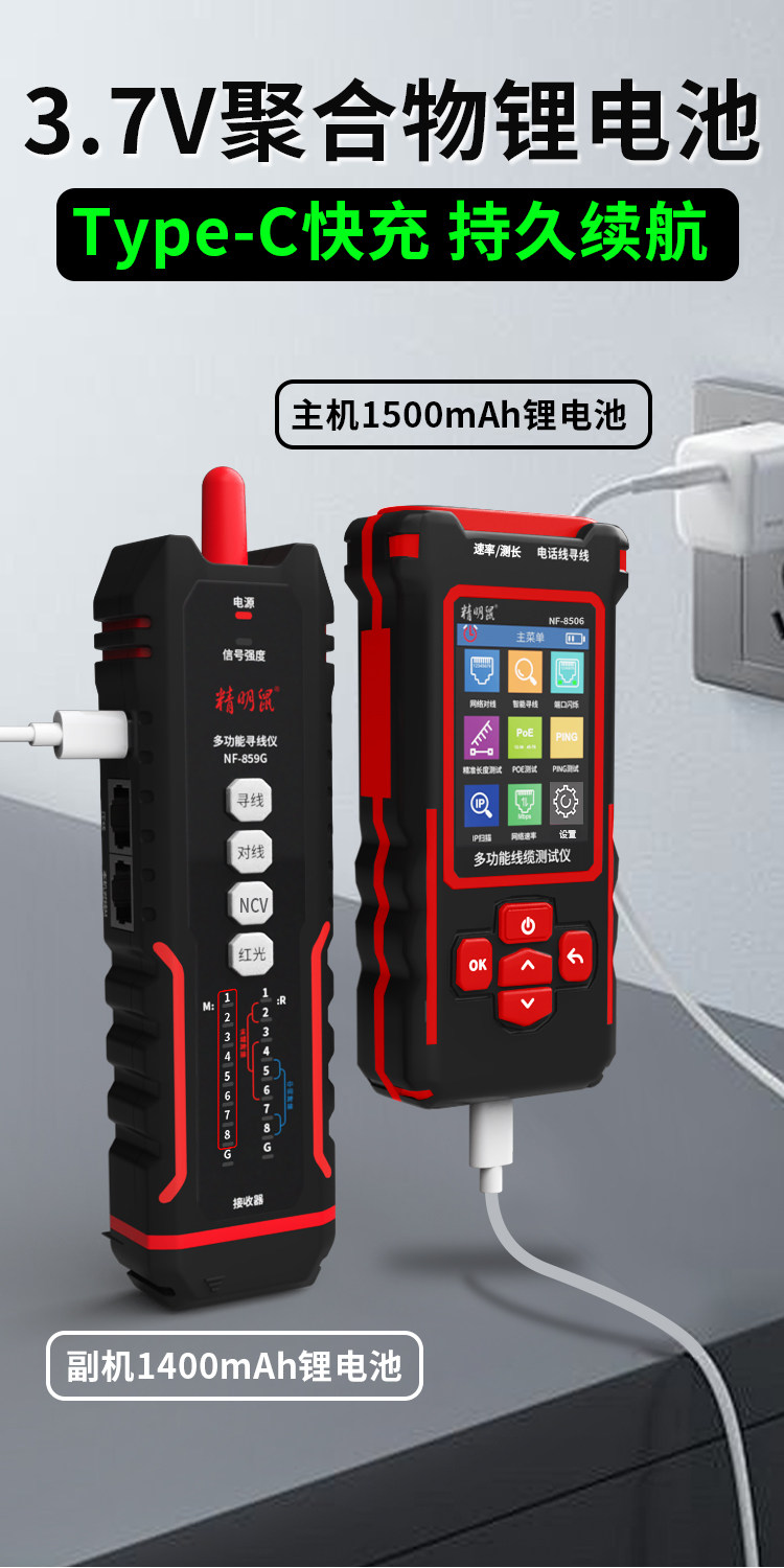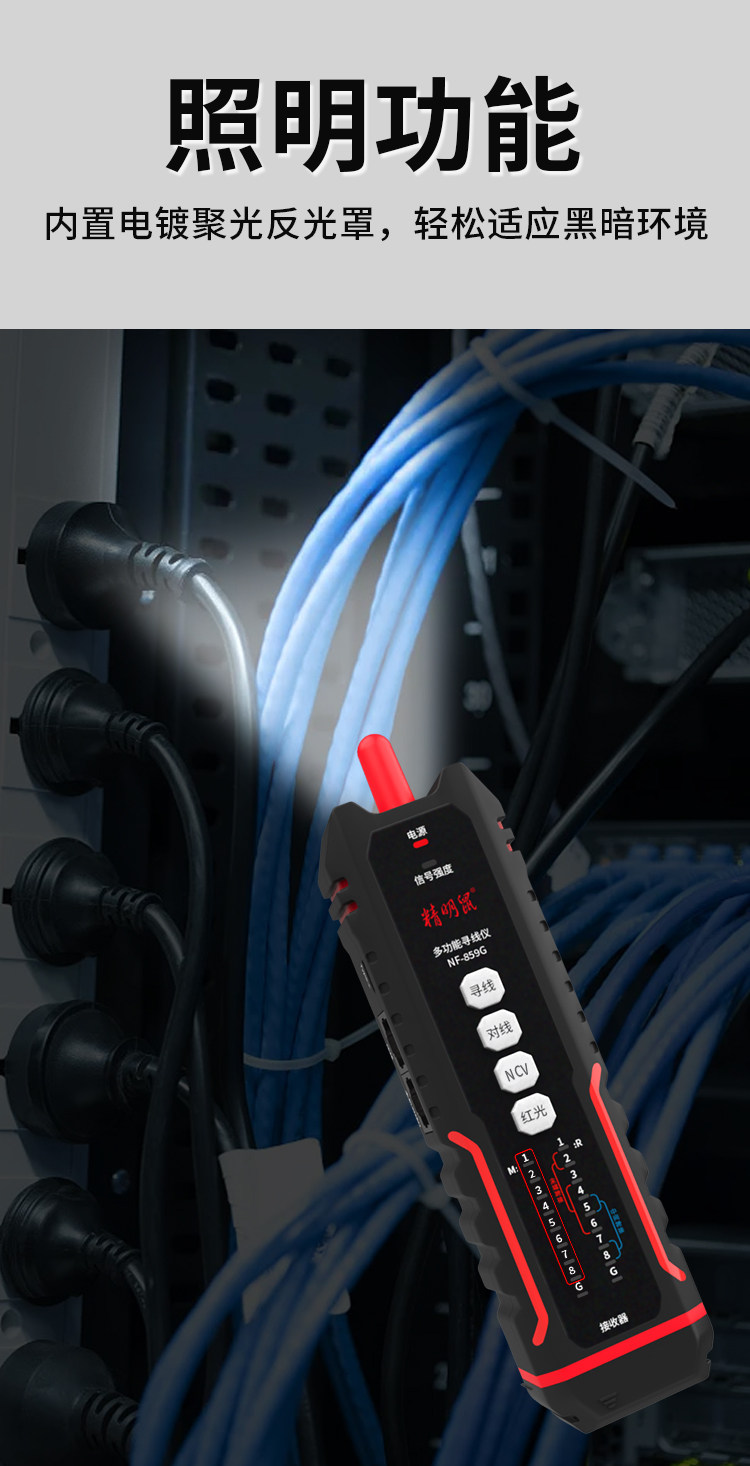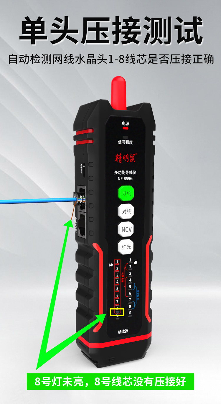 Smart Mouse Line Finder Network Tester Red Light Single Head Crimping Ip Scanning Ping Test Line Tracer Nf-859Gk
