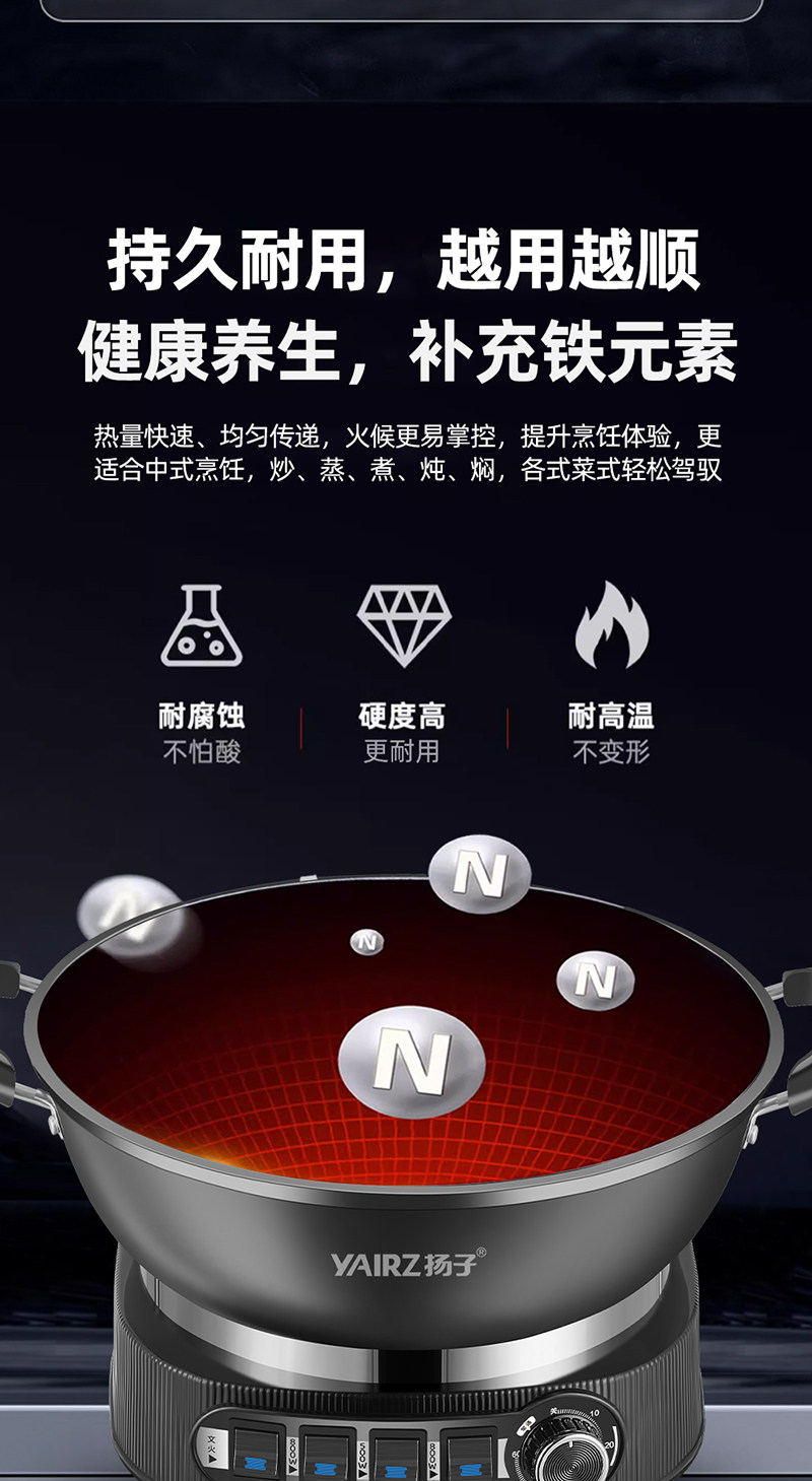 Yangzi Cast Iron Uncoated Electric Wok Non-Stick Multi-Functional Electric Cooking Pot for Stir-Frying, Steaming, and Stewing, Household Multi-Functional All-In-One Pot