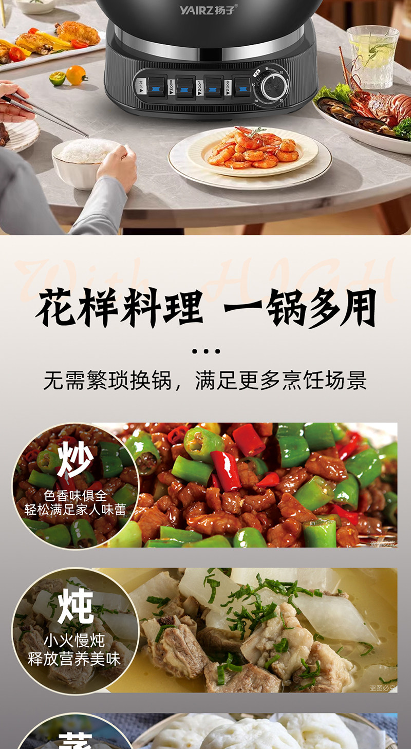 | Electric Heating/Hot Pot Function | Fry,Fried,Cook,Fried,Soup,Steam,Pancake,Stew,Other/Other,Cook Noodles,Hot Pot,Simmer |
