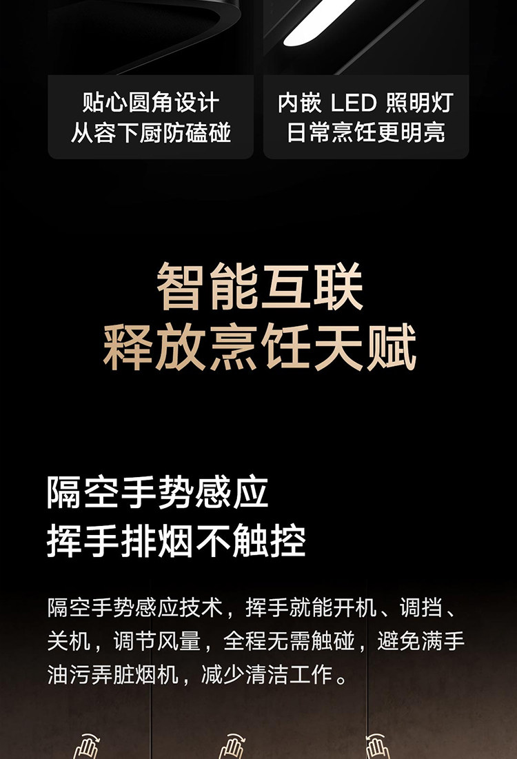 Mijia Smart European Style Range Hood S2 Smoke and Stove Set Cross-Border Gesture Control Home Use Strong Suction Ceiling-Mounted Self-Cleaning