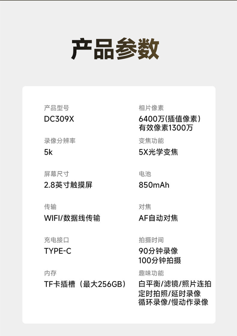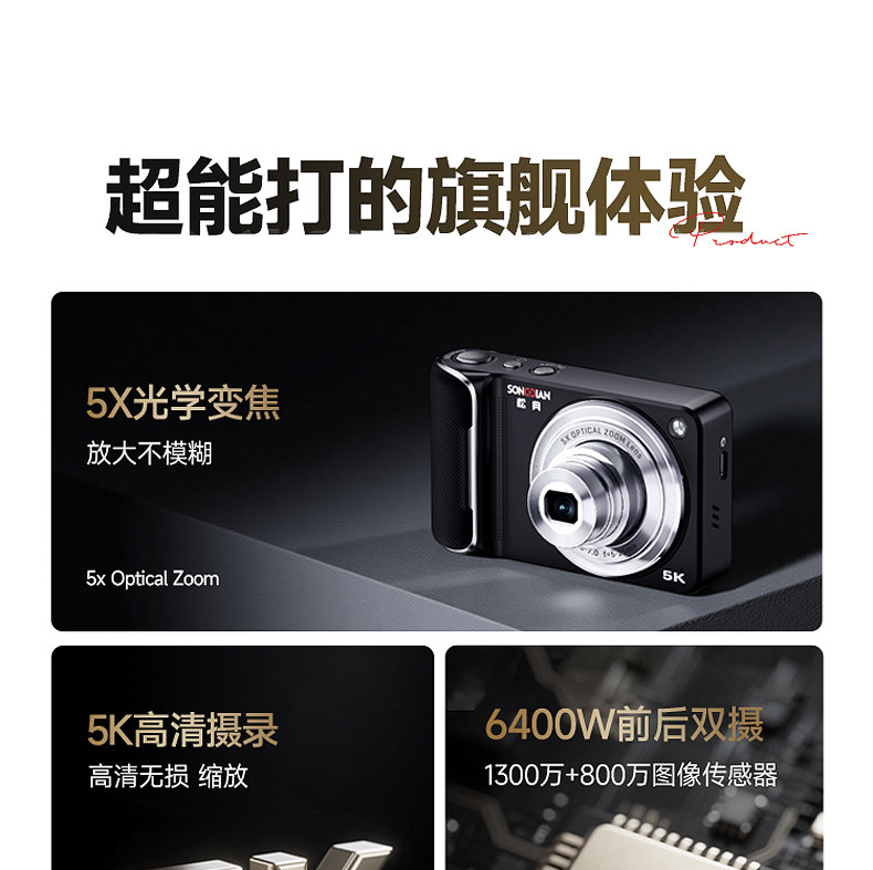 Songdian Dc305X Retractable Lens Digital Camera 5K High-Definition Front and Rear Dual-Camera Travel Entry-Level Small Mirrorless Camera