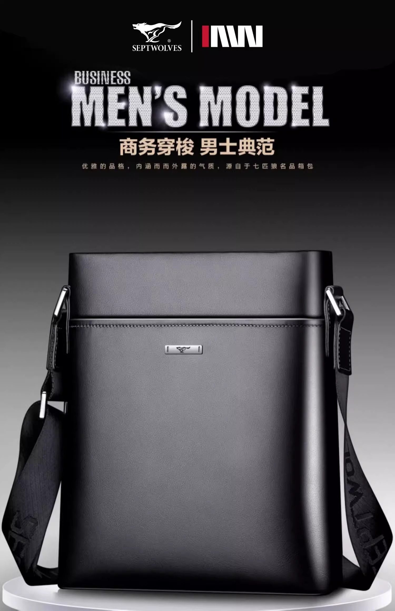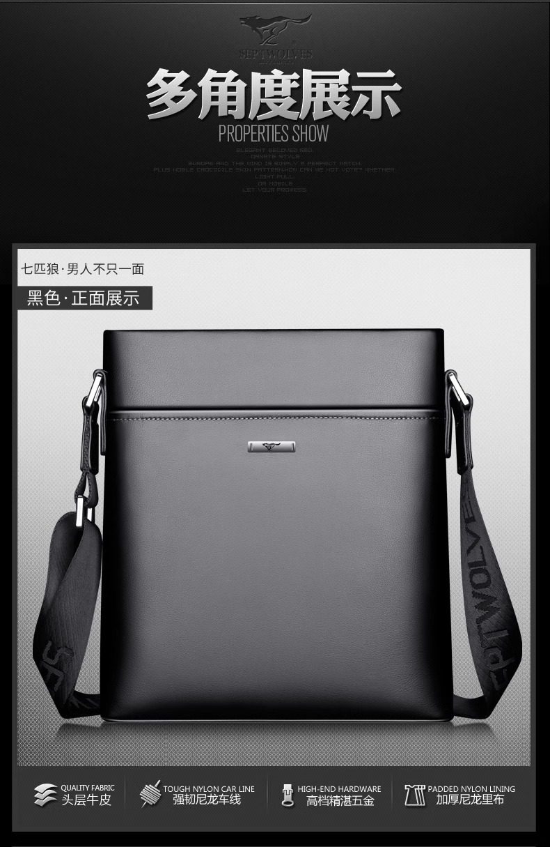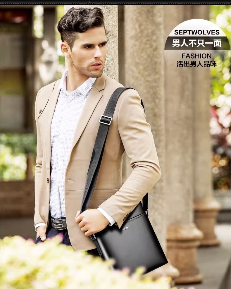 Septwolves Men's Briefcase 2025 New Trendy Business Shoulder Bag High-End First Layer Cowhide Men's Bag