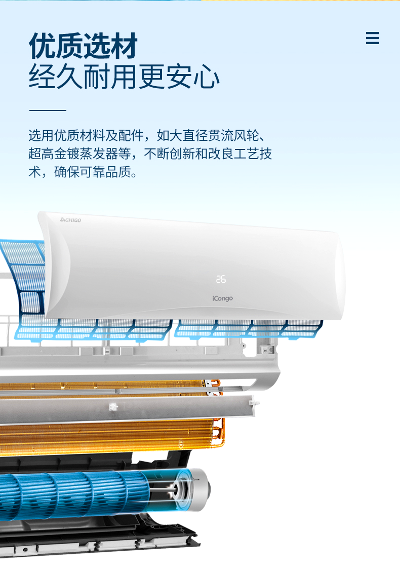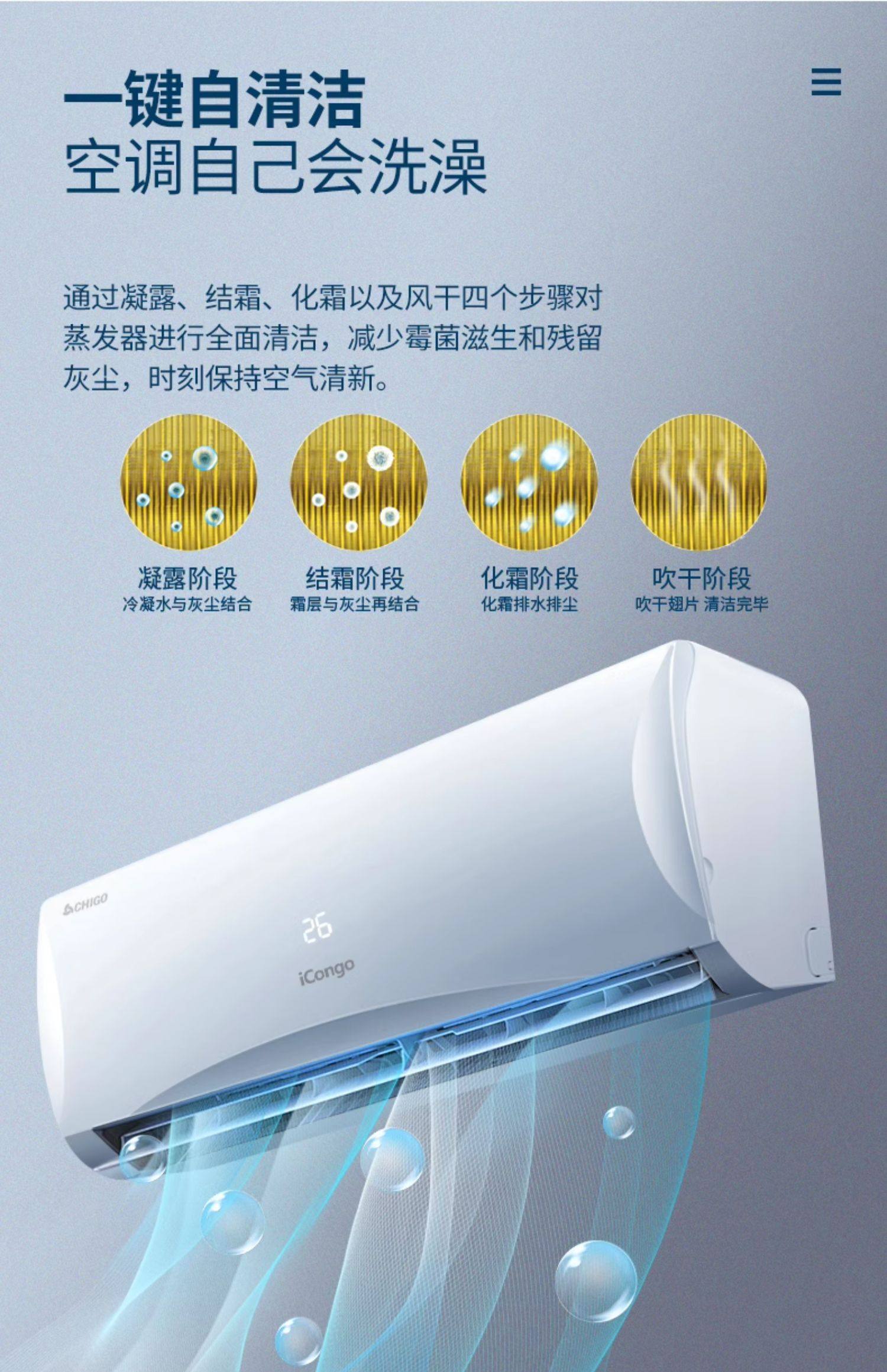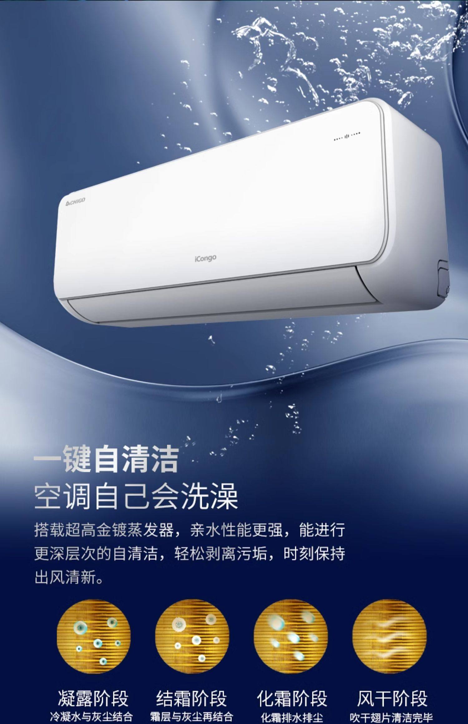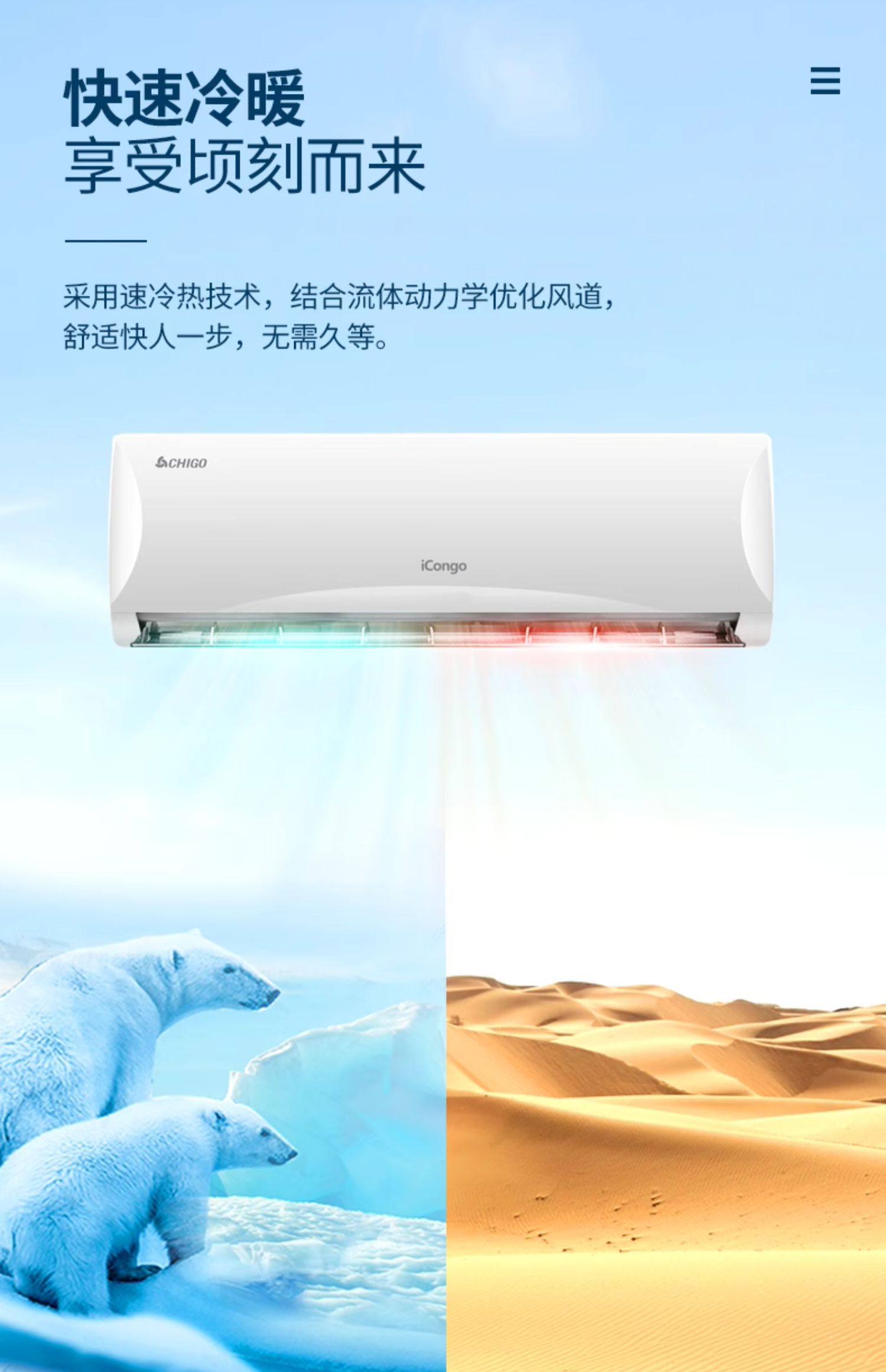 Chigo Air Conditioner for Home Use, Wall-Mounted, Large 1.5 Hp, 2 Hp, Inverter, Cooling and Heating, First-Class Energy Efficiency, Wall-Mounted, Official Flagship Store, Genuine Product