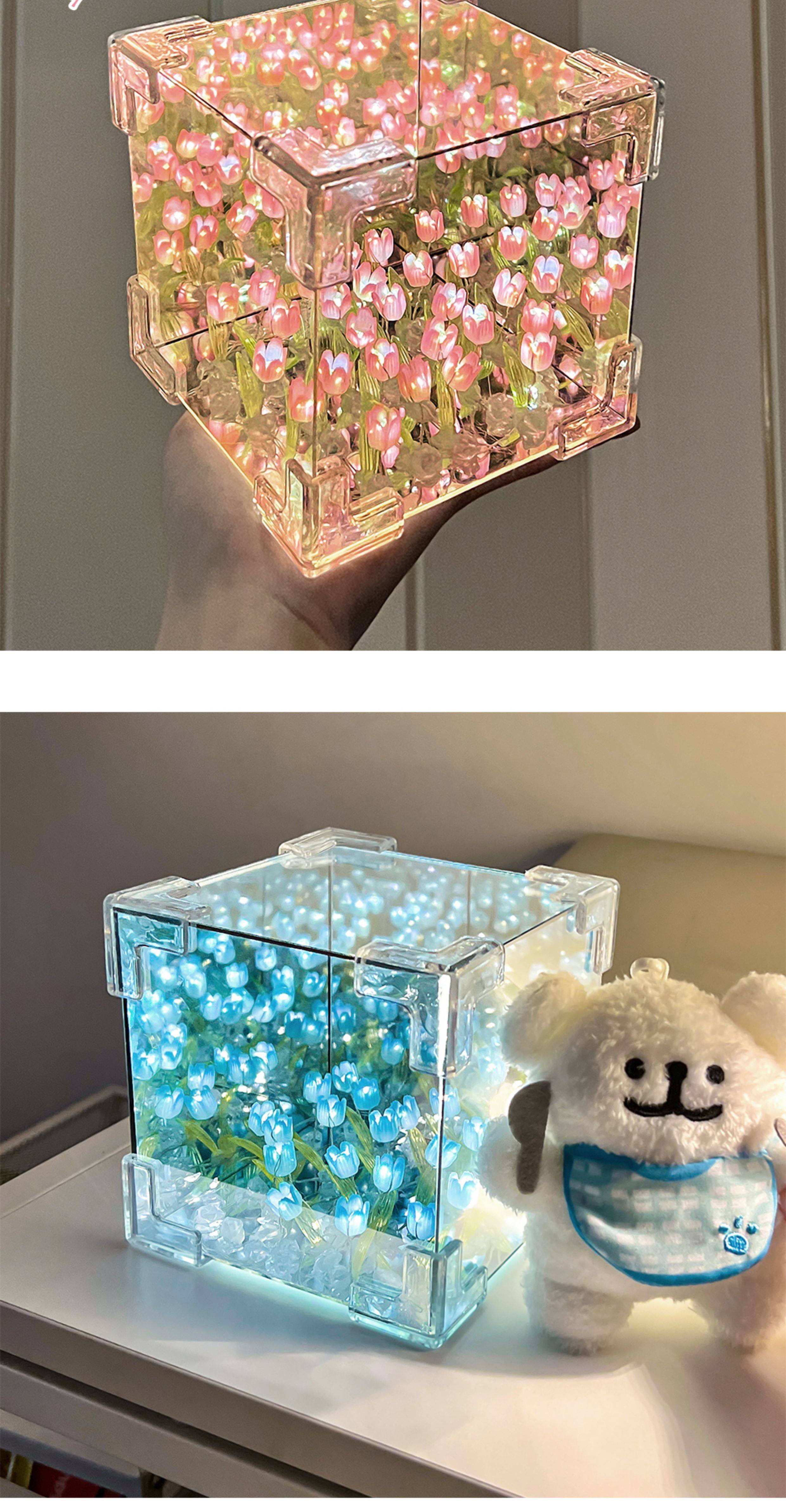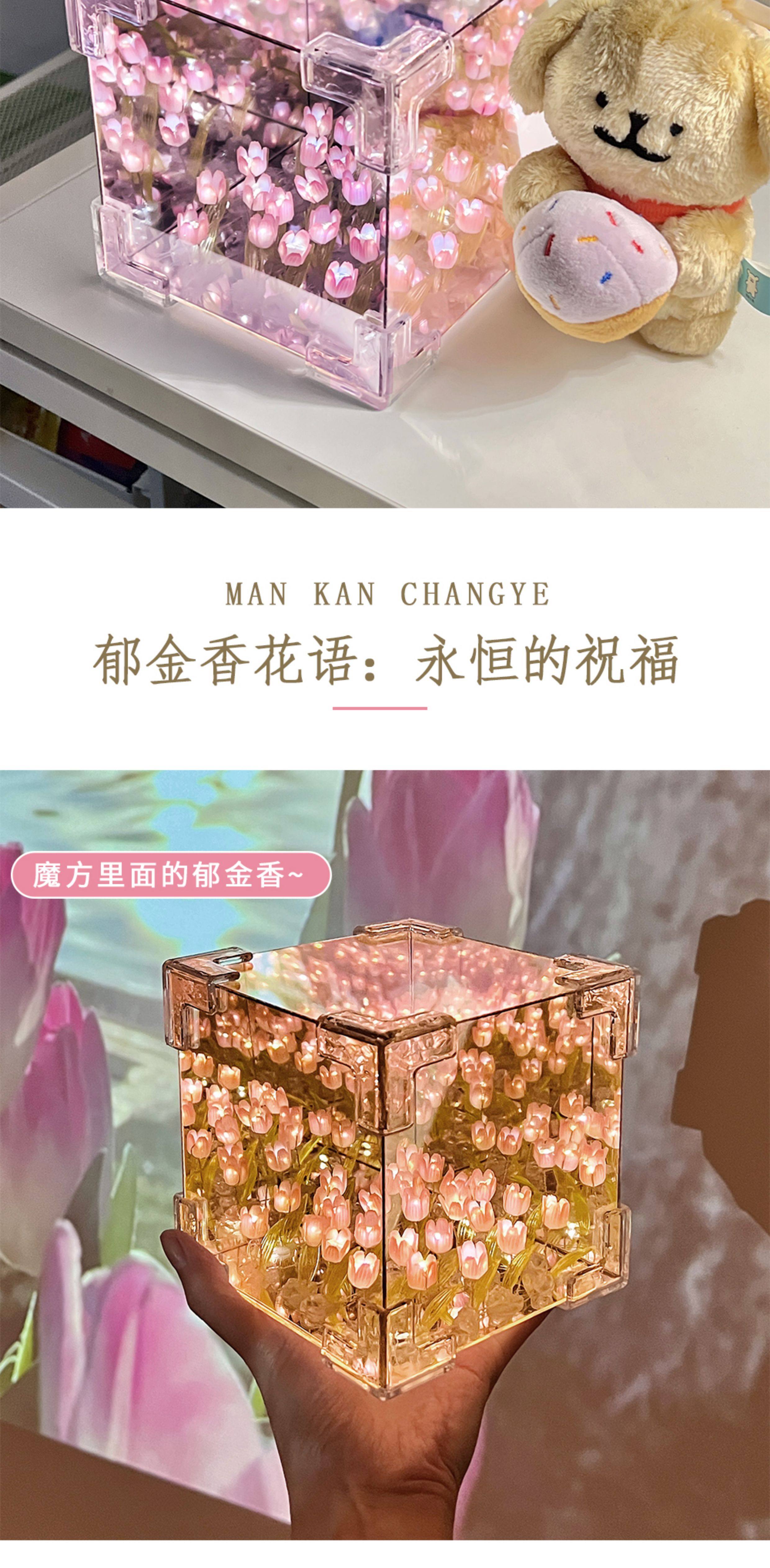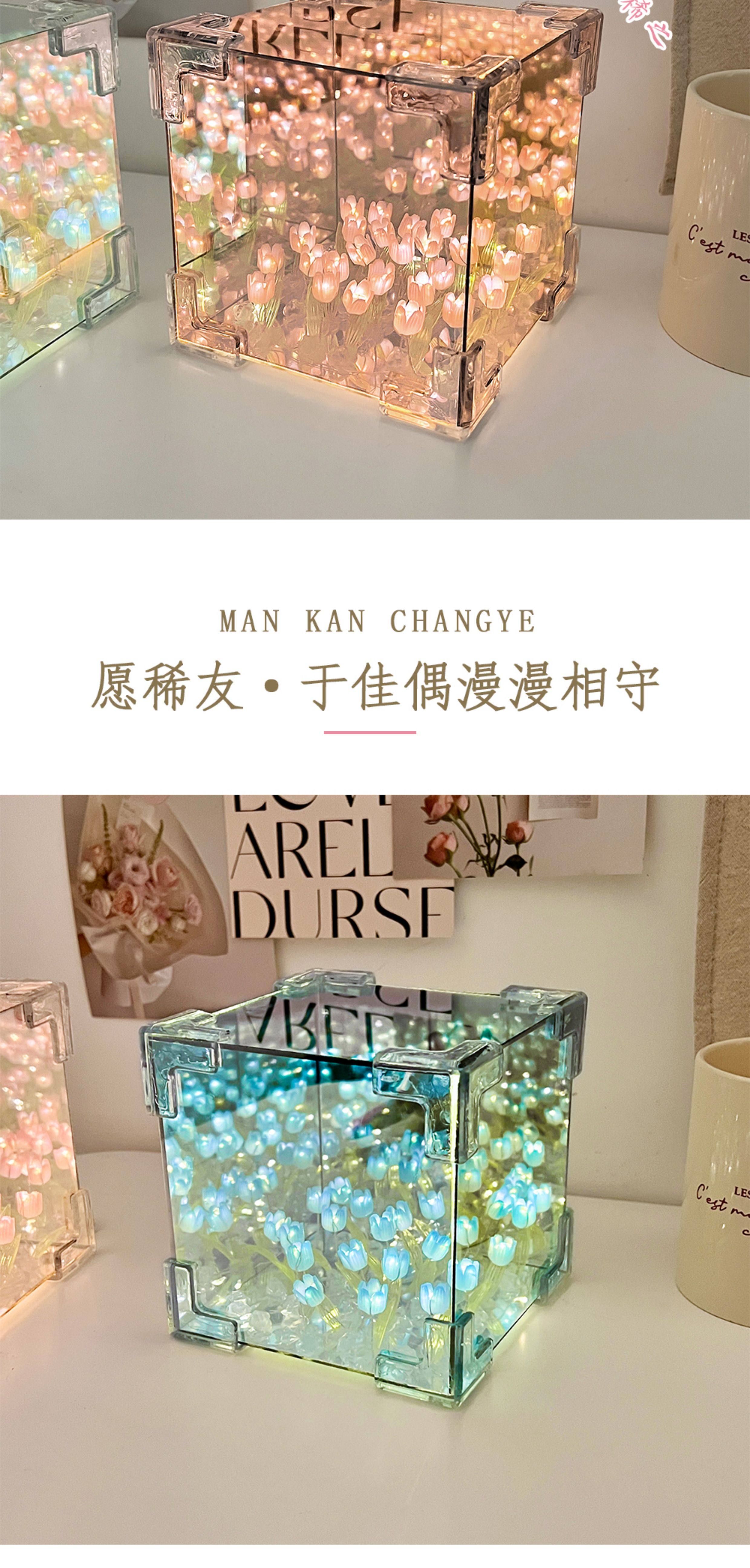 Valentine's Day Girl's Birthday Gift Rubik's Cube Tulip Night Light Flower Sea Mirror Handmade DIY Material Kit Bouquet