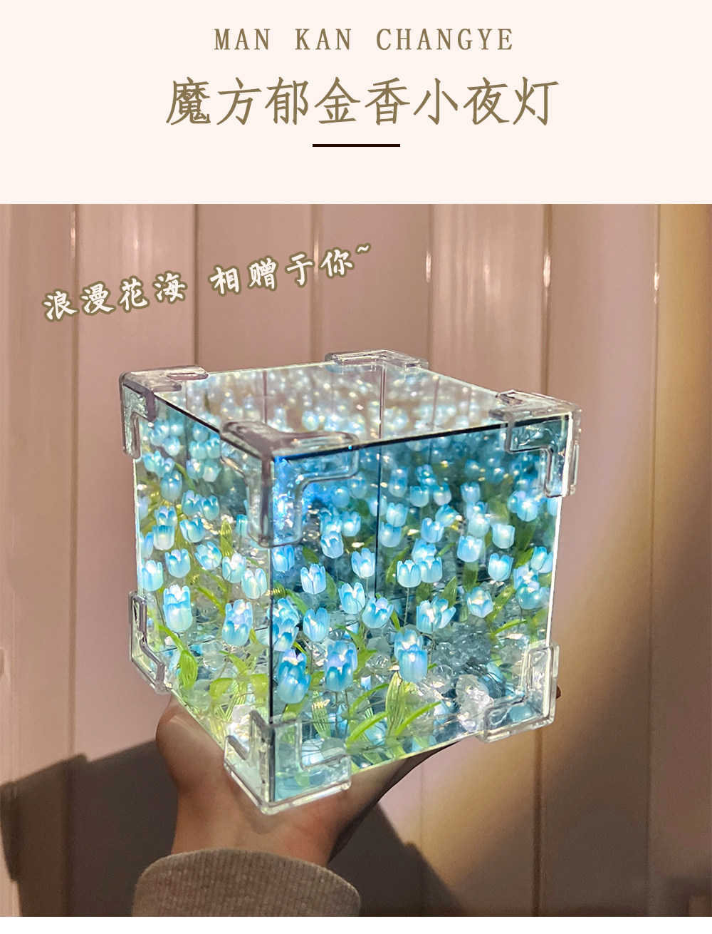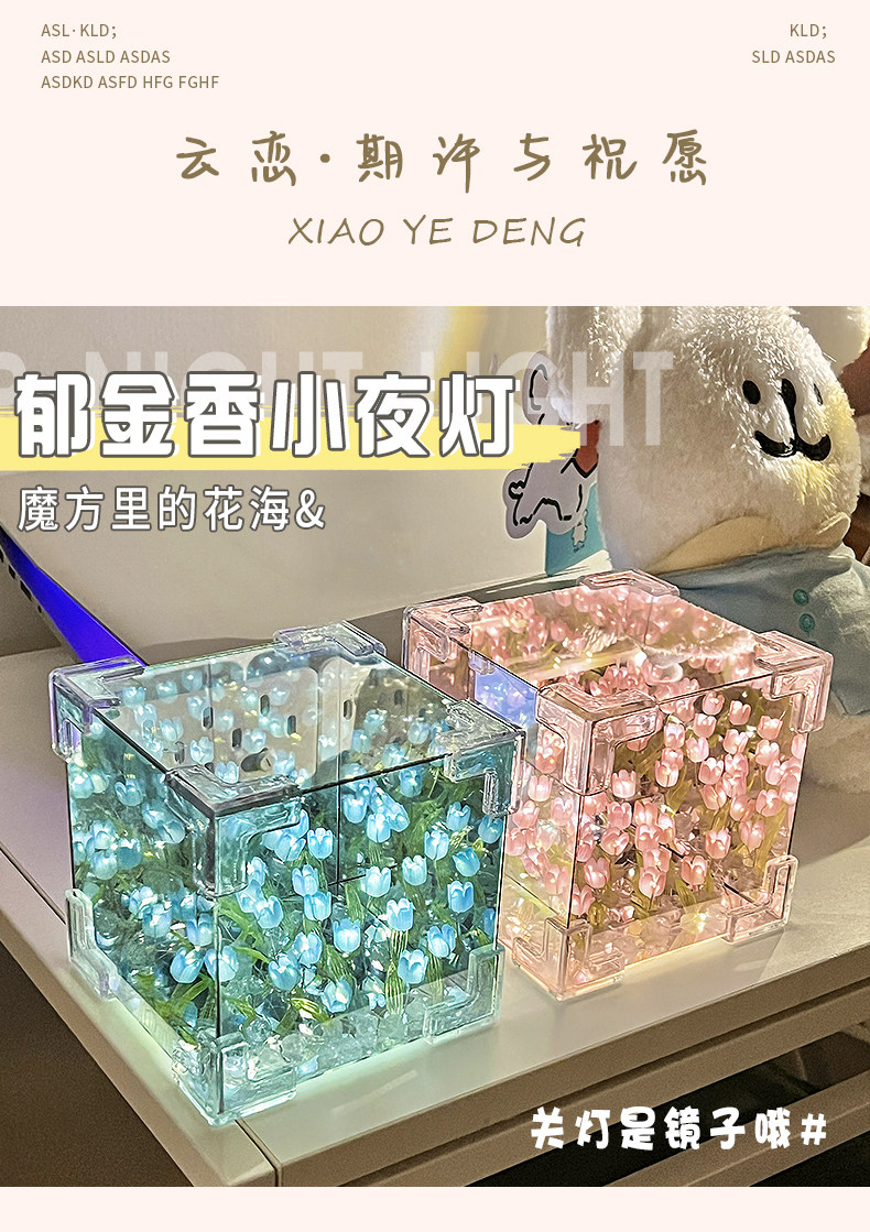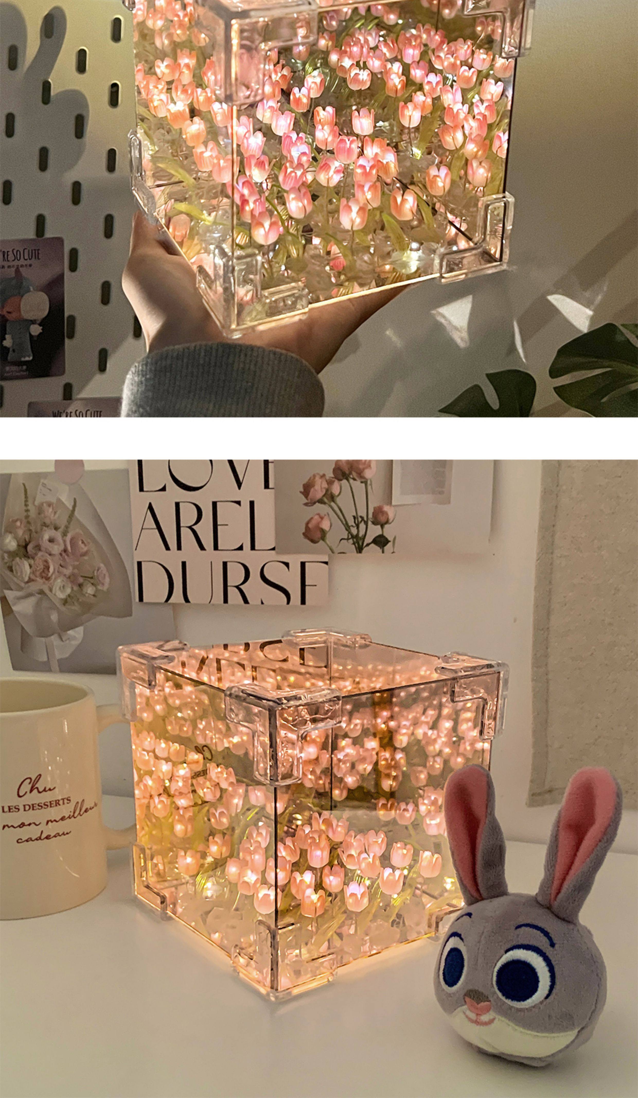 Valentine's Day Girl's Birthday Gift Rubik's Cube Tulip Night Light Flower Sea Mirror Handmade DIY Material Kit Bouquet