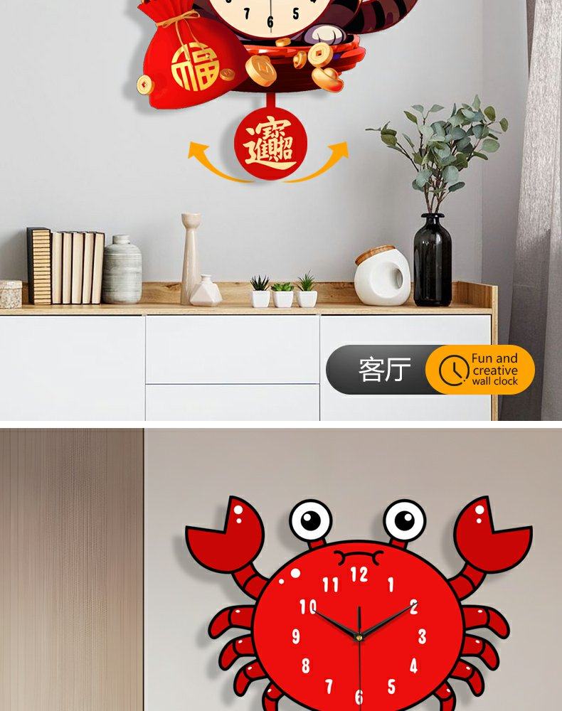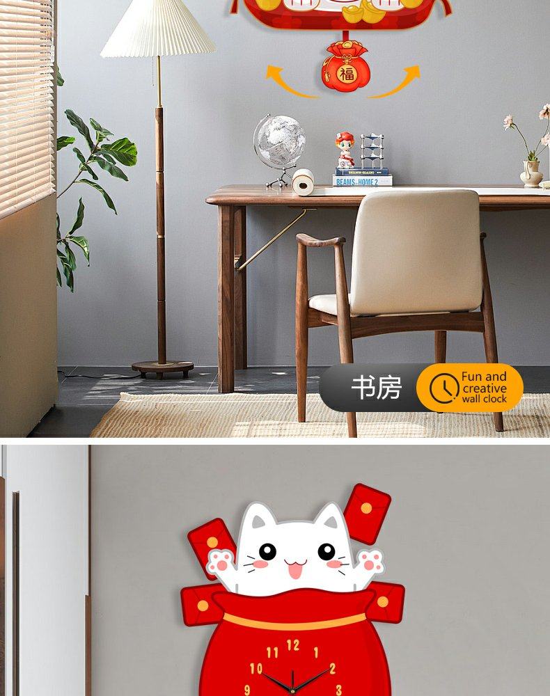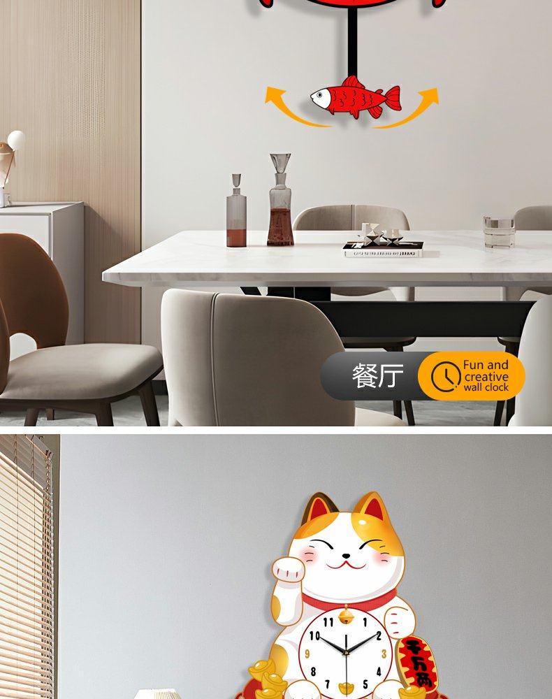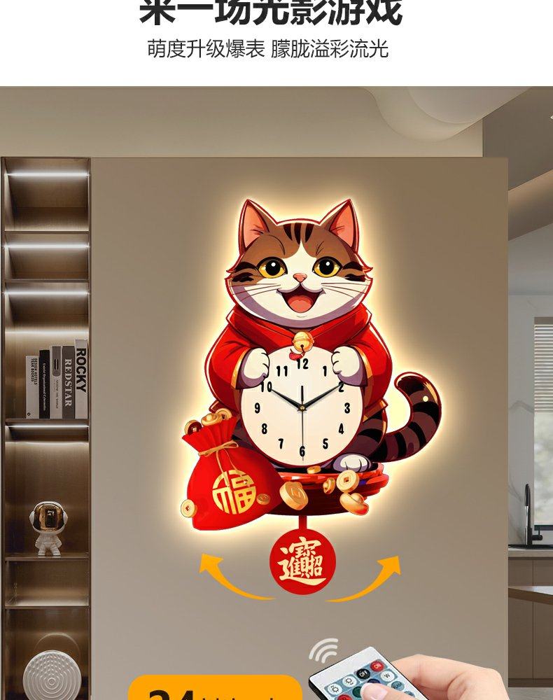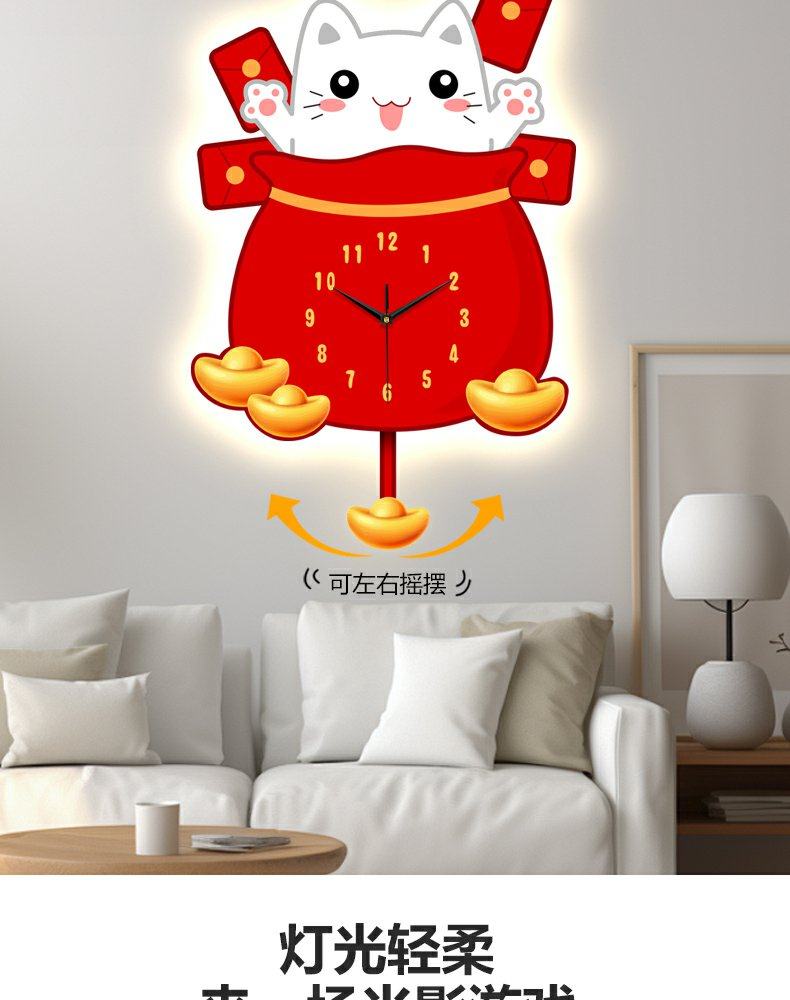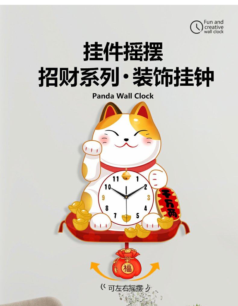Lucky Cat Clock Wall Clock Living Room Home Clock Creative Clock Wall Decoration Silent Wall Clock Cartoon Quartz Clock