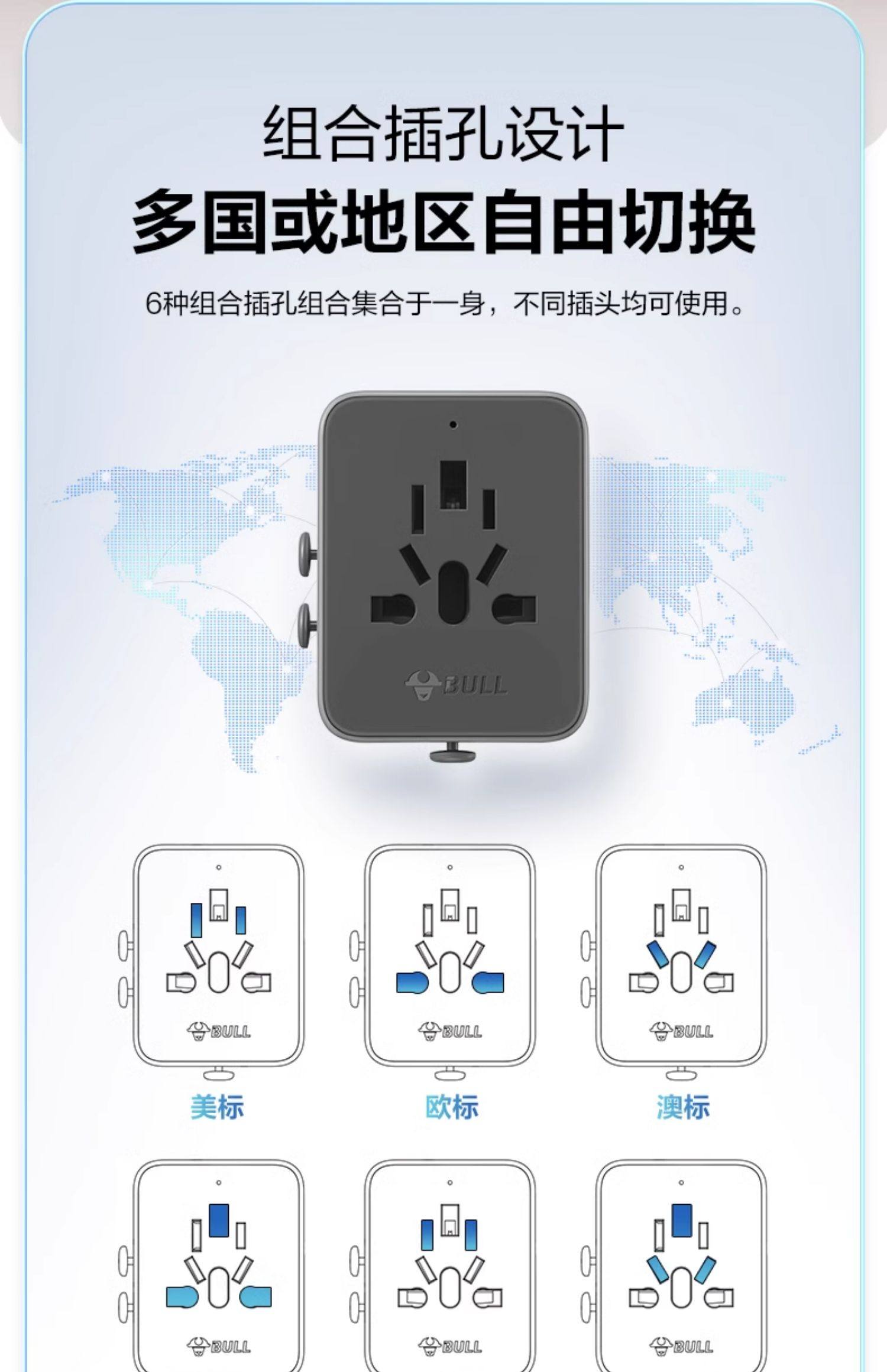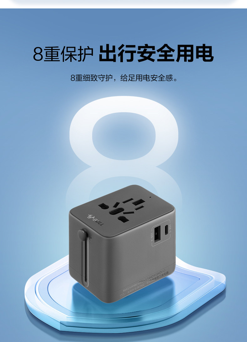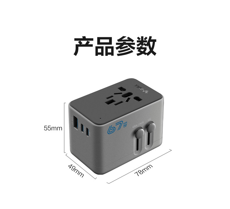 Bull Brand Universal Travel Adapter for International Use in Many Countries, Including Hong Kong, Uk Standard, Japan, Thailand, South Korea, and Europe